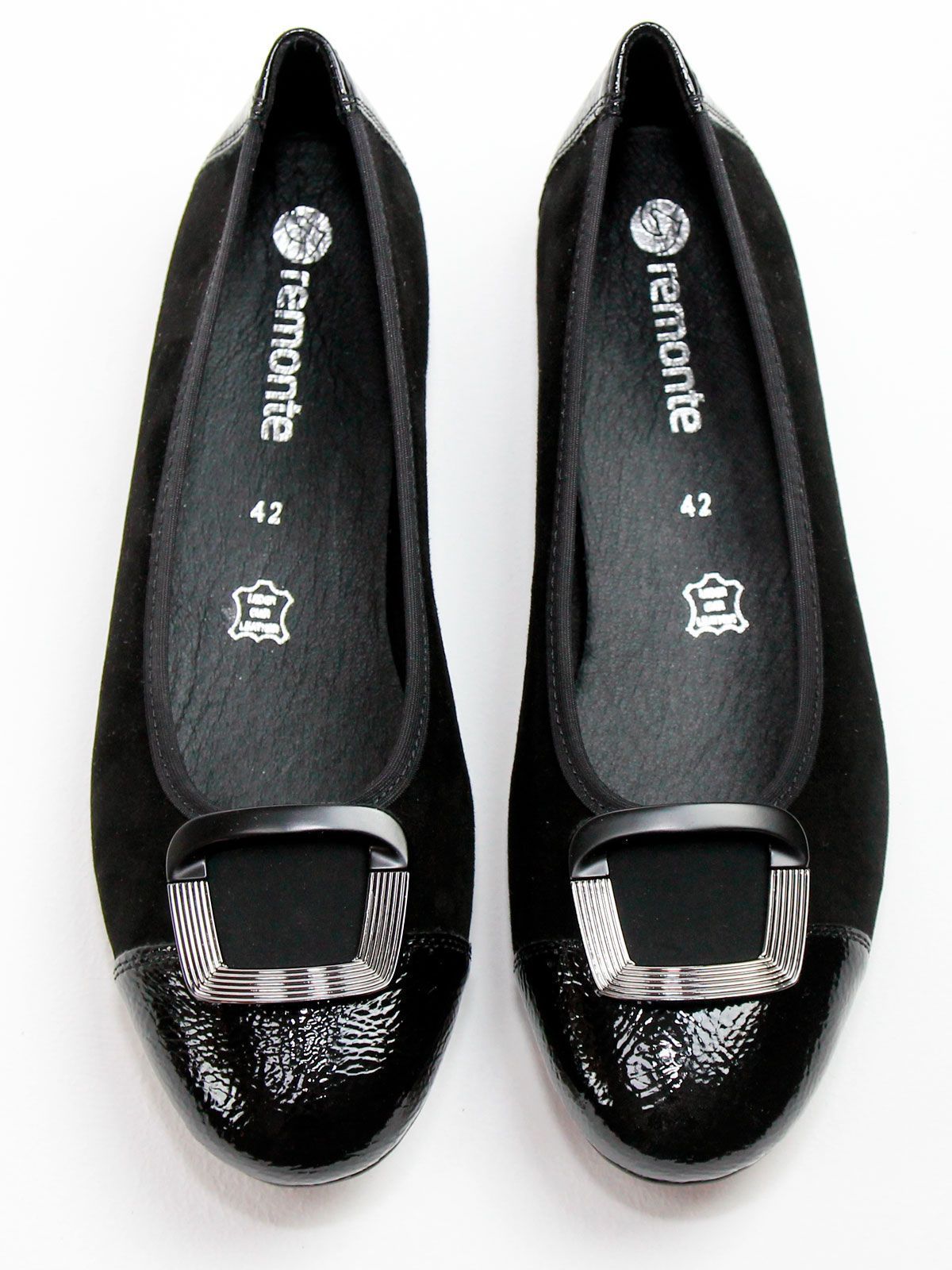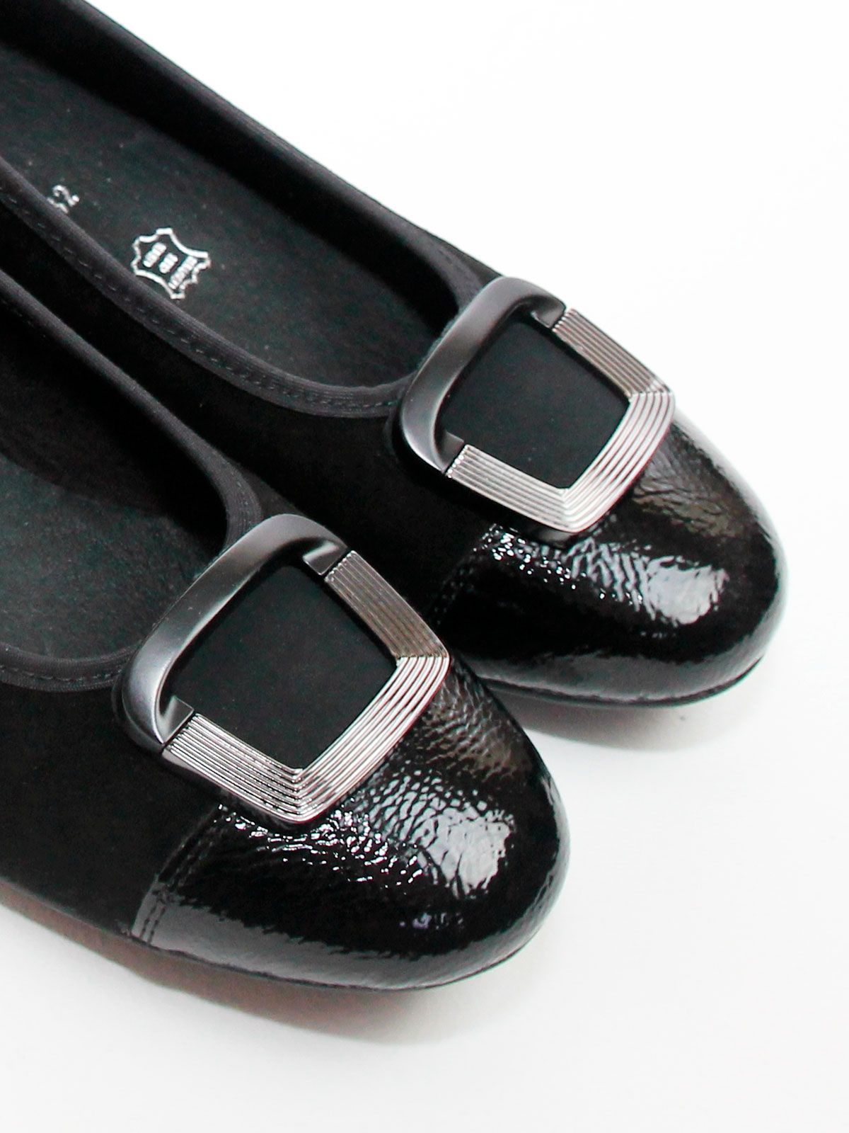 Откройте для себя идеальное сочетание стиля и комфорта с балетками большого размера 42-45. Эти изысканные туфли выполнены в элегантном черном цвете с отделкой из мягкой лаковой кожи на мысу и пятке, что придаёт им особый шарм. Благодаря невероятной мягкости и удобству, они идеально подходят для повседневной носки и особых случаев. CПочувствуйте лёгкость и уверенность в каждом шаге с нашими балетками