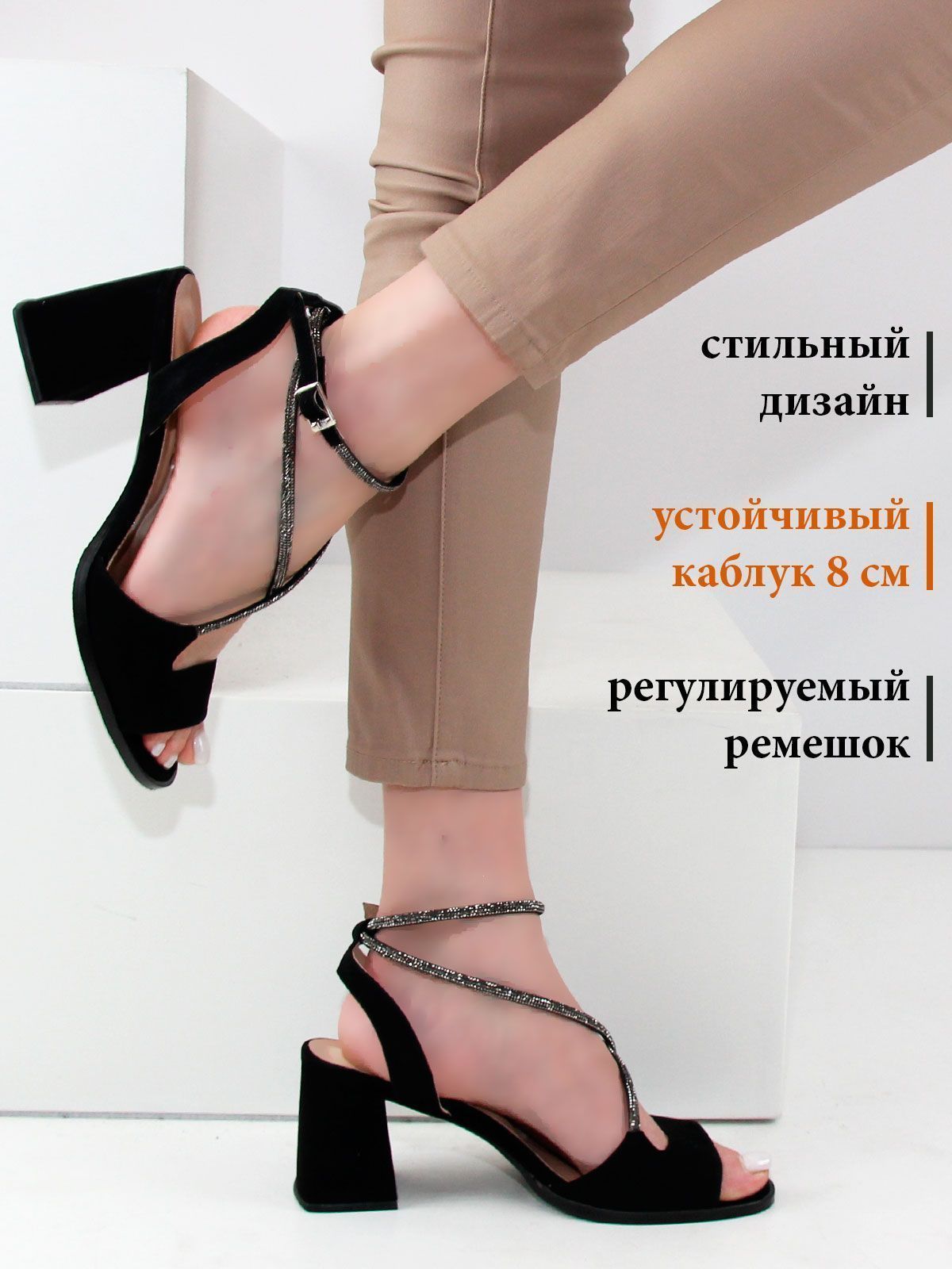 Стильные женские летние босоножки на широком устойчивом каблуке. Очень мягкая натуральная замша. Босоножки большого размера подойдут на стандартную стопу.