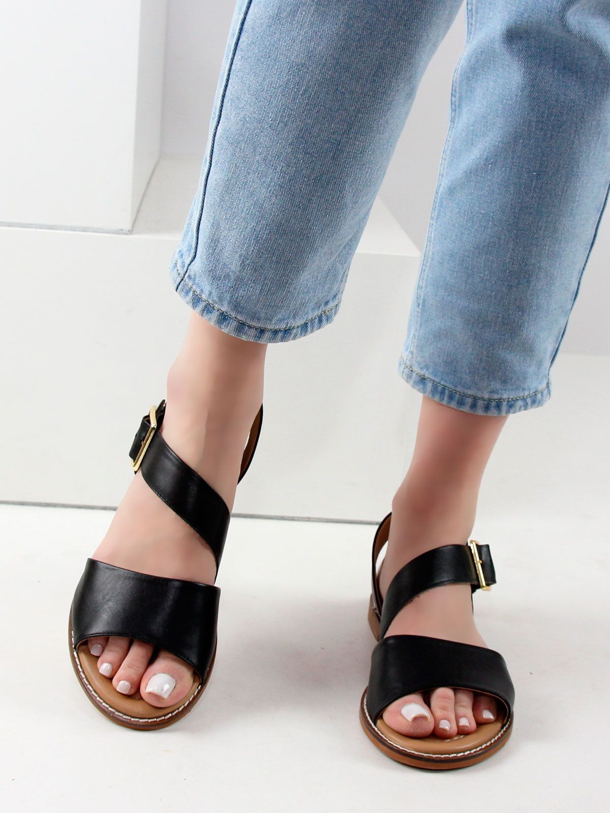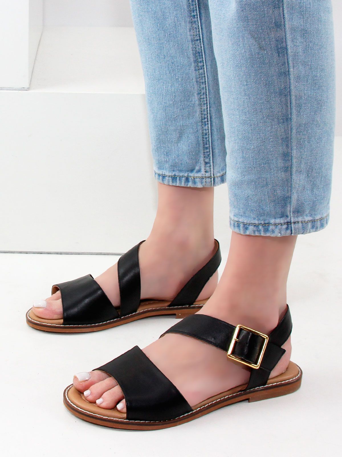 Летние босоножки на сплошной подошве на маленьком каблуке из натуральной кожи большого размера.