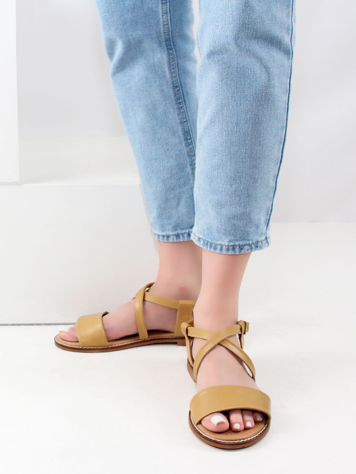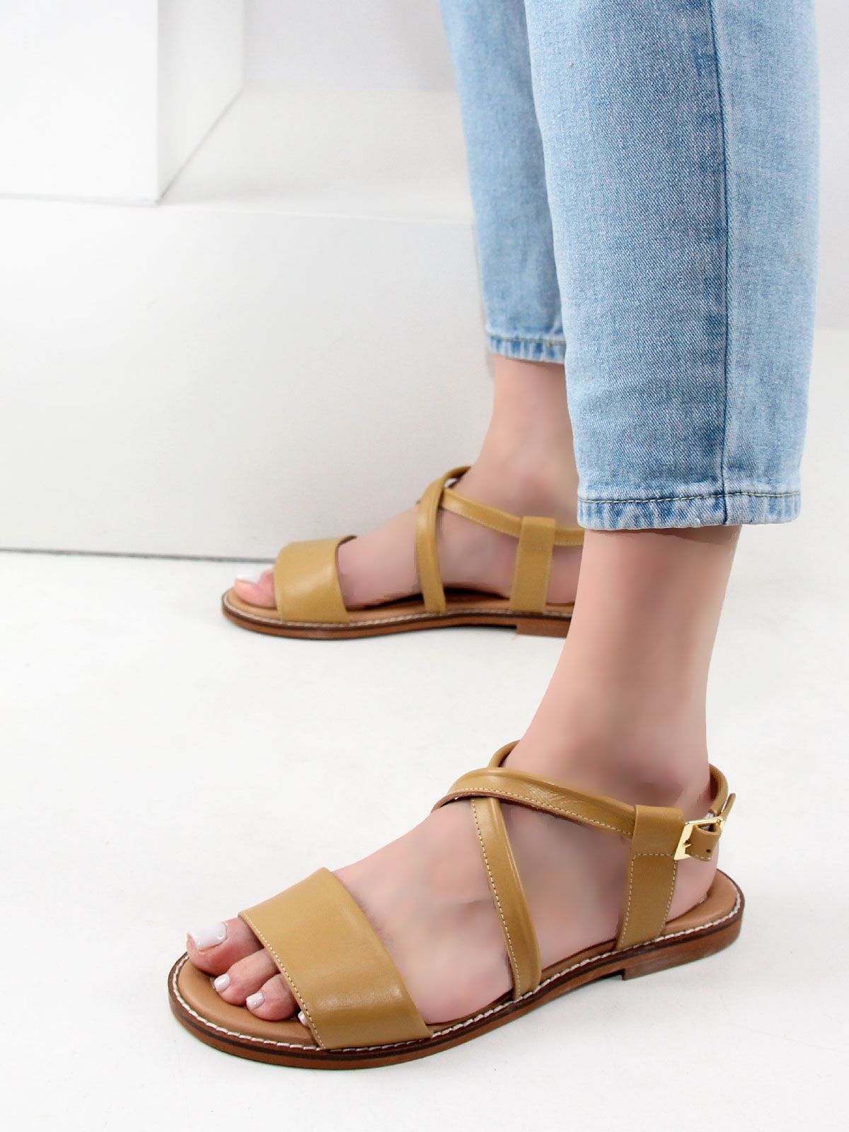 Летние босоножки на сплошной подошве на маленьком каблуке из натуральной кожи большого размера.