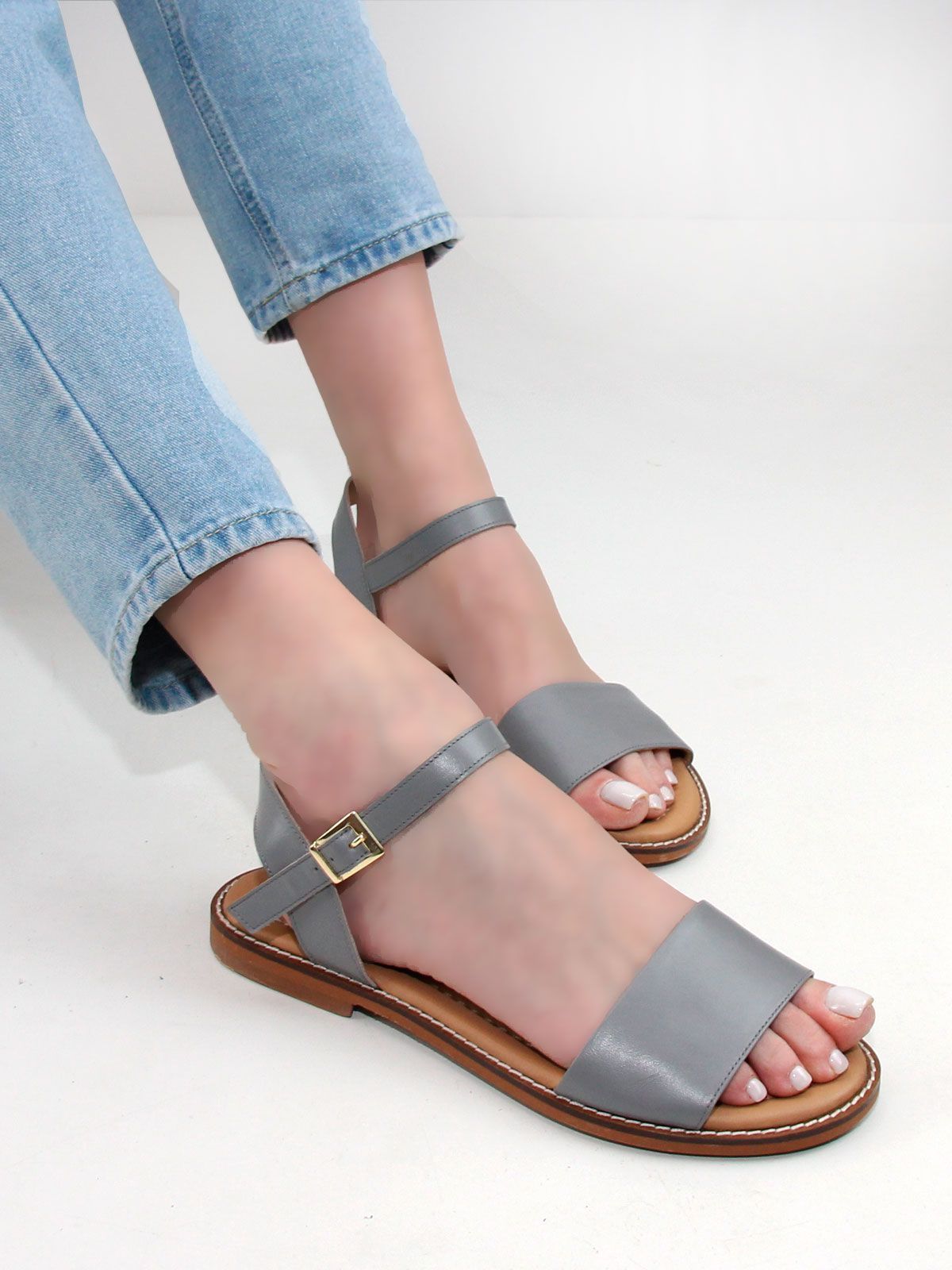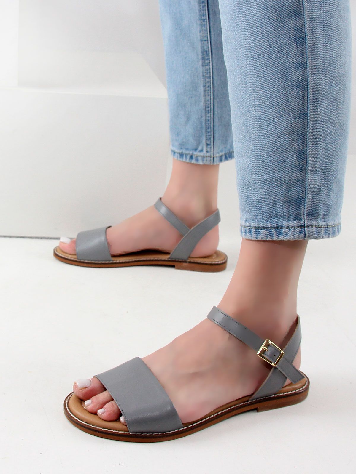 Летние босоножки на сплошной подошве на маленьком каблуке из натуральной кожи большого размера.