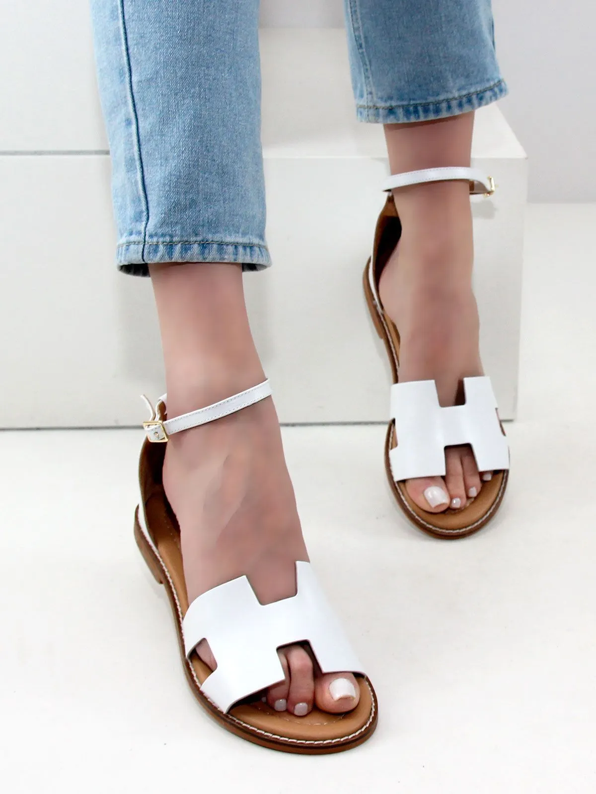Летние босоножки на сплошной подошве на маленьком каблуке из натуральной кожи большого размера.