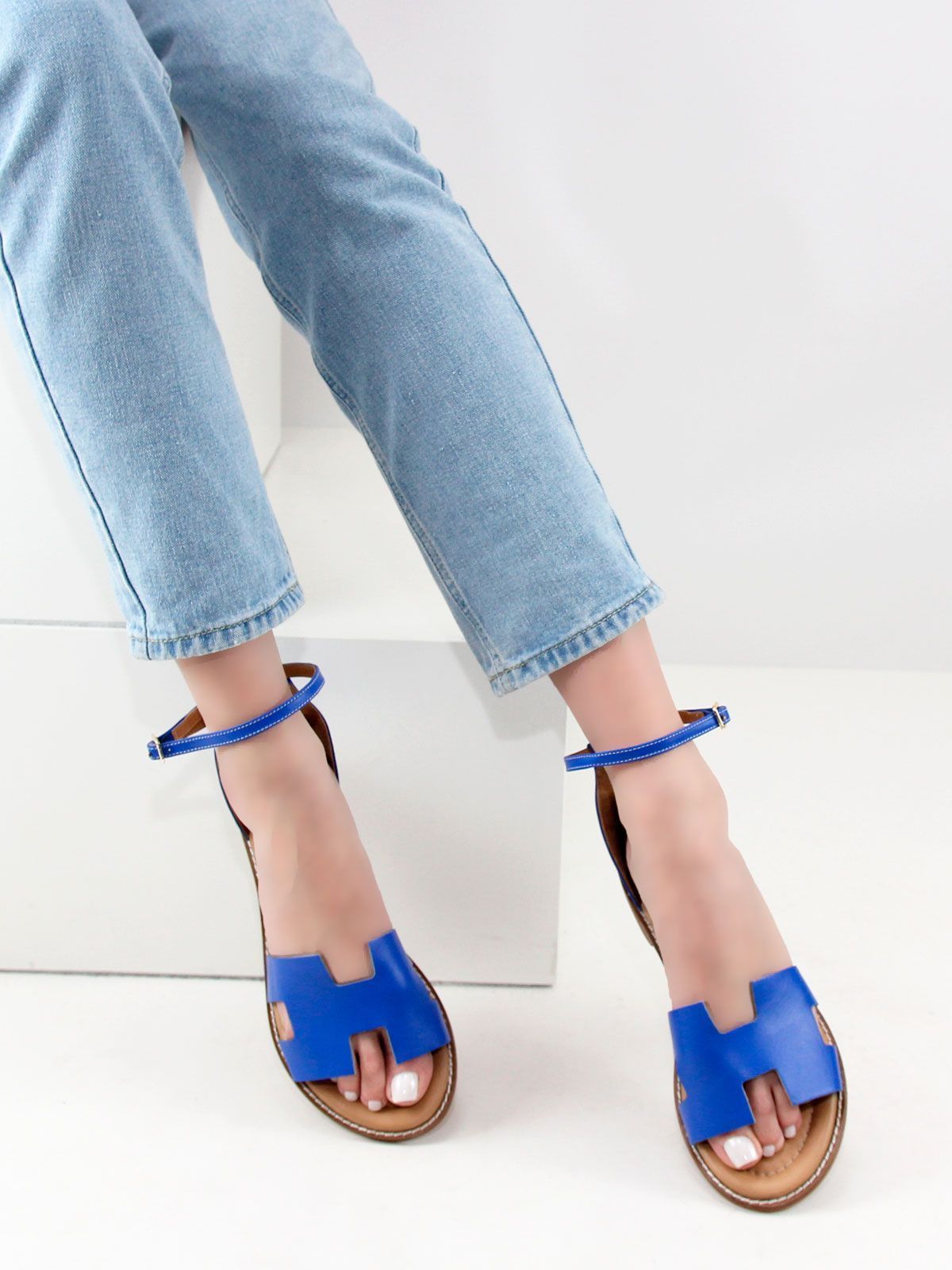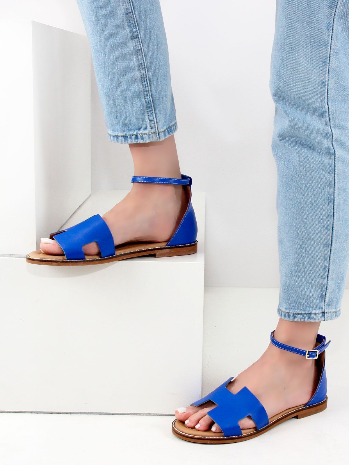 Летние босоножки на сплошной подошве на маленьком каблуке из натуральной кожи большого размера.