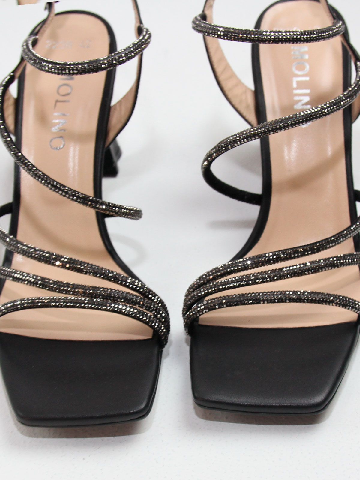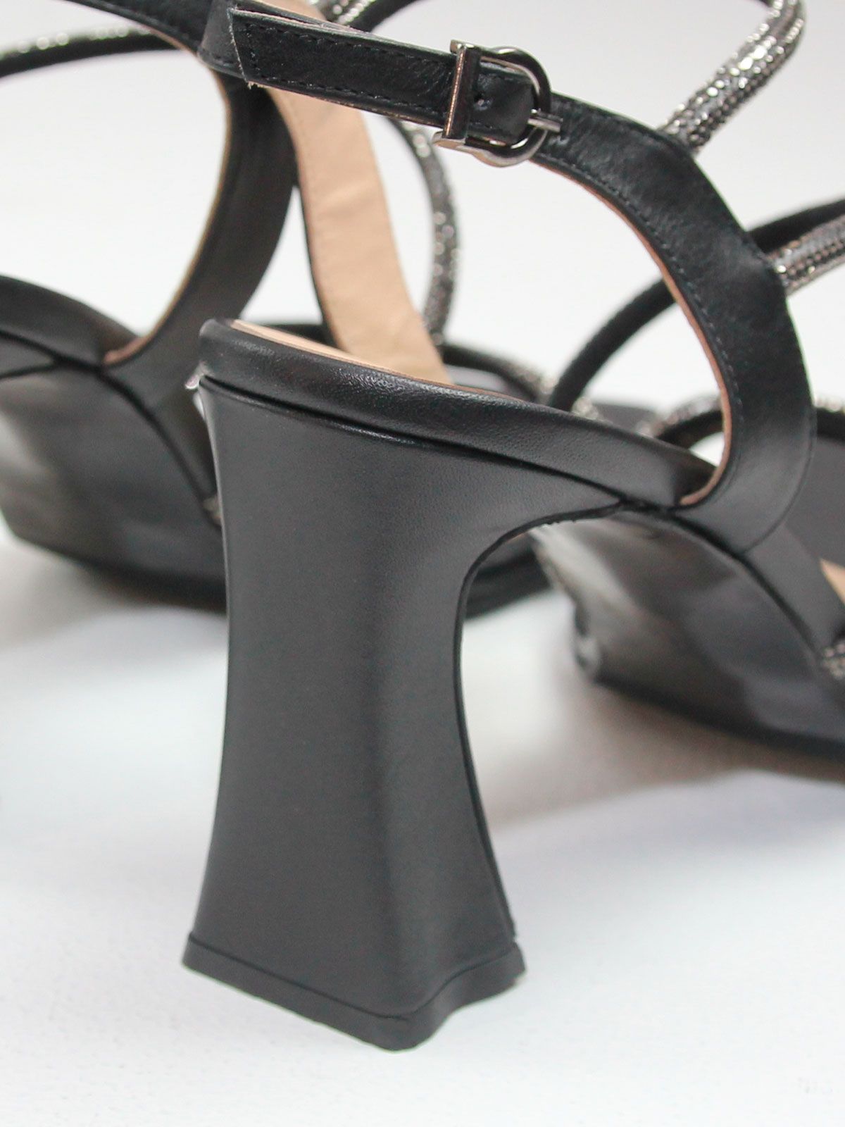 Изящные тонкие ремешки с деликатным блеском красиво фиксируют стопу и создают лёгкий, воздушный силуэт. Мягкая внутренняя сторона обеспечивает комфорт при носке даже в течение длительного времени.