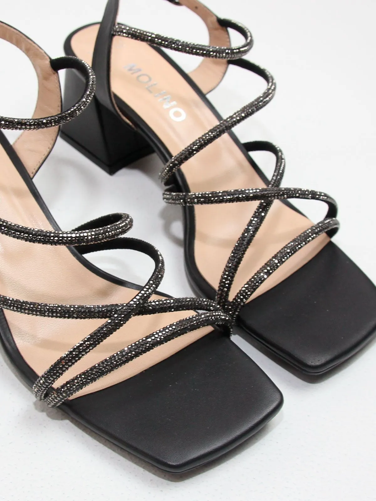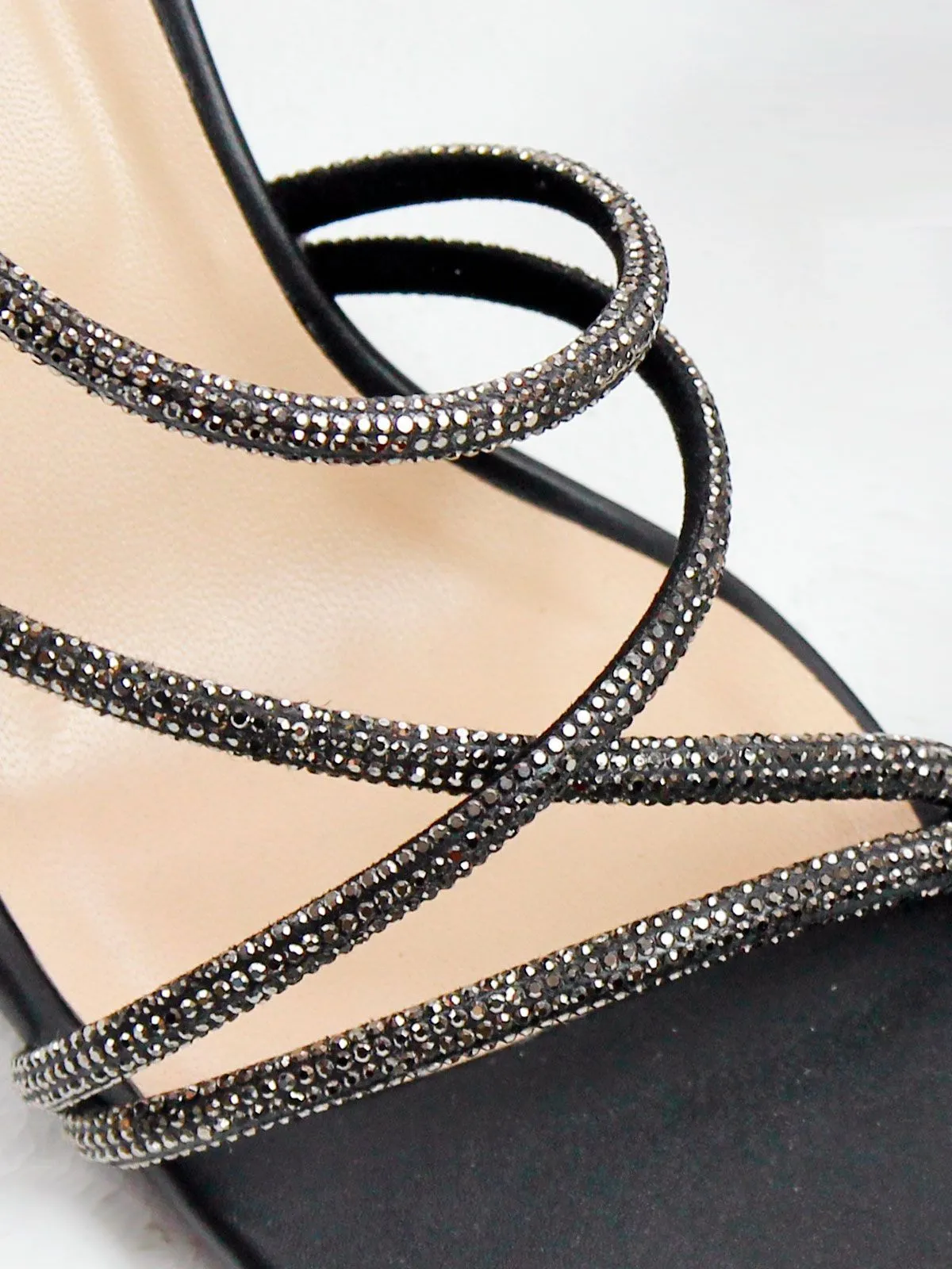Эффектные праздничные босоножки — стильная модель для особых случаев и вечерних образов. Изящные ремешки, украшенные сверкающими стразами, красиво обрамляют стопу и создают лёгкий, нарядный силуэт.