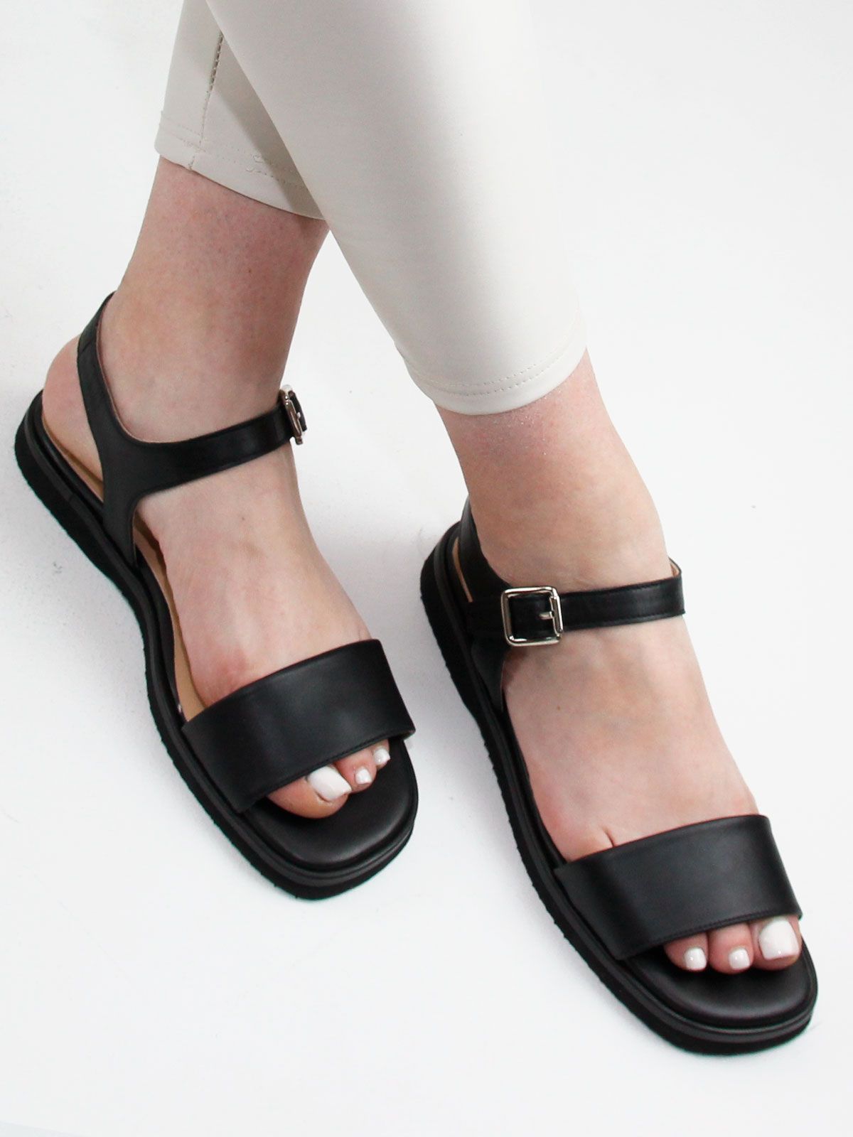 Босоножки женские летние из натуральной кожи в классическом чёрном цвете — универсальная модель на каждый день. Очень лёгкие, без каблука, подходят для длительных прогулок и отдыха. Босоножки больших размеров женские 42-44 сочетают стиль и комфорт, это — практичный выбор для тех, кто ценит стиль и удобство.