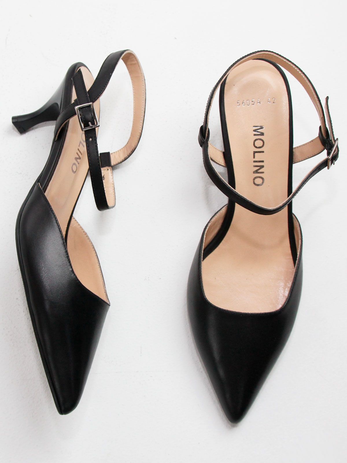 Элегантные чёрные босоножки из натуральной кожи на каблуке — идеальный выбор для вечернего выхода или особого случая. Модель с закрытым острым носом и открытой пяткой подчёркивает утончённый стиль и лёгкость образа. Изящные ремешки красиво обхватывают щиколотку, обеспечивая комфорт и надёжную фиксацию. Каблук-рюмочка придаёт дополнительную женственность и делает босоножки Molino подходящими как для повседневной носки, так и для торжественных мероприятий.