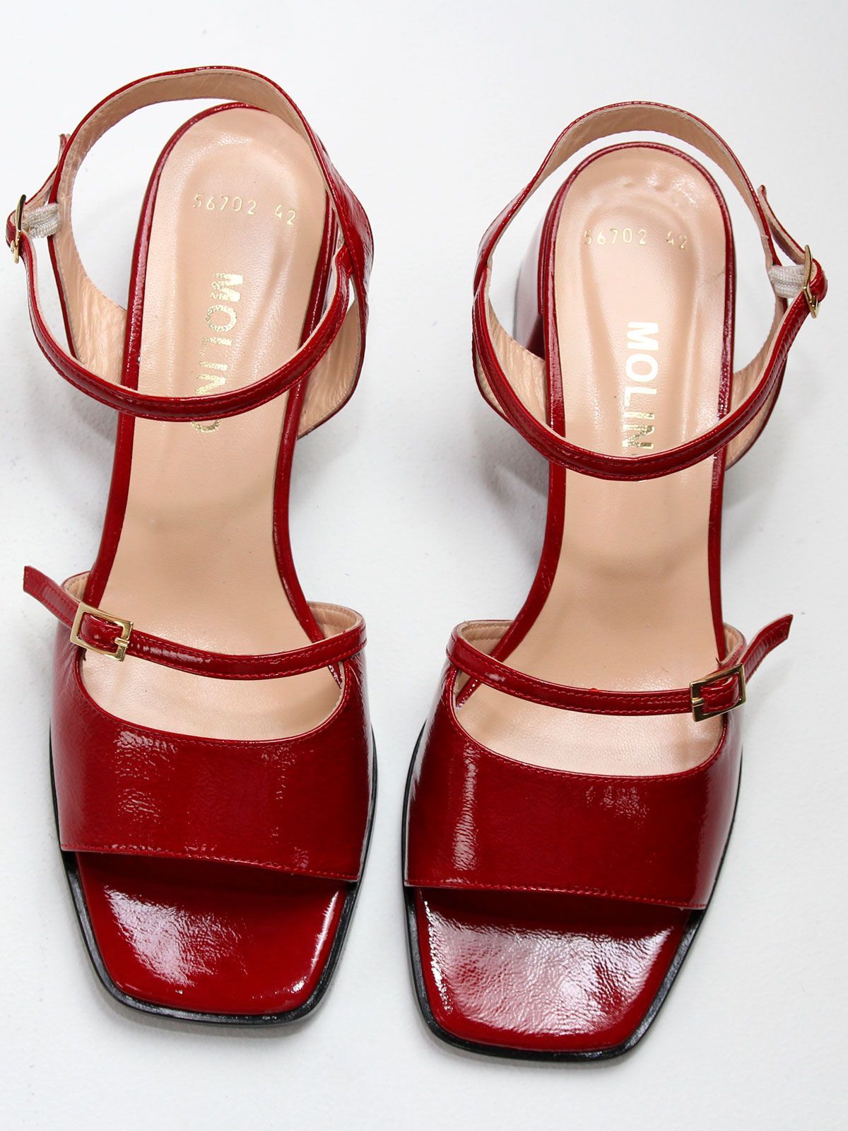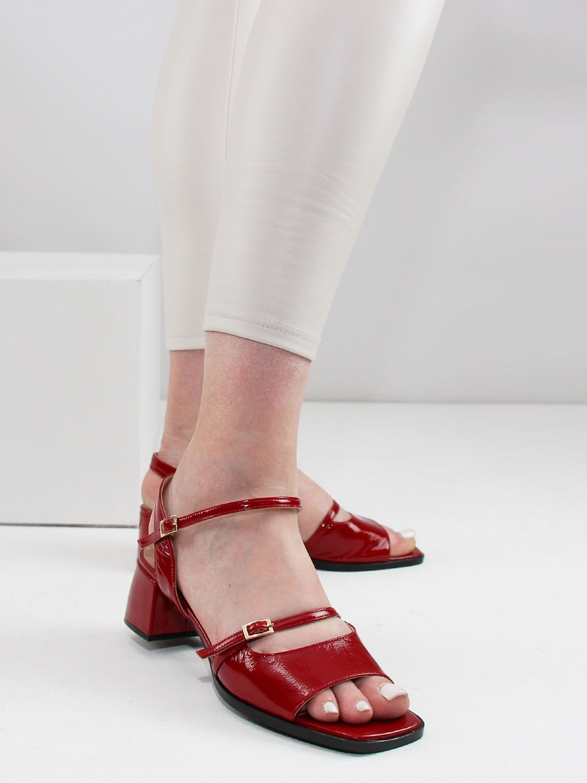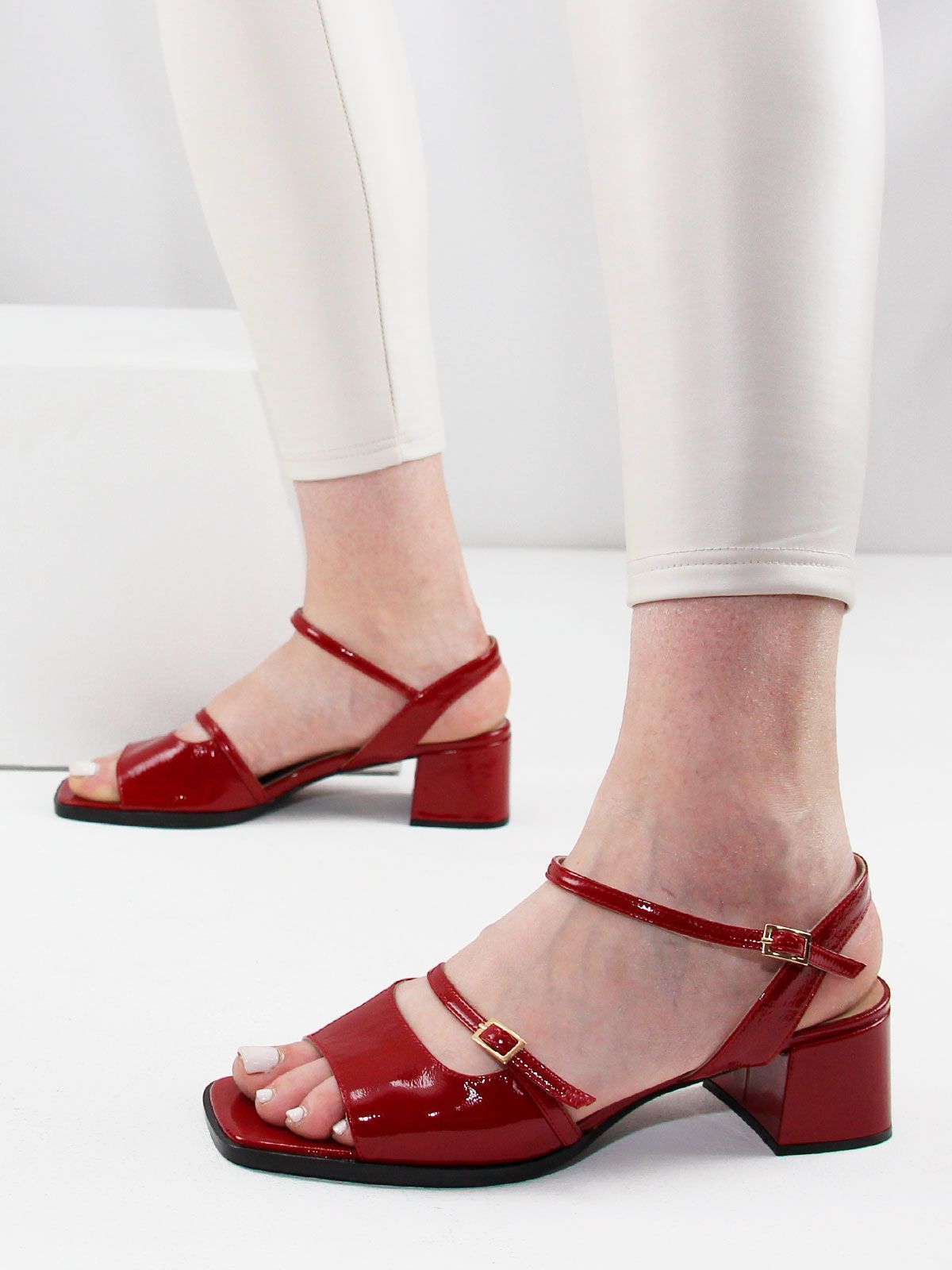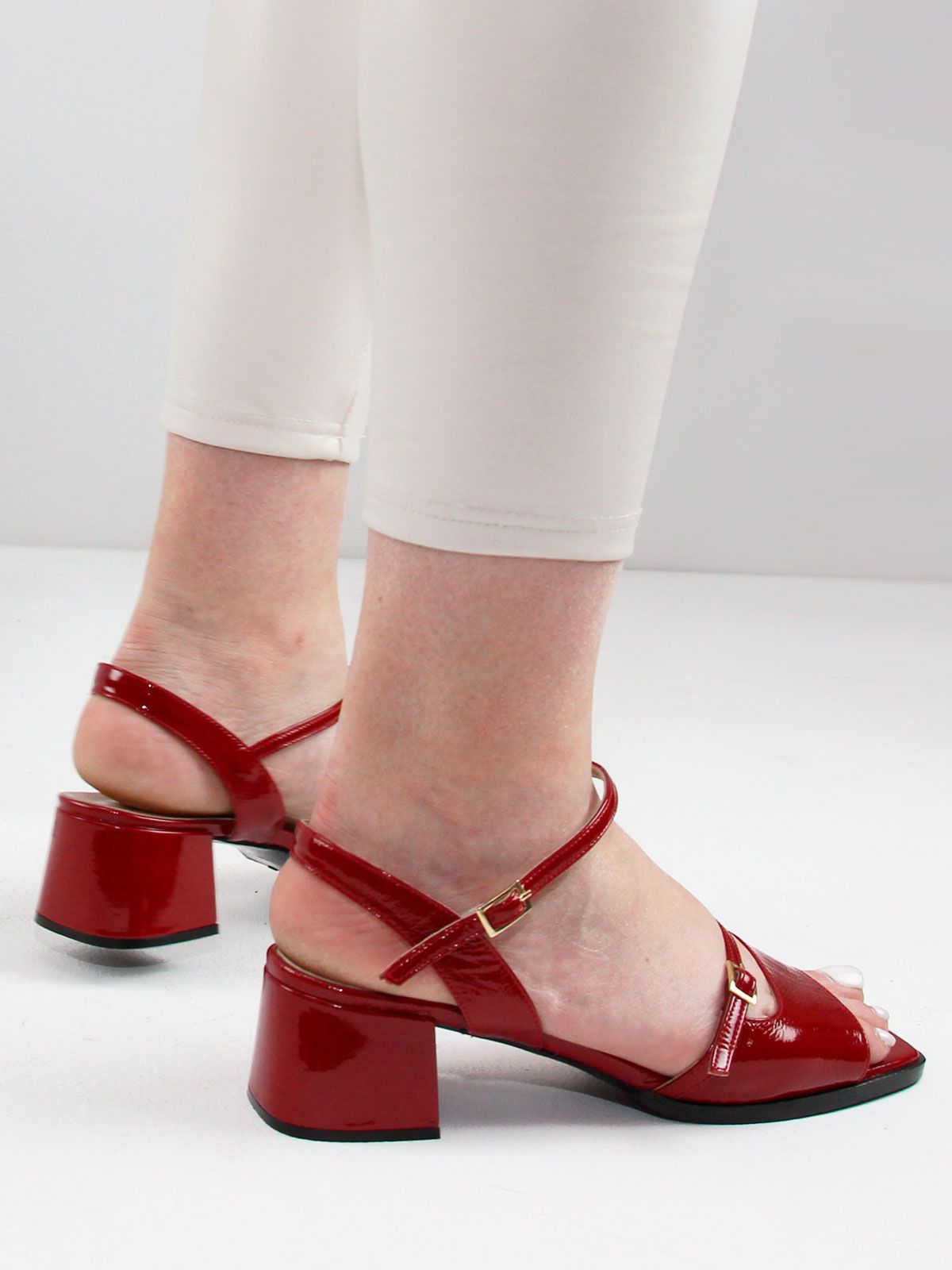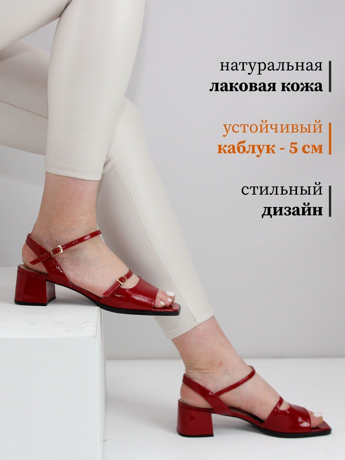 Летние женские босоножки большого размера из натуральной лаковой кожи на небольшом каблуке. Подойдут на стандартную стопу.