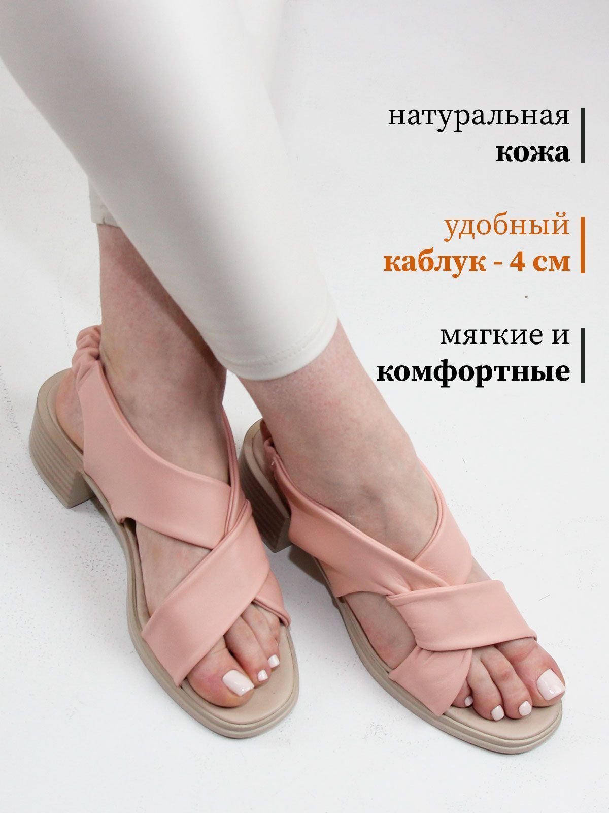 Стильные босоножки больших размеров из мягкой натуральной кожи на невысоком устойчивом каблуке.