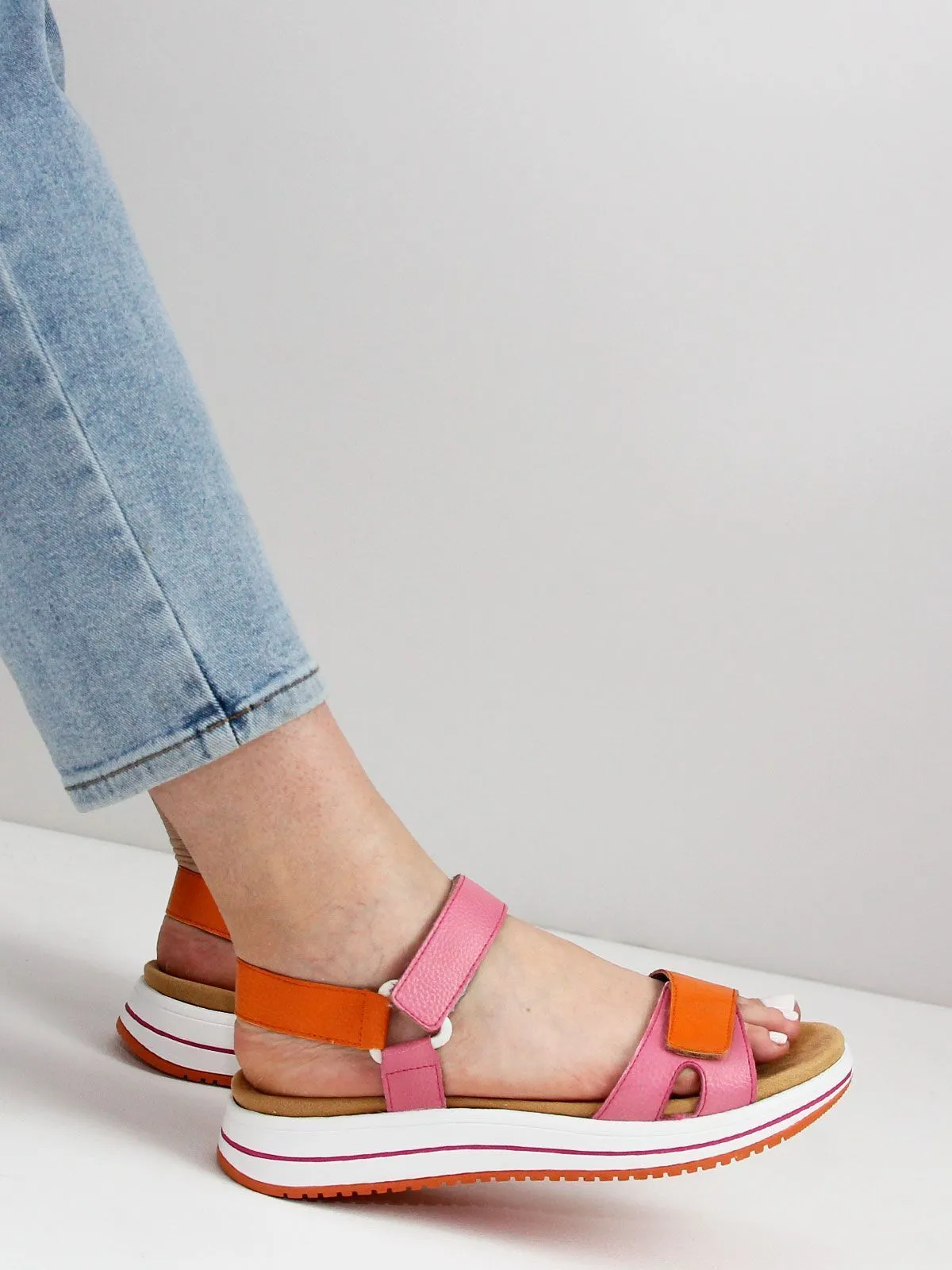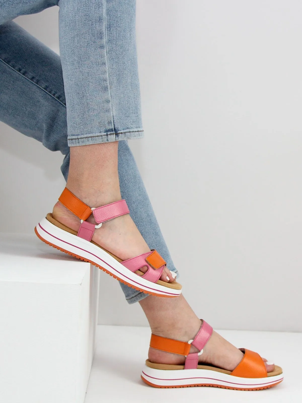 Яркое сочетание цветов — оранжевый и фуксия — добавит вашему летнему образу яркости и свежести. Не упустите возможность подчеркнуть свой стиль и комфорт в этом сезоне. Выбирайте удобные босоножки и наслаждайтесь каждым шагом.