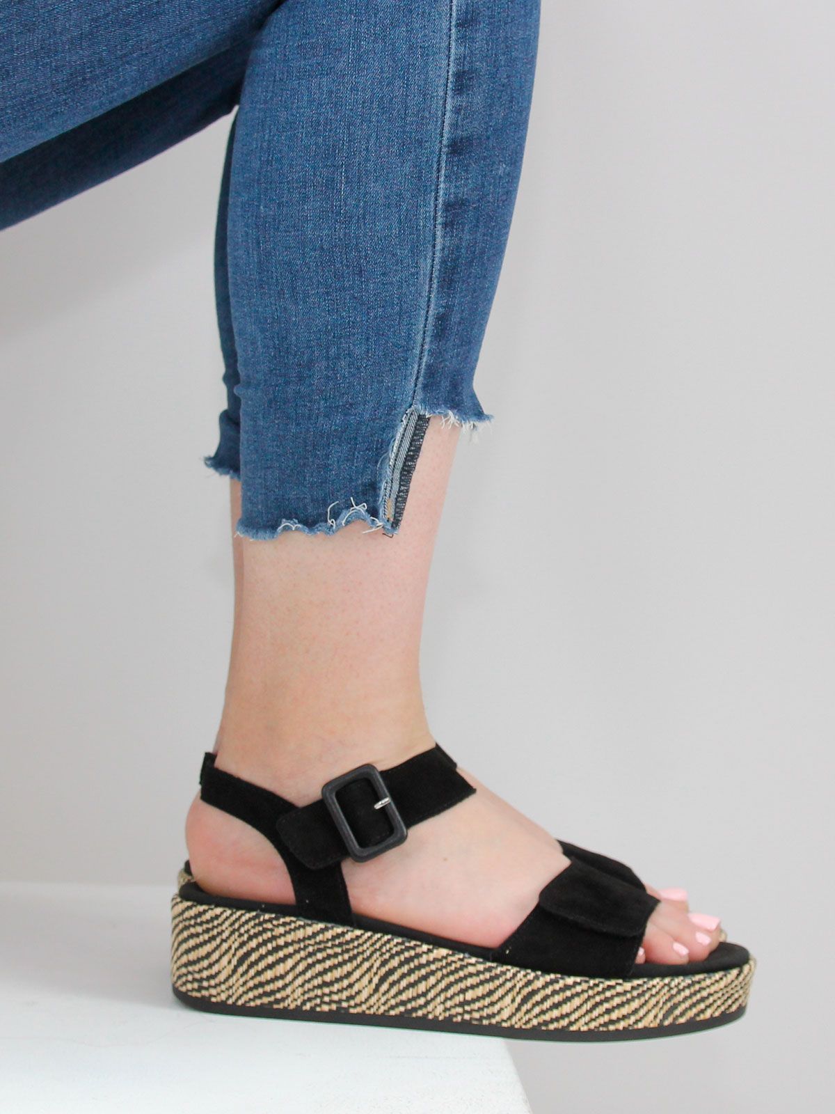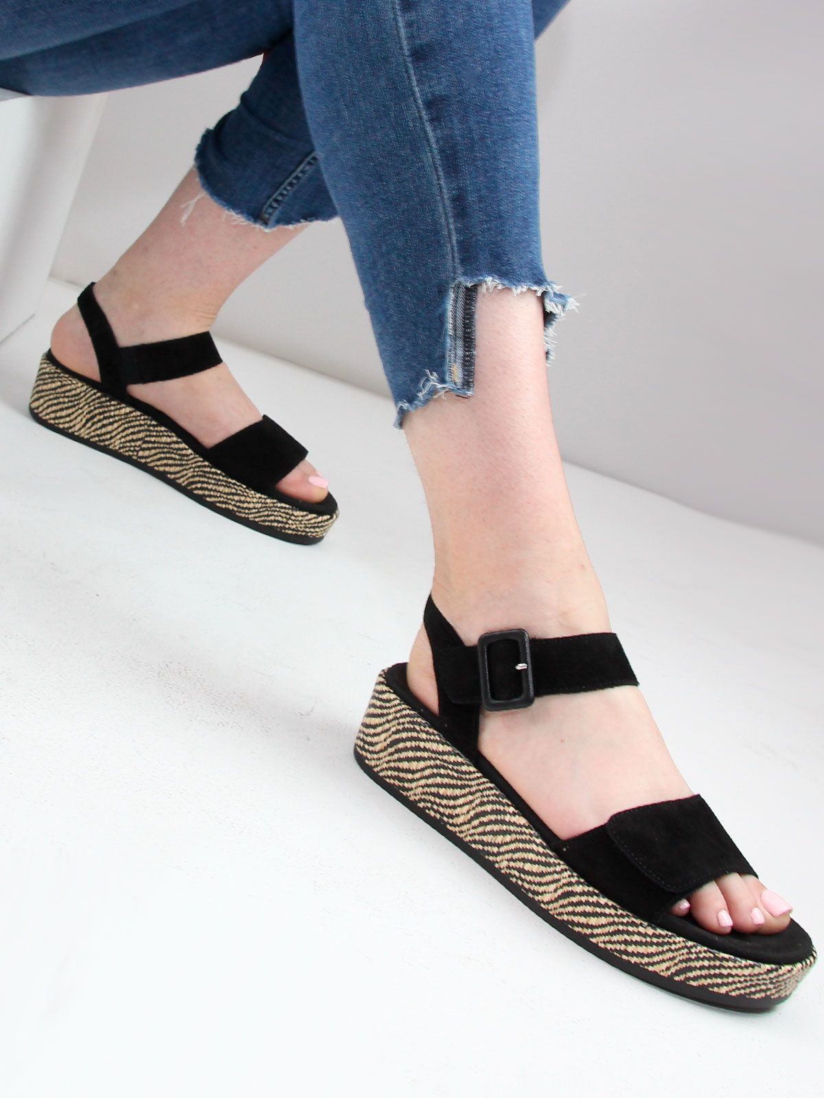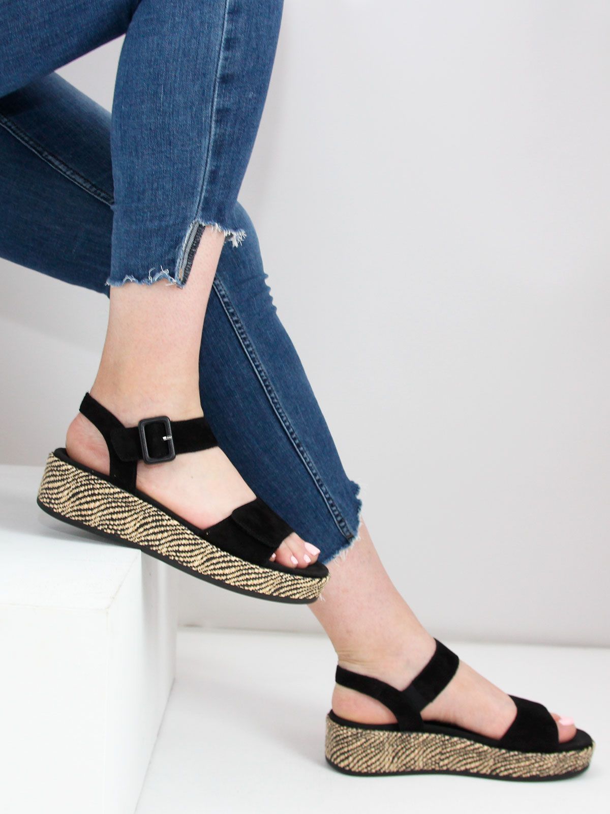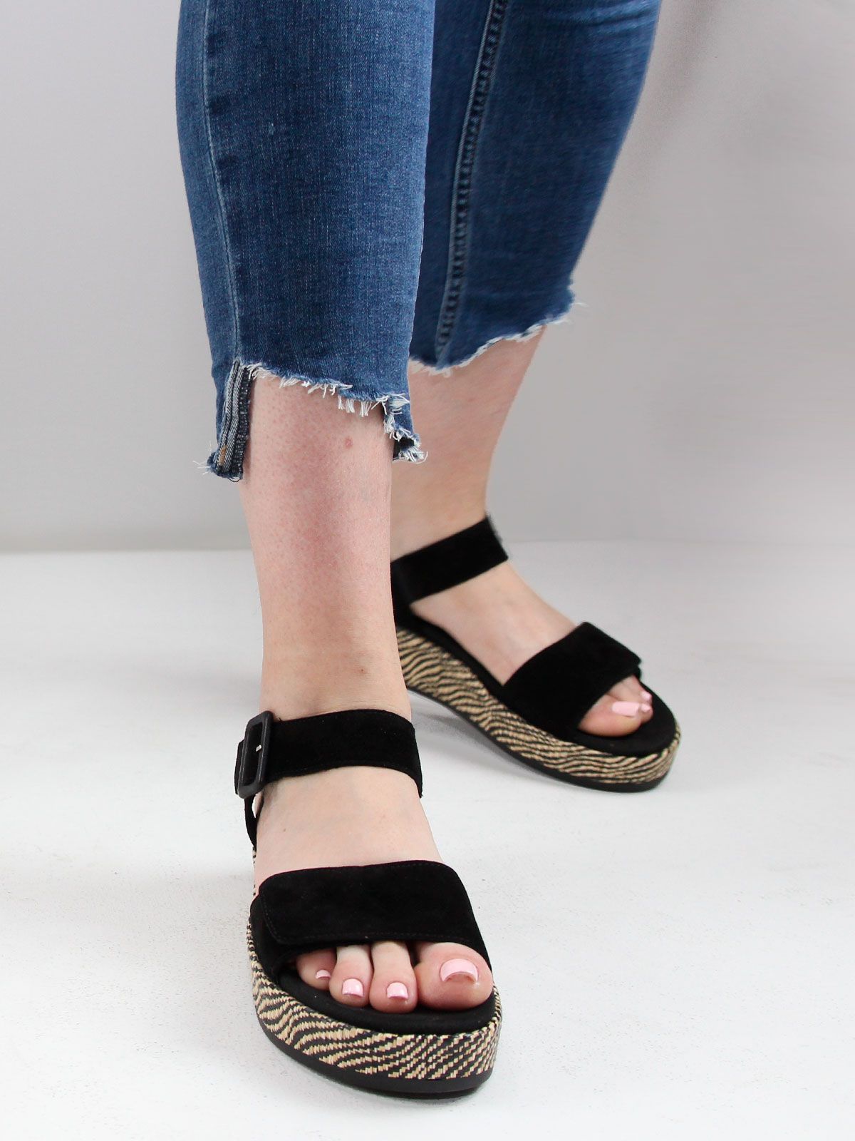 Эти стильные летние босоножки на танкетке от Remonte станут идеальным дополнением к вашему летнему гардеробу. Изготовленные из натуральной замши, они не только выглядят элегантно, но и обеспечивают комфорт вашим ногам в течение всего дня. Танкетка высотой 5 см обеспечивает удобную поддержку, а высота подошвы в 3.5 см добавляет легкости шагу. Благодаря ортопедической конструкции, эти босоножки подойдут даже для длительных прогулок. Черный цвет универсален и легко сочетается с любыми летними нарядами. Босоножки Remonte - это идеальный выбор для тех, кто ценит комфорт, стиль и качество.