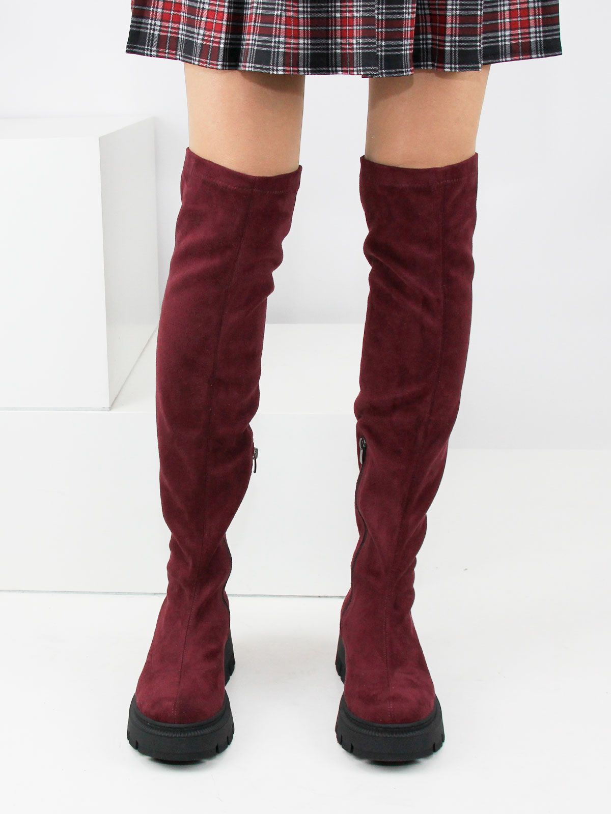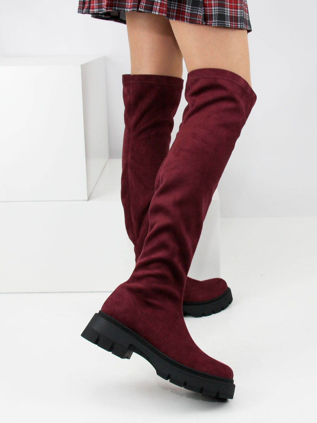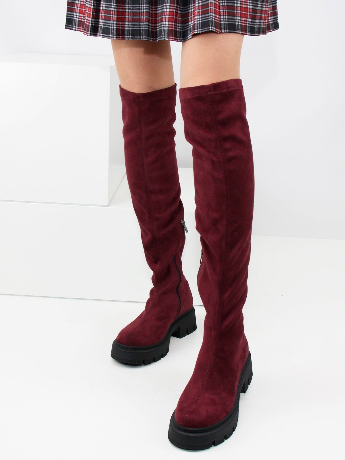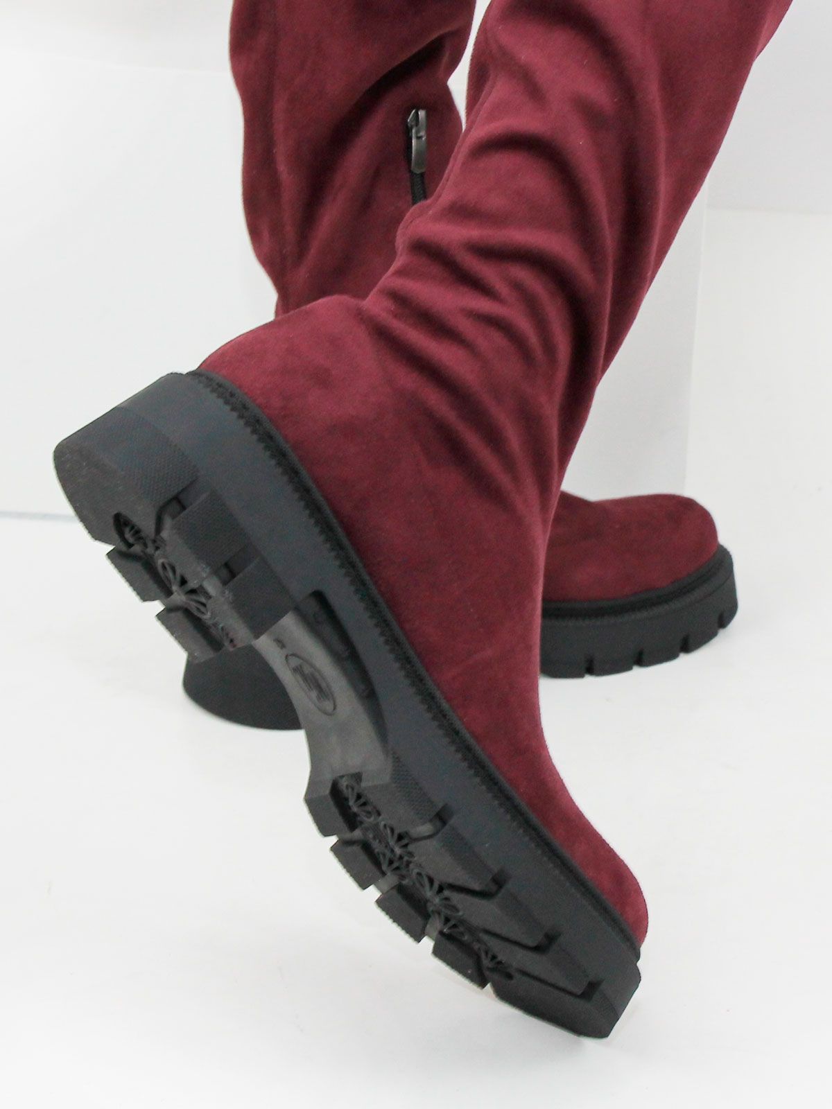 Ботфорты чулки стрейч больших размеров из замши стрейч. Высота сапог - 56 см. Объем голенища в самой верхней широкой части - 45 см. Модель утеплена байкой до щиколотки. Ботфорты очень хорошо тянутся. Подойдут на стандартную и широкую голень. Удобная нескользкая высокая тракторная подошва.