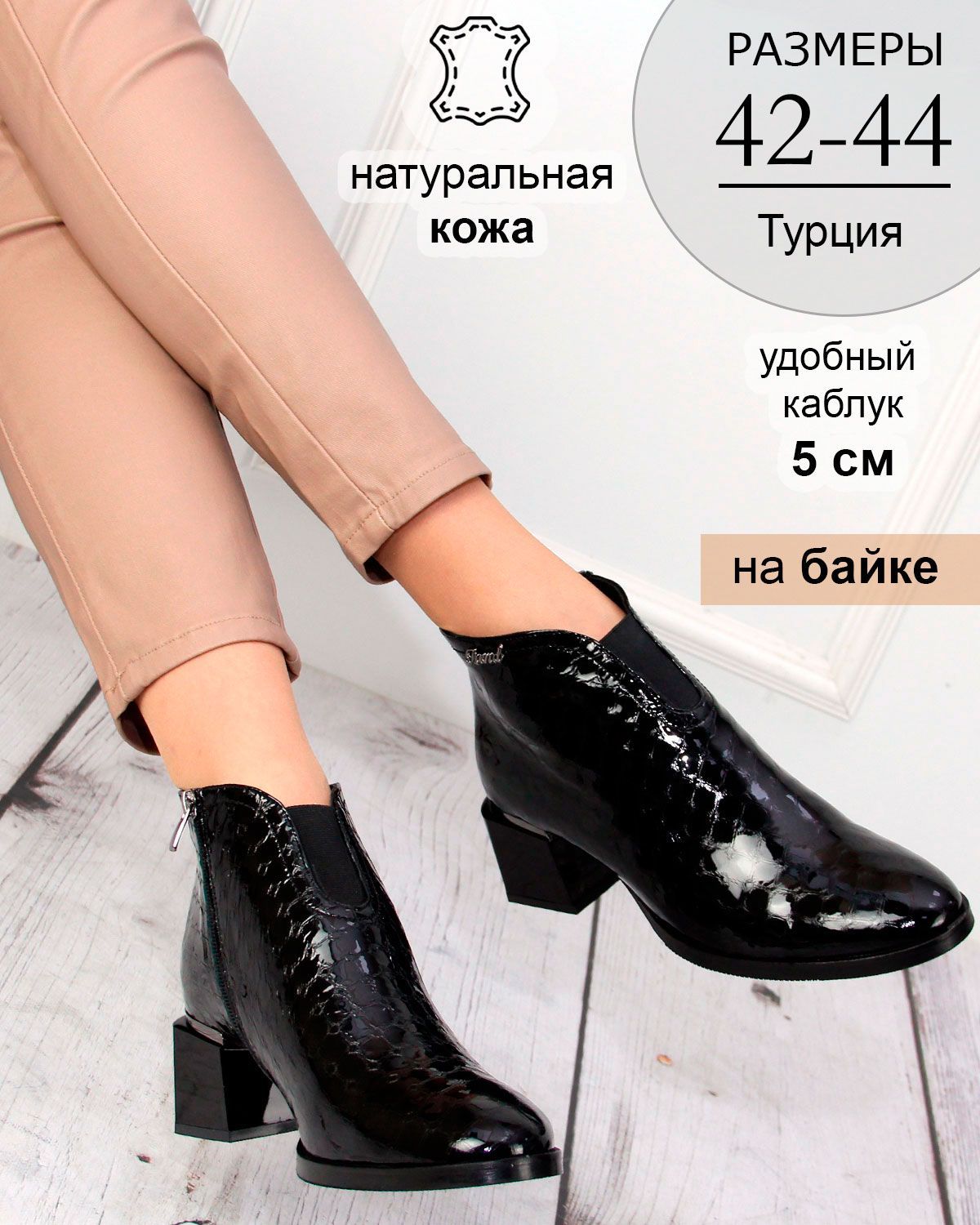 Ботильоны больших размеров из лаковой натуральной кожи, производство Турция, идут в размер.