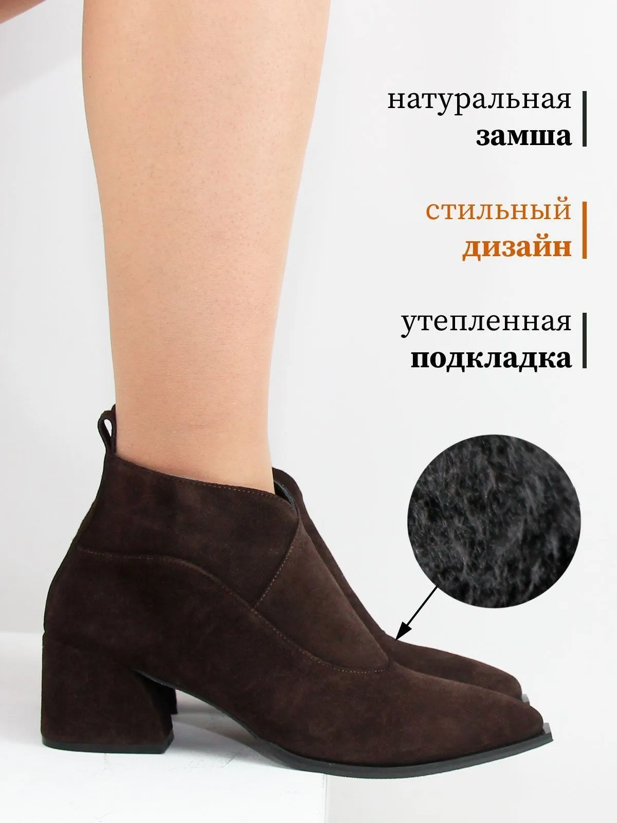 Отличный выбор для тех, кто ищет стильные, качественные и удобные женские замшевые ботильоны больших размеров с актуальной формой подошвы и трендовым коричневым цветом.