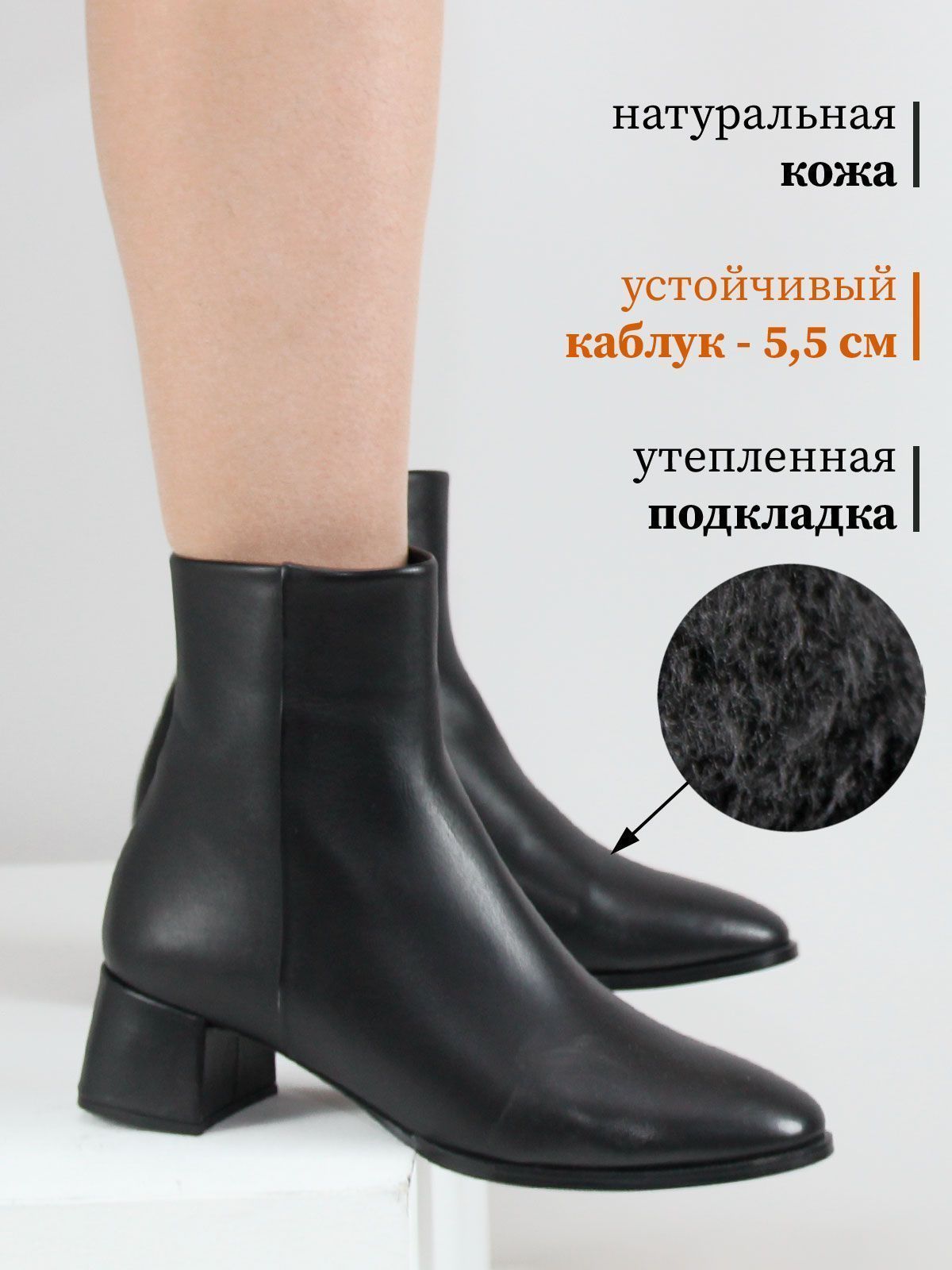 Классические женские ботильоны больших размеров из гладкой чёрной кожи — идеальный вариант для тех, кто ценит простоту, элегантность и комфорт.