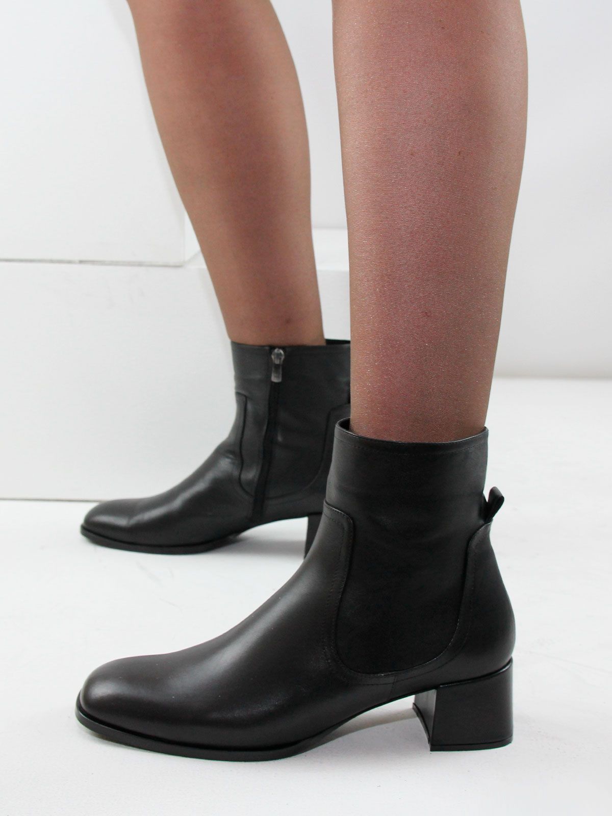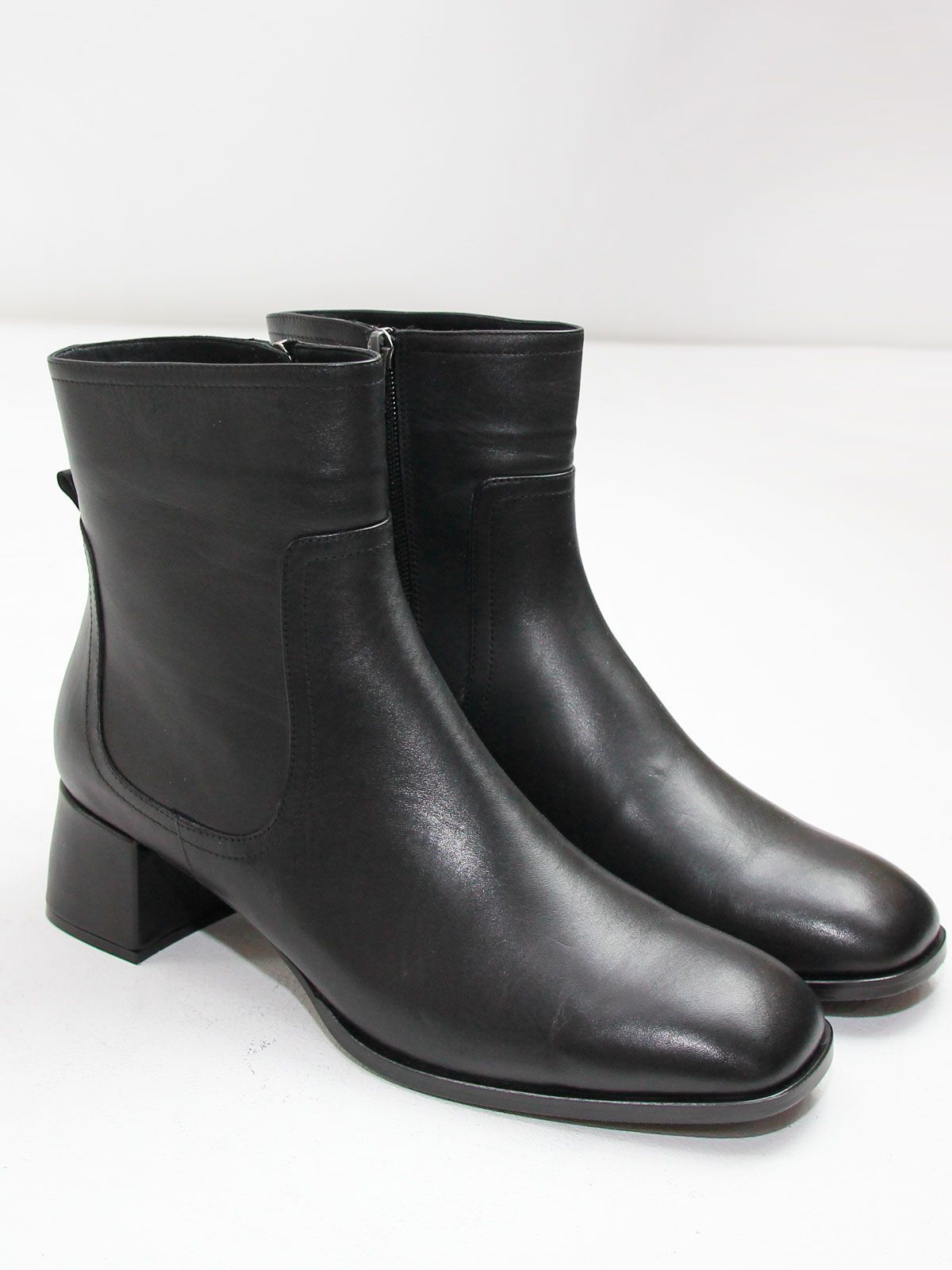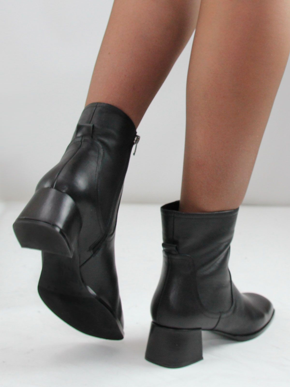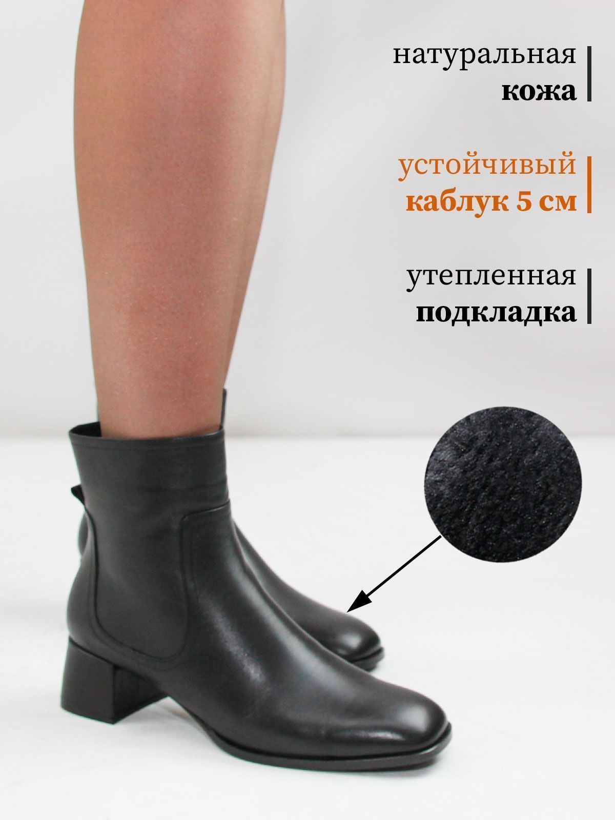 Ботильоны высокие демисезонные большого размера на широком, устойчивом каблуке. Подкладка - байка. Ботильоны выполнены из натуральной кожи черного цвета. Нескользящая резиновая подошва, квадратный мыс. Сбоку - застежка молния. Обхват ботинок в самой верхней части - 31 см. Высота обуви - 15 см без учета каблука. Нестользящая рельефная резиновая подошва.
