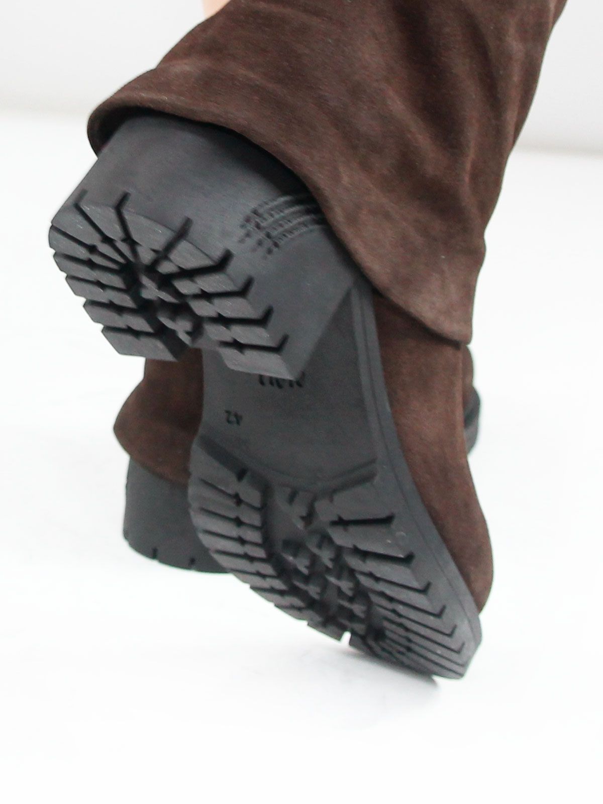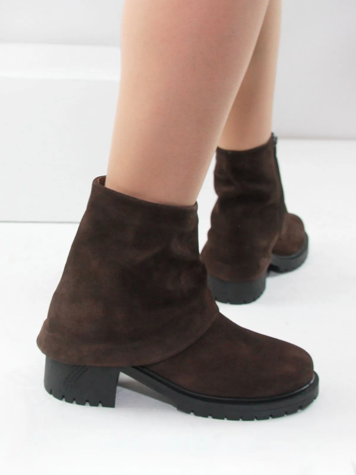 Демисезонная модель Molino выполнена из мягкой натуральной замши в актуальном шоколадном коричневом оттенке, который остаётся в тренде.