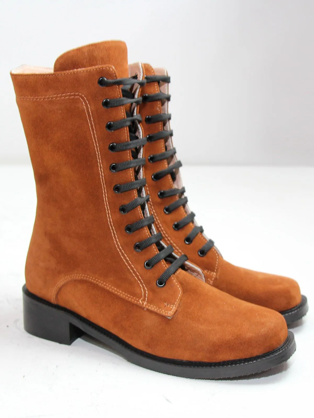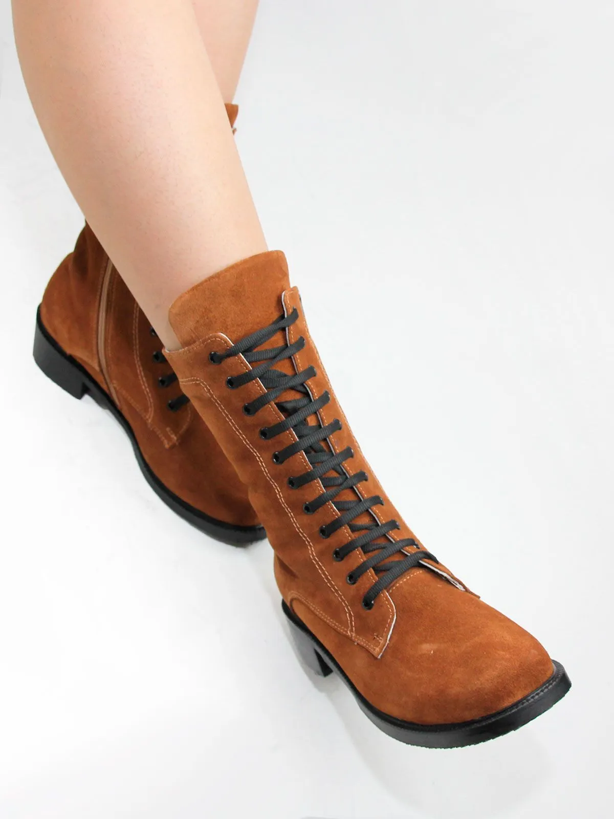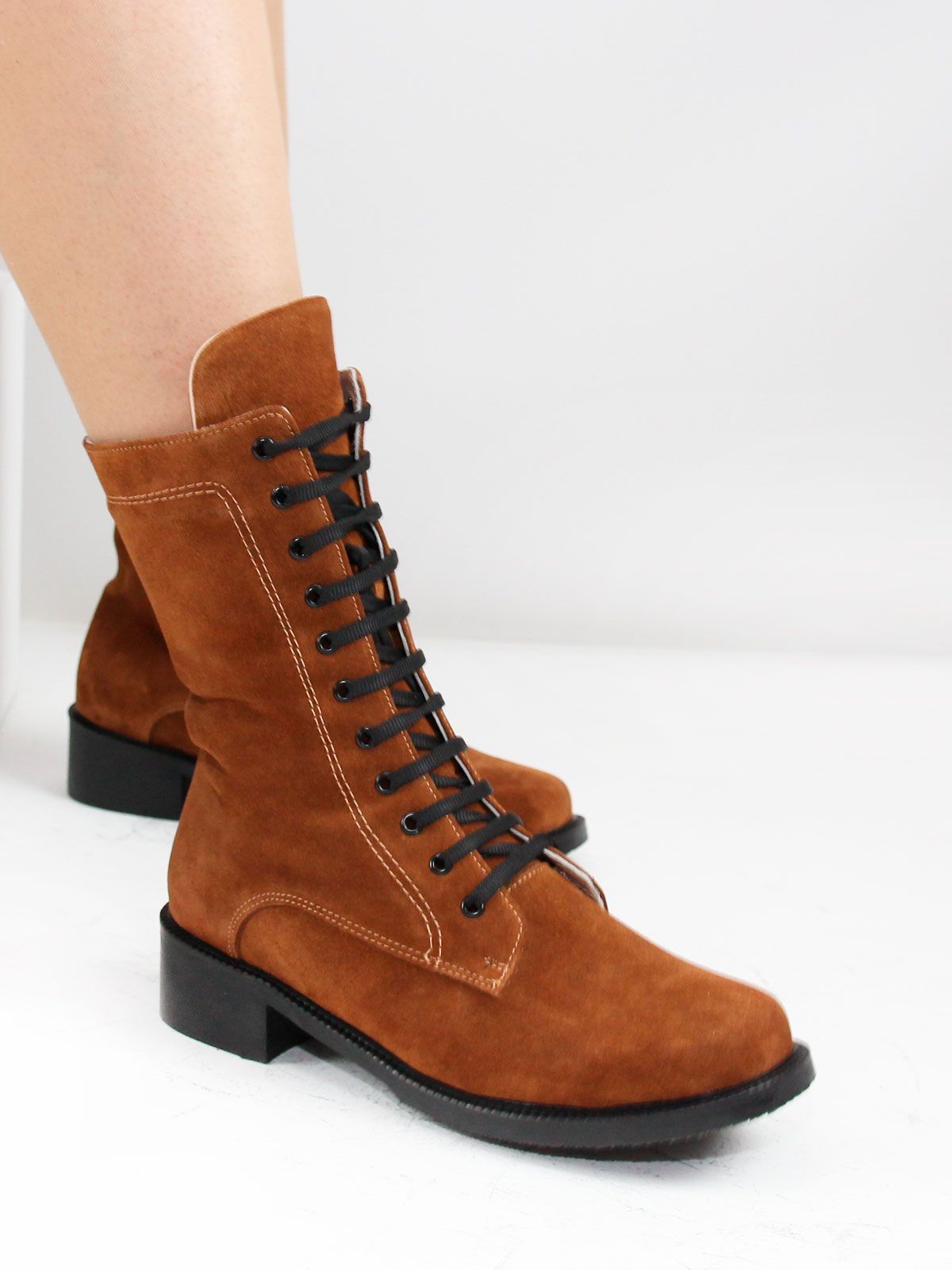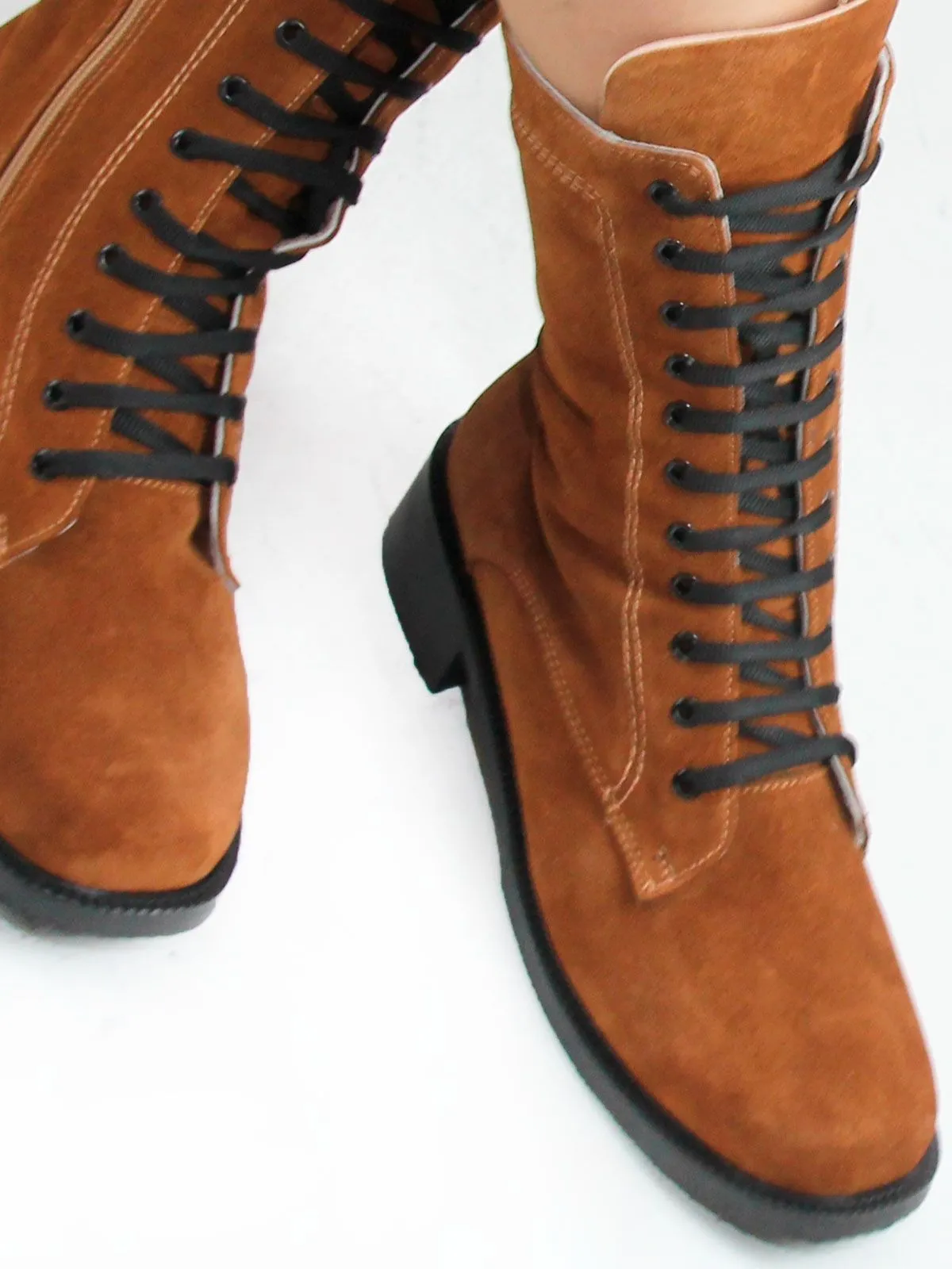Идеальные универсальные женские ботинки-броги больших размеров из натуральной замши светло-коричневого цвета. Демисезонные ботинки на шнуровке, с широким мысом утеплены плотным искуственным мехом. Сбоку - молния. Легкая подошва. Производство - Турция.
