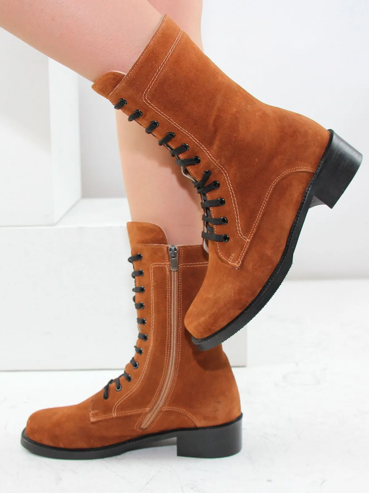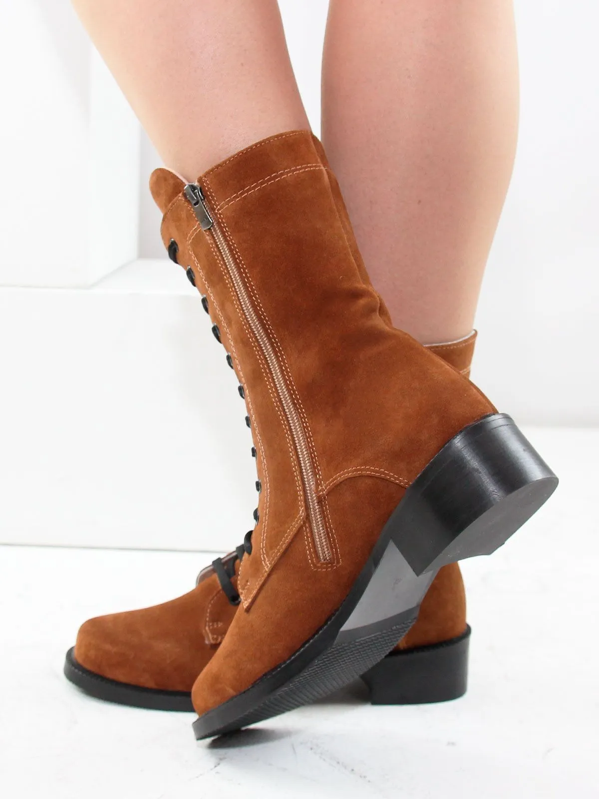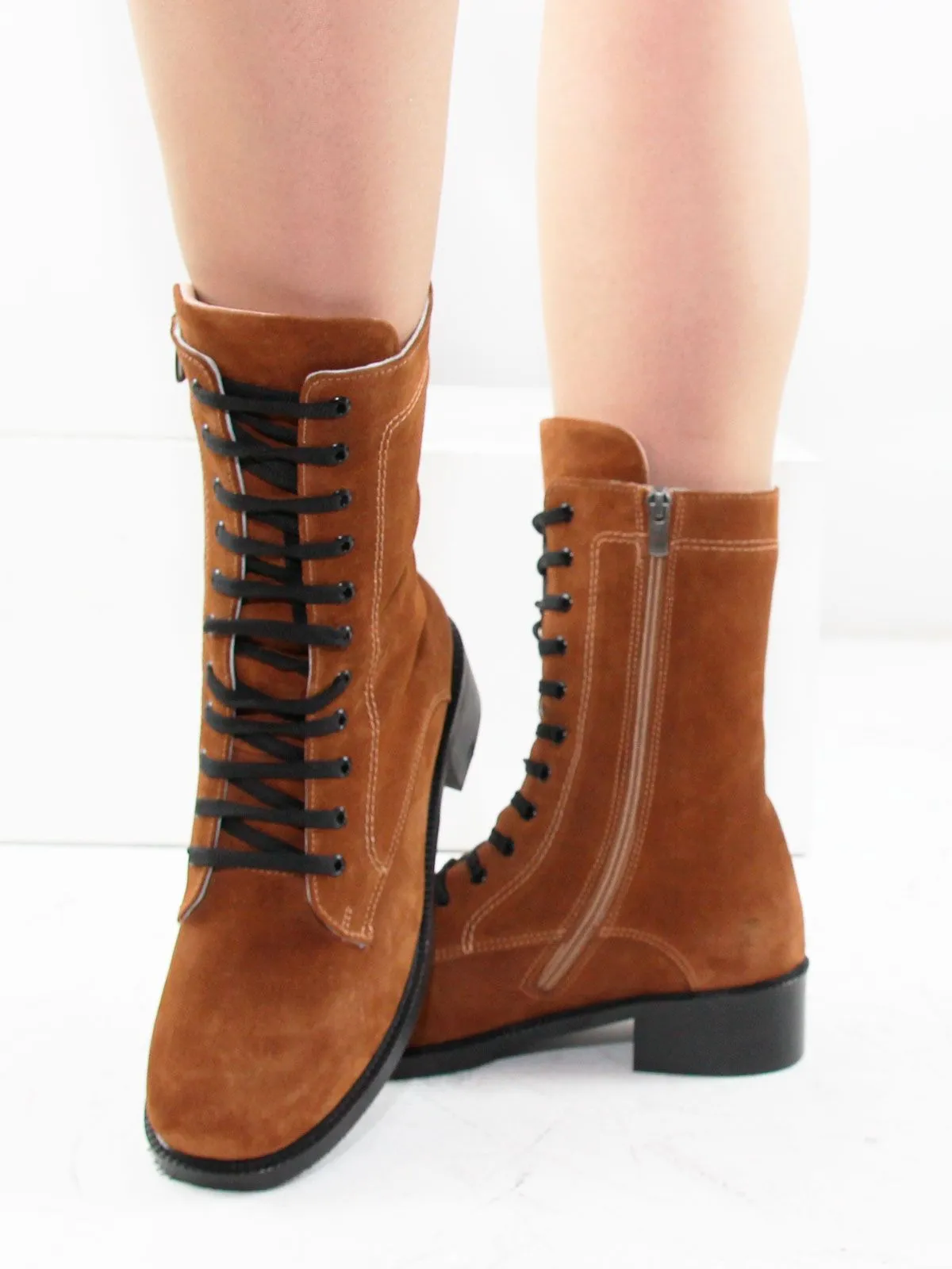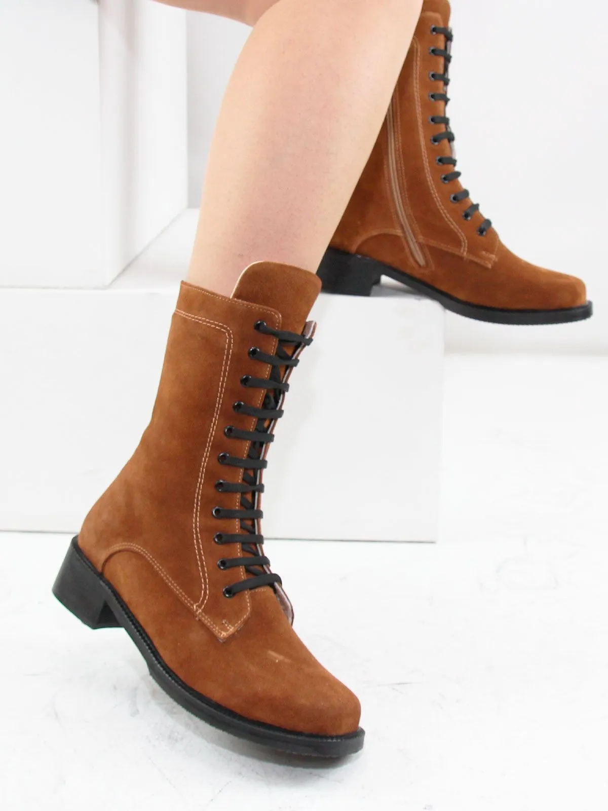 Идеальные универсальные женские ботинки-броги больших размеров из натуральной замши светло-коричневого цвета. Демисезонные ботинки на шнуровке, с широким мысом утеплены плотным искуственным мехом. Сбоку - молния. Легкая подошва. Производство - Турция.