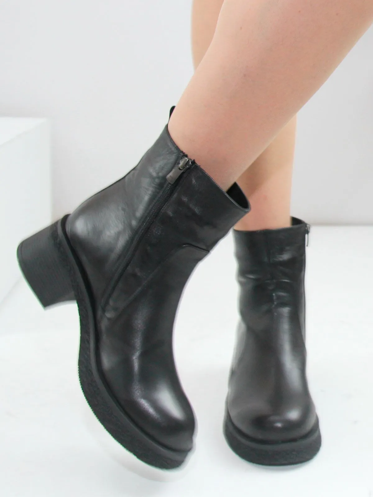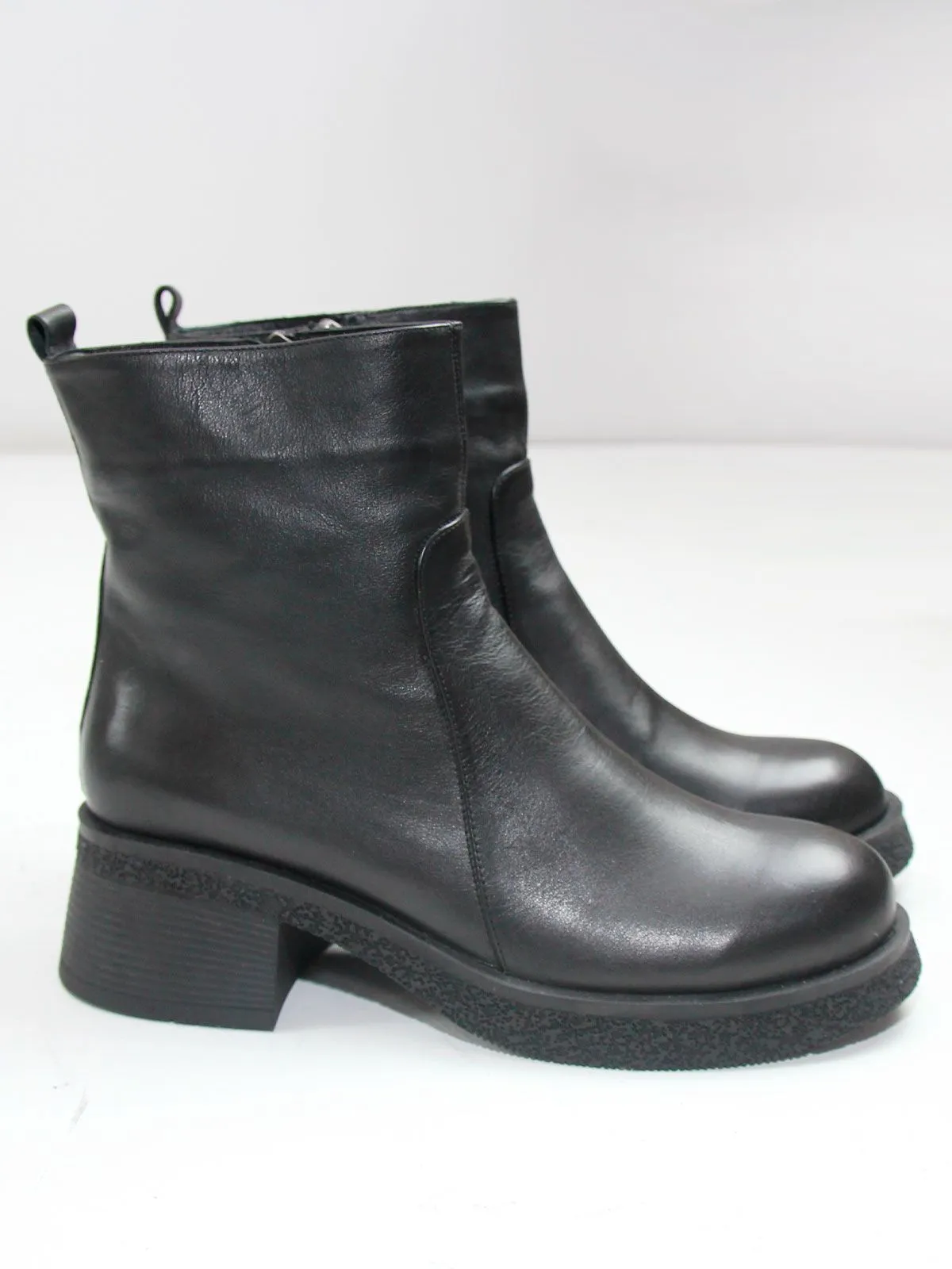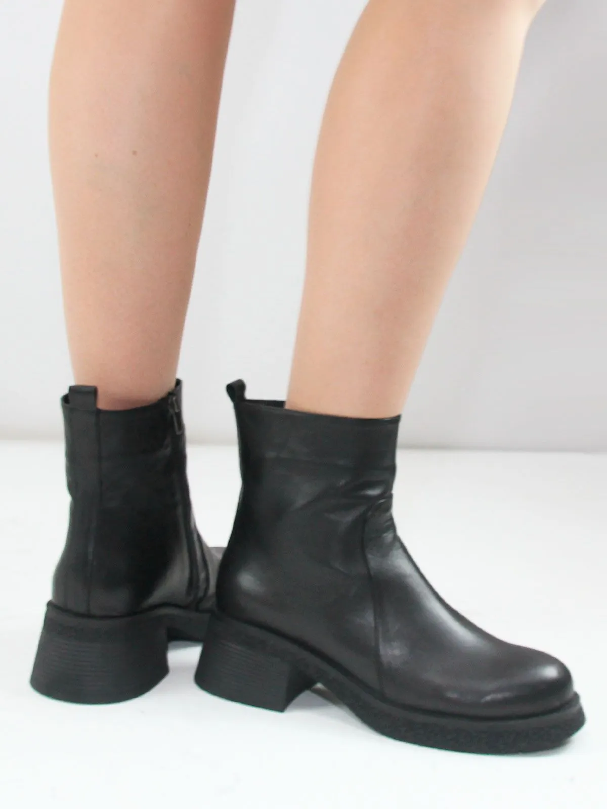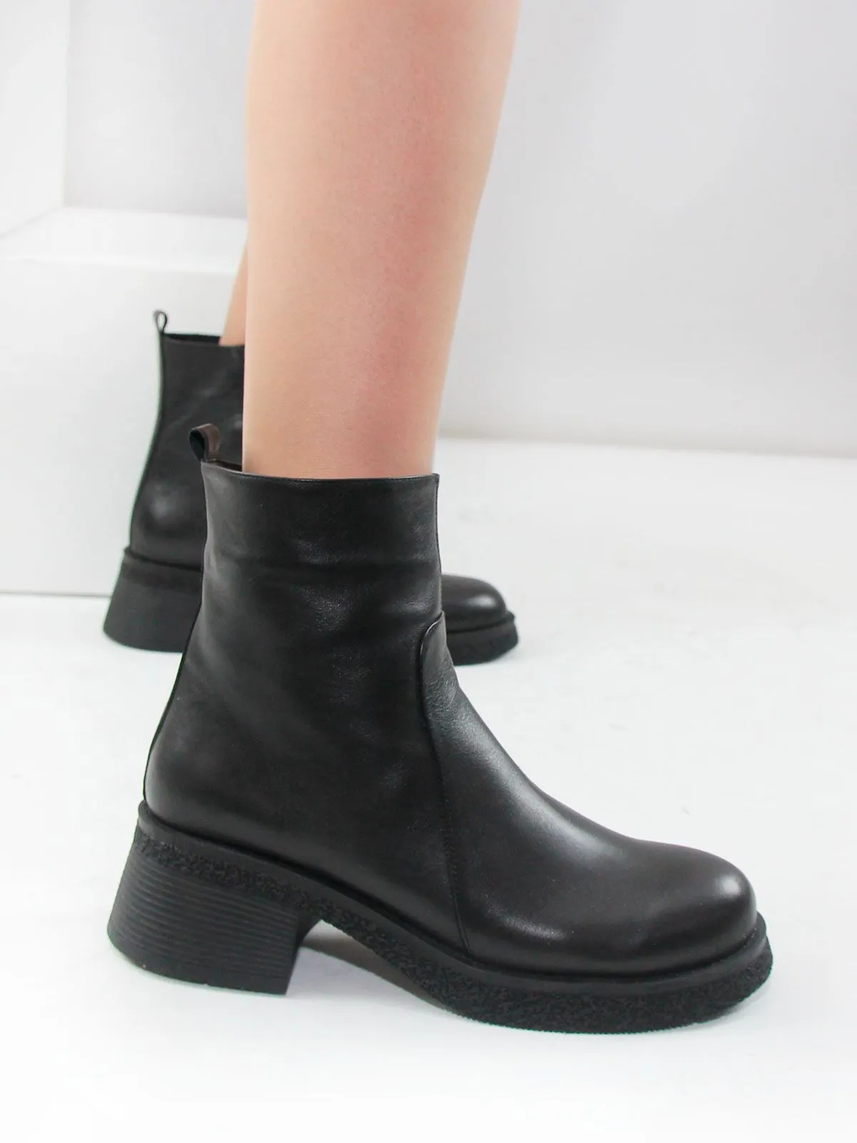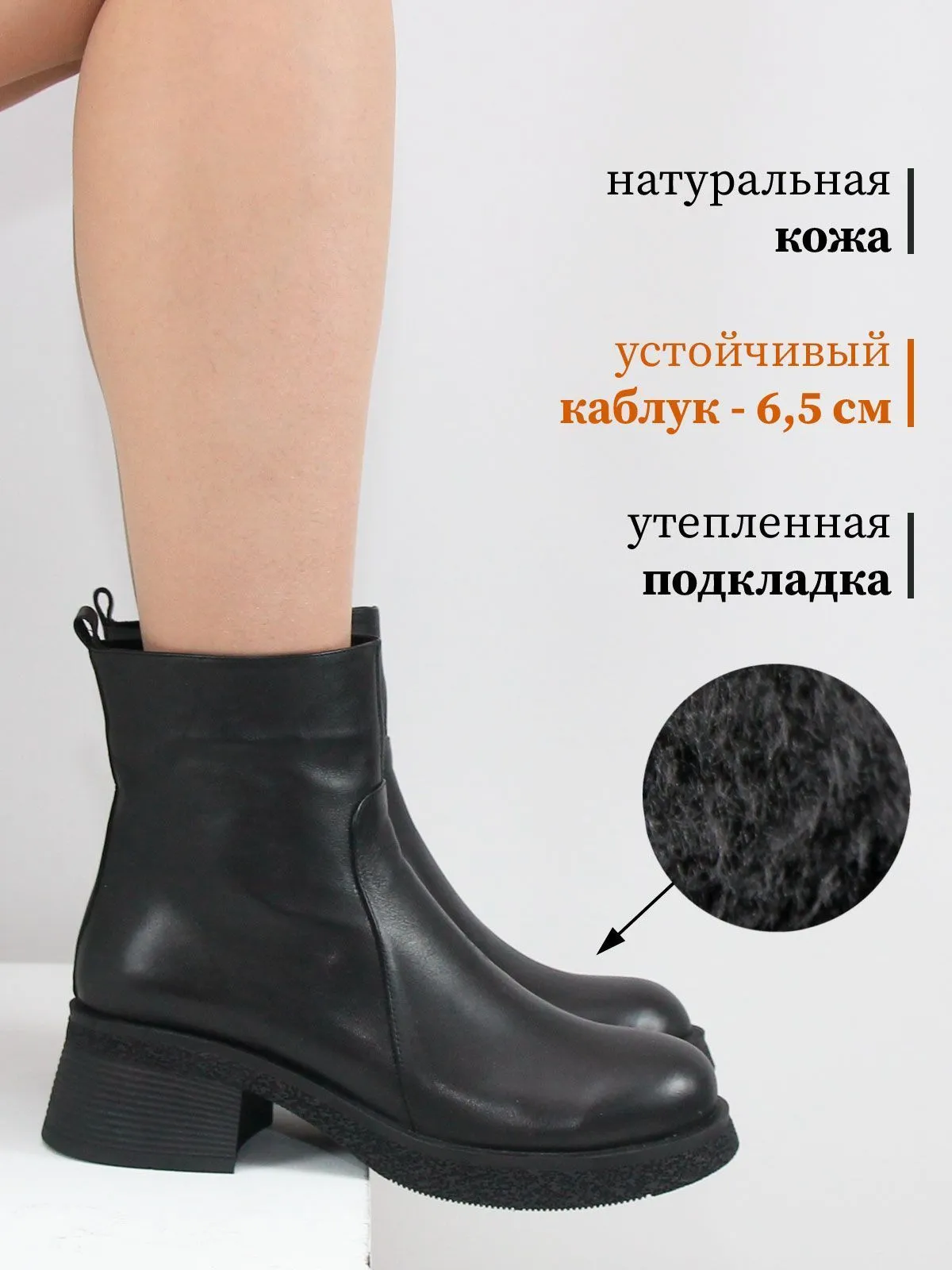 Невысокий устойчивый каблук делает классические ботильоны удобными на каждый день, а боковая молния облегчает надевание.