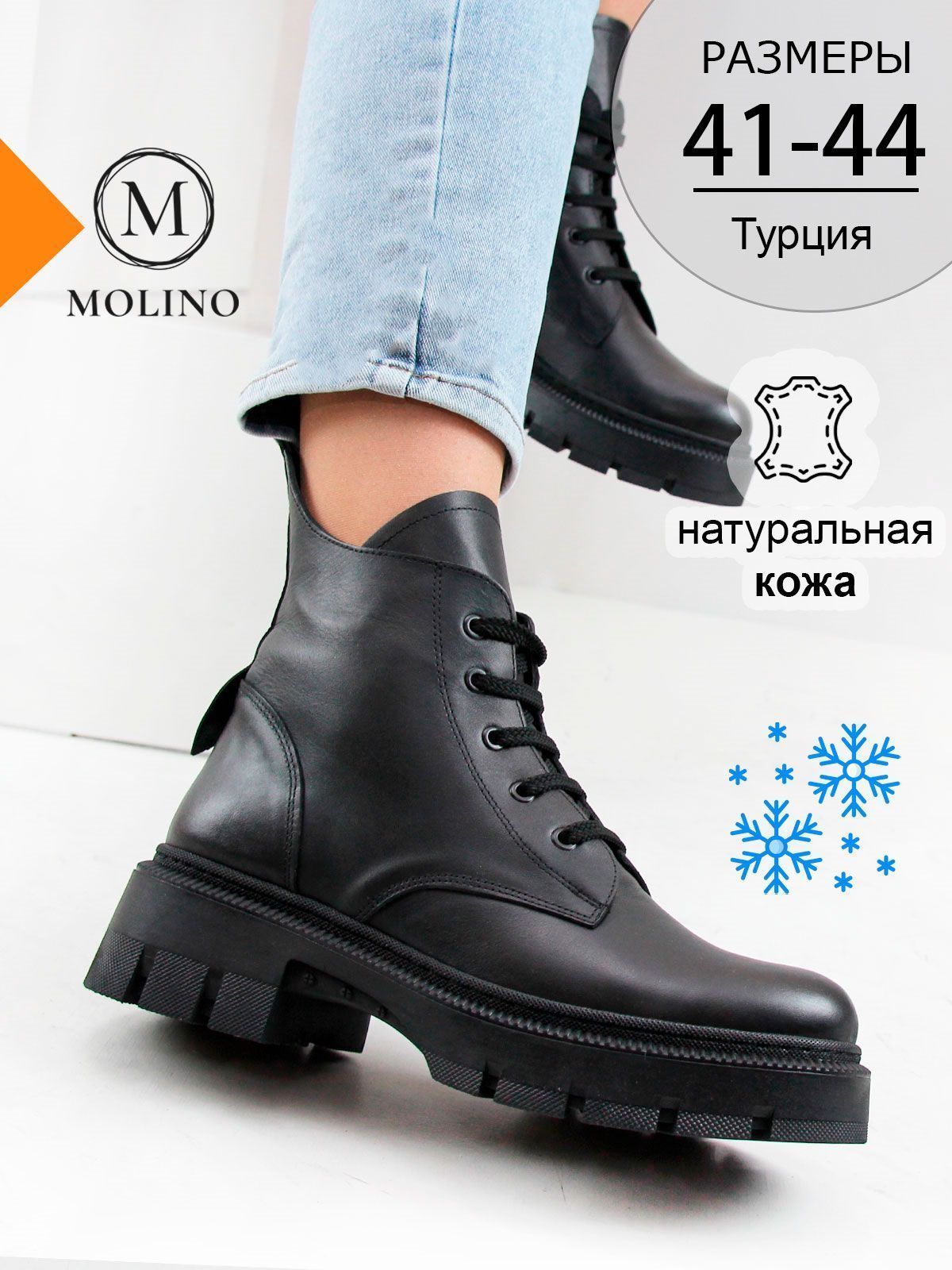 Идеальные универсальные женские ботинки больших размеров из натуральной матовой гладкой кожи классического черного цвета на платформе. Зимние ботинки на шнуровке утеплены натуральным мехои и выполнены на нескользкой