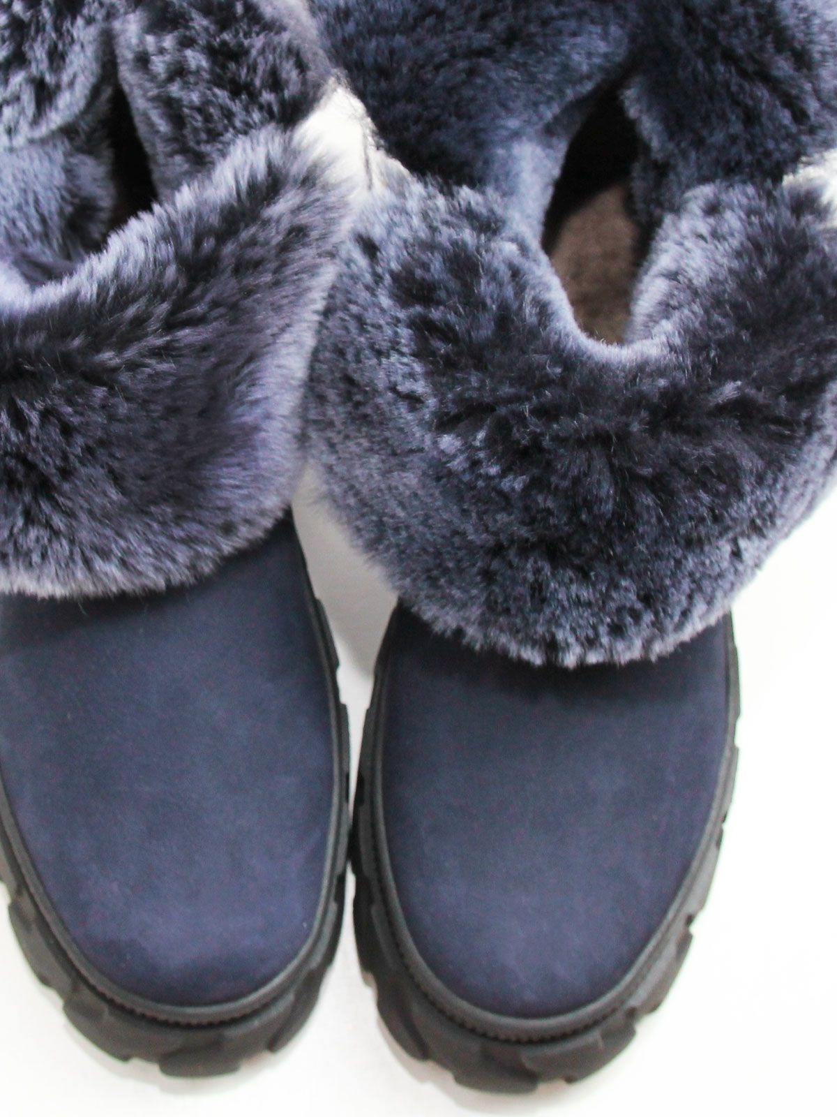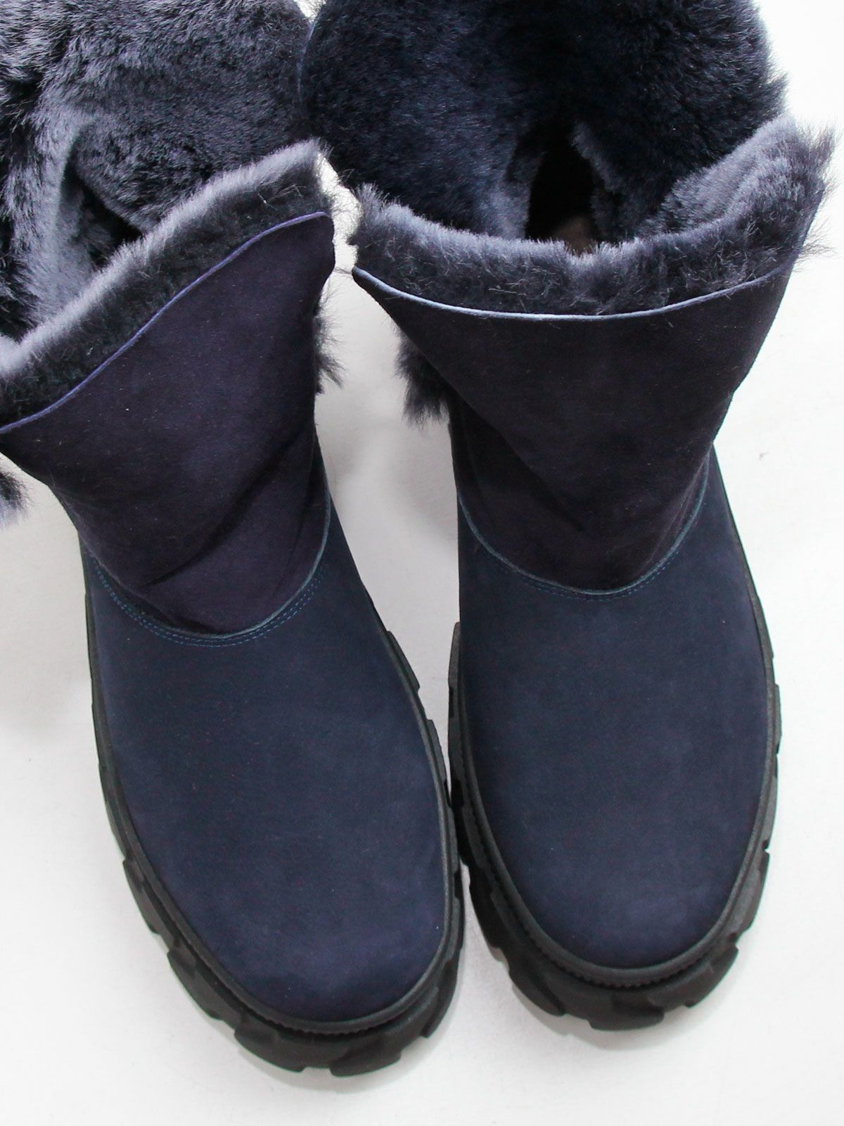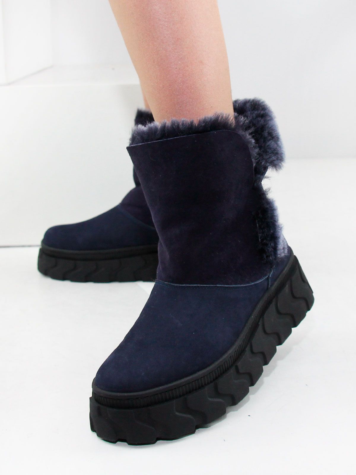 Зимние ботинки женские больших размеров синего цвета. Ботинки из натурального нубука с толстым натуральным мехом по всей высоте, очень теплые. Подошва из современного полимерного материала - прочная, морозоустойчивая и не скользит. Подойдут на стандартную полноту.
