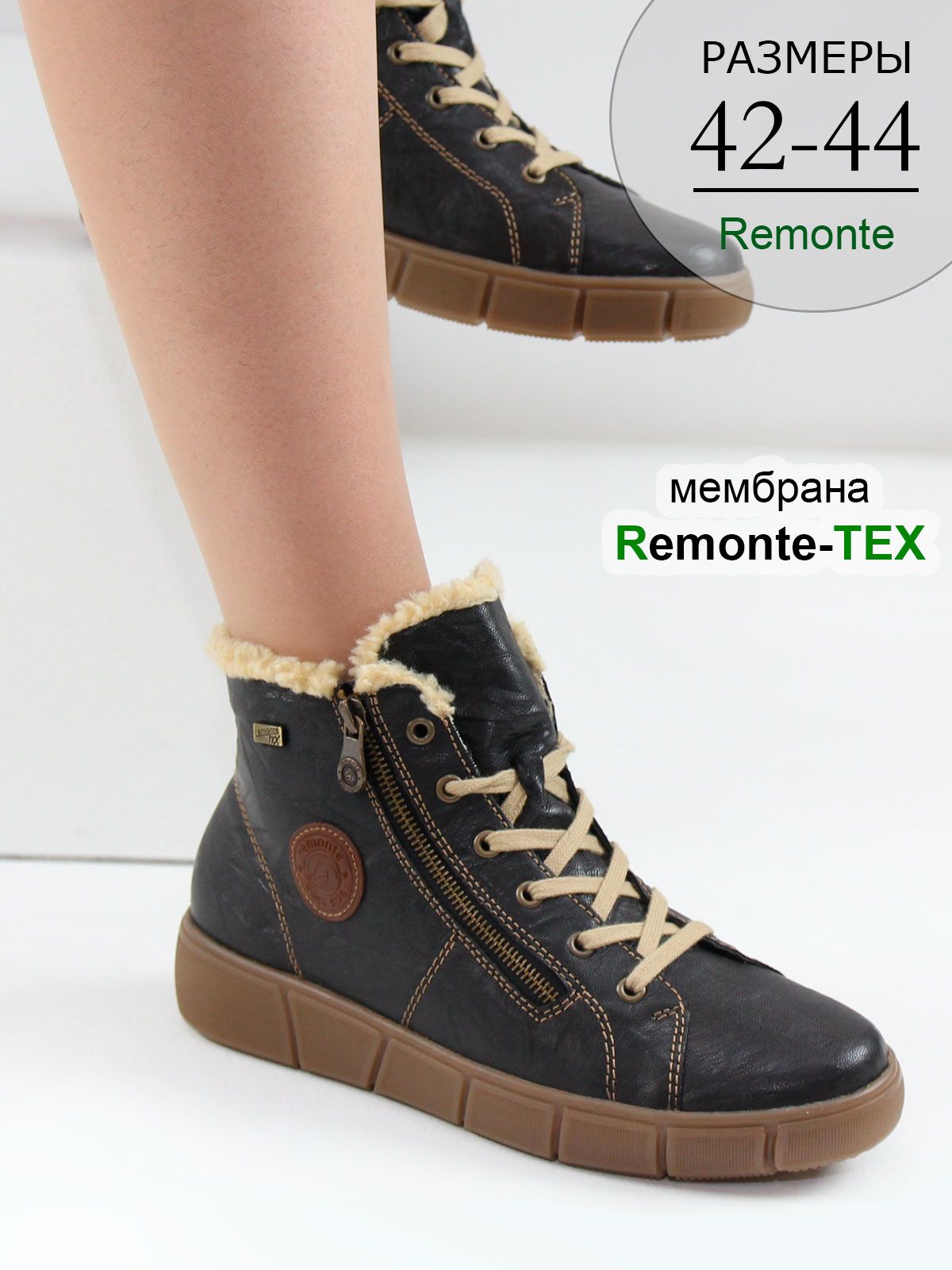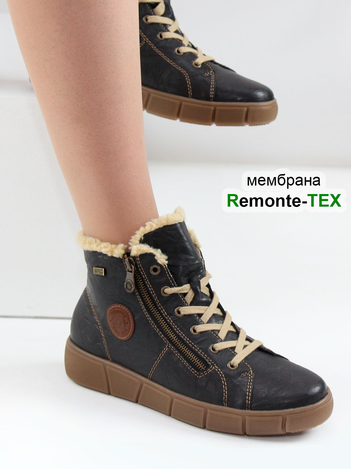 Мембрана Remonte-Tex представляет собой ультратонкий слой, расположенный между внешней и внутренней подкладкой обуви. Она обеспечивает обуви влагостойкость, защиту от ветра и воздухопроницаемость, поддерживая комфортный микроклимат для стоп в сырую и холодную погоду. Не является полностью водонепроницаемой, как, например, резиновые сапоги. Влага может проникнуть через молнии, пряжки и текстильные элементы.