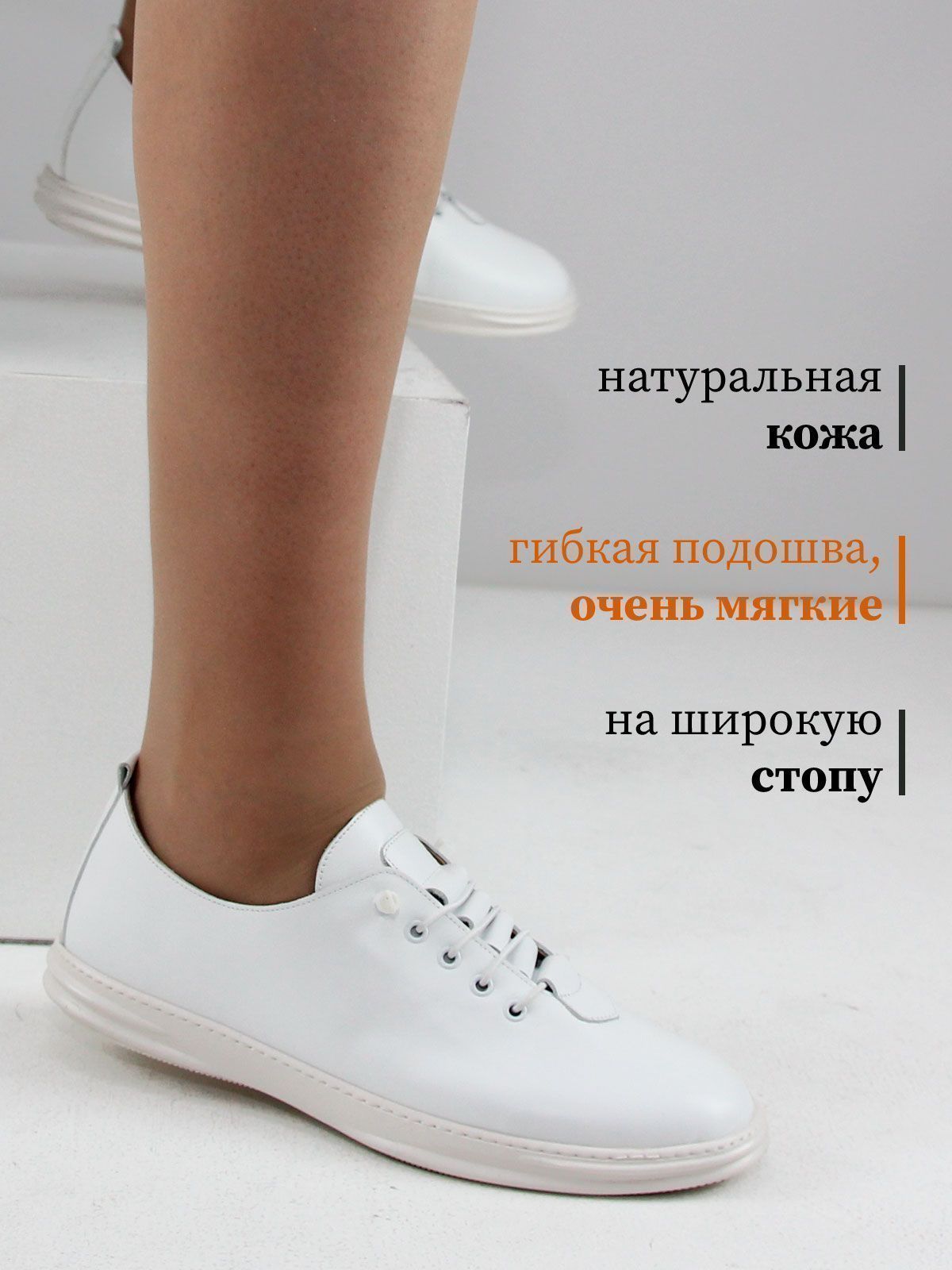 Белые кеды из натуральной кожи — отличный выбор для тех, кто ценит комфорт и универсальность. Благодаря мягкой коже и гибкой подошве, обувь дарит ощущение легкости при каждом шаге. Подойдут на широкую ногу. Эластичные шнурки позволяют удобно зафиксировать кеды по ноге без лишнего давления, что особенно важно для широкой стопы. Кеды больших размеров идеально подходят для повседневной носки в теплое время года, легко сочетаются с любым повседневным образом.