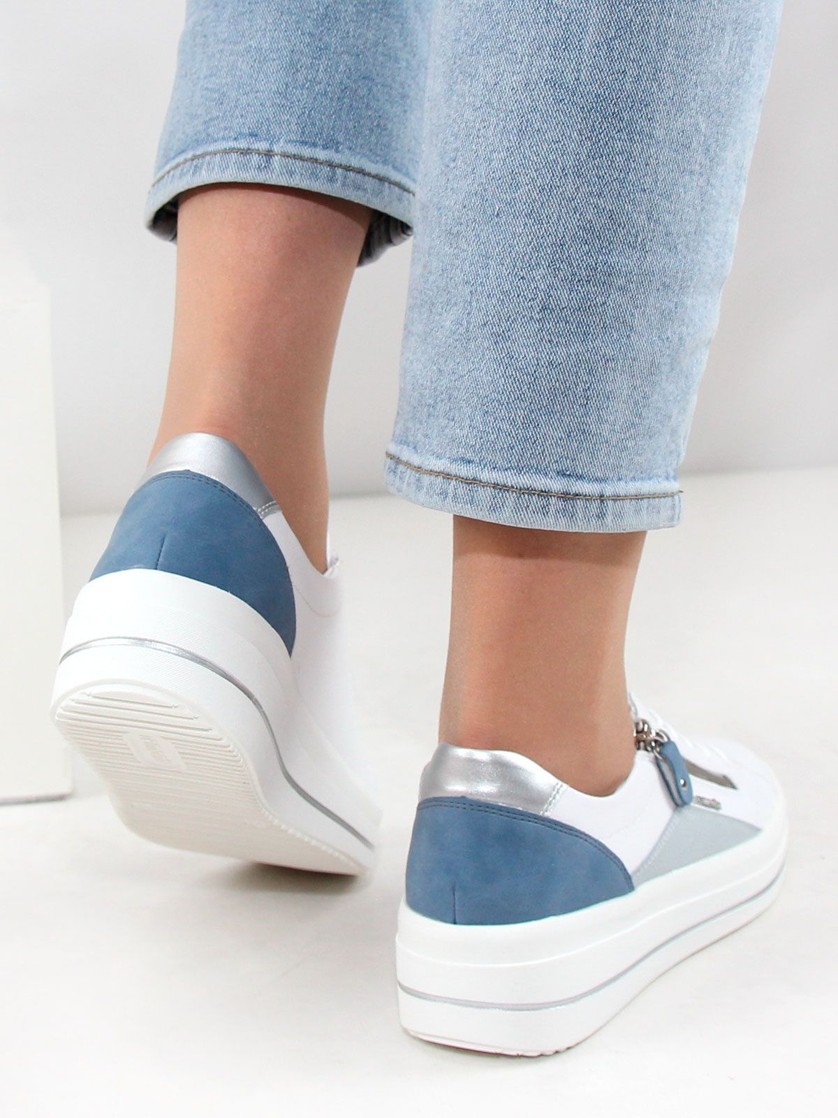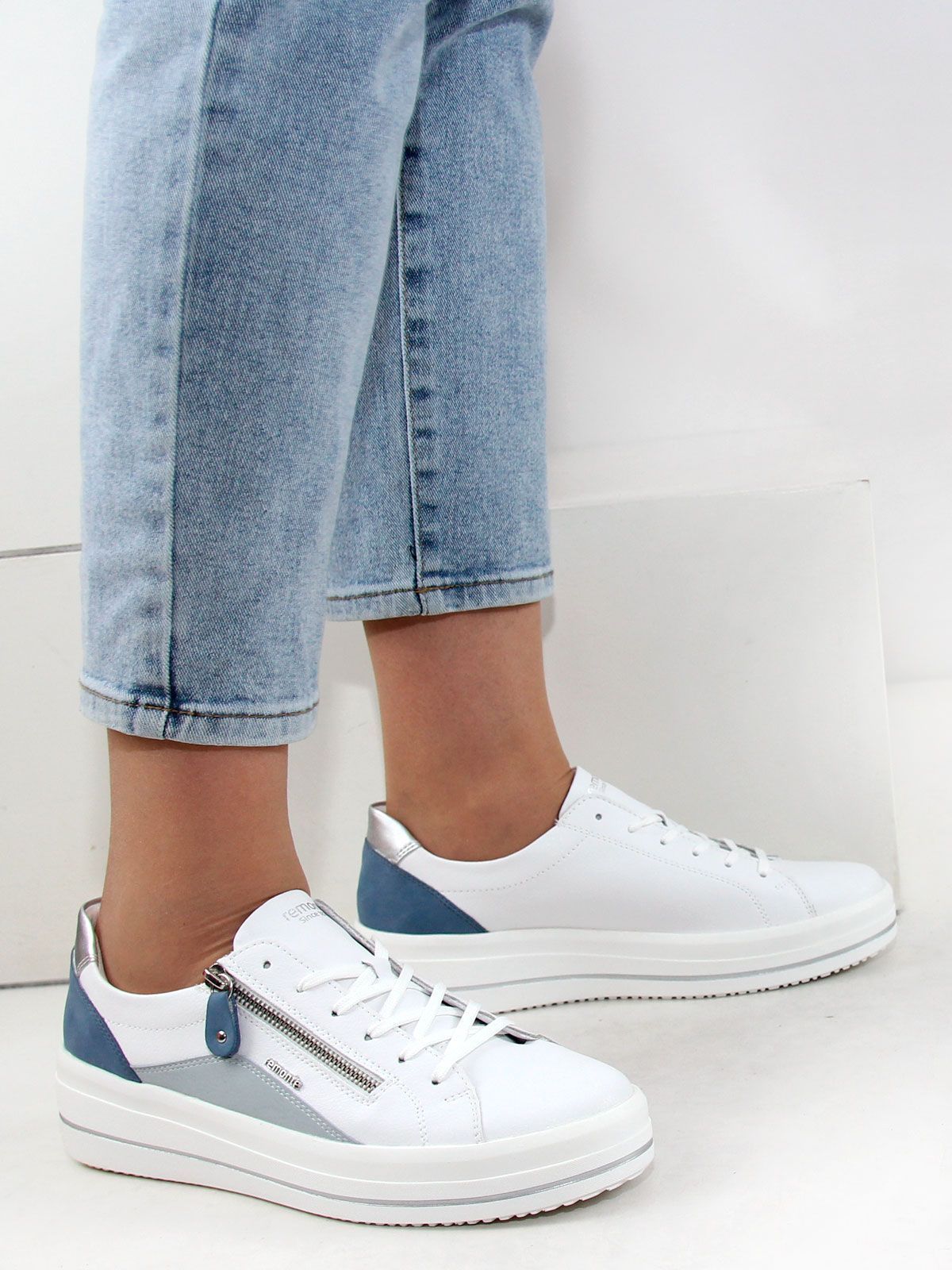 Женские кеды Remonte большого размера – это отличное сочетание стиля и комфорта. Изготовленные из качественных материалов, они обеспечивают мягкость и поддержку ног благодаря амортизирующей стельке. Белый цвет с нежной голубой отделкой придаёт обуви свежий и современные вид, а белая подошва добавляет лёгкости образу. Шнуровка в сочетании с молнией делает процесс надевания быстрым и удобным, что особенно важно в повседневной жизни. Эти кеды подойдут как для прогулок, так и для активного отдыха.