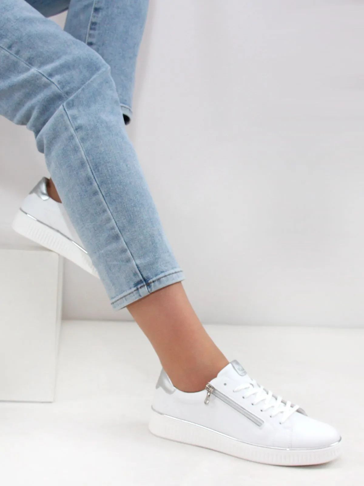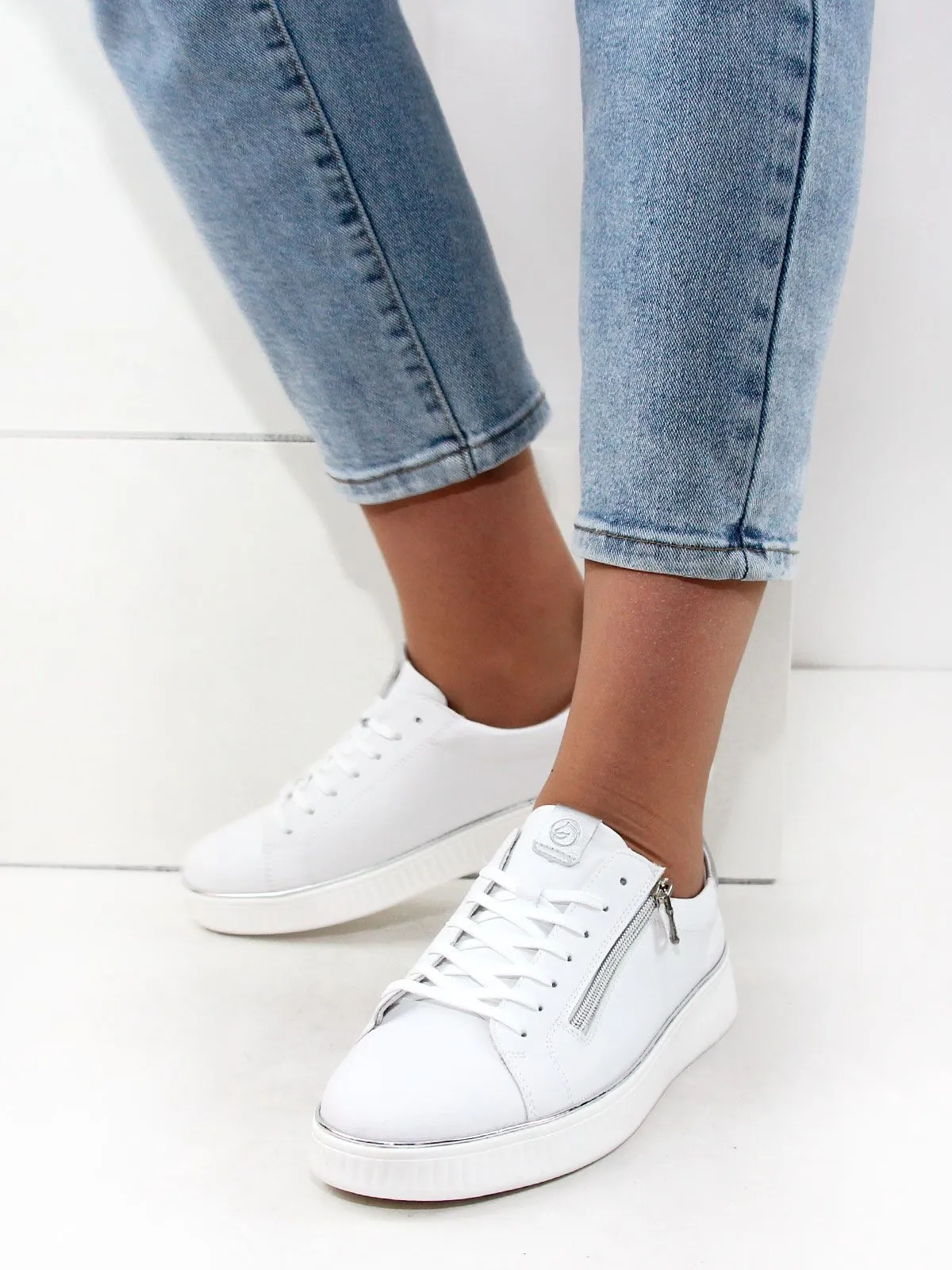 Модель выполнена в белом цвете, который всегда выглядит стильно и элегантно. Белая подошва придаёт кедам лёгкость и изящность. Шнуровка и молния обеспечивают удобство при надевании и снятии обуви.