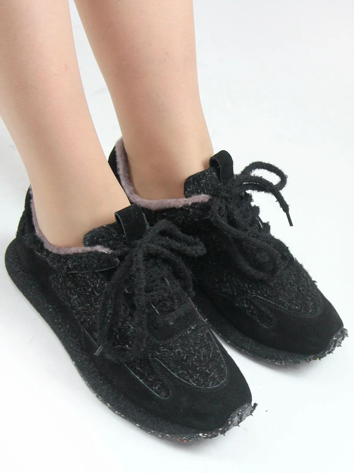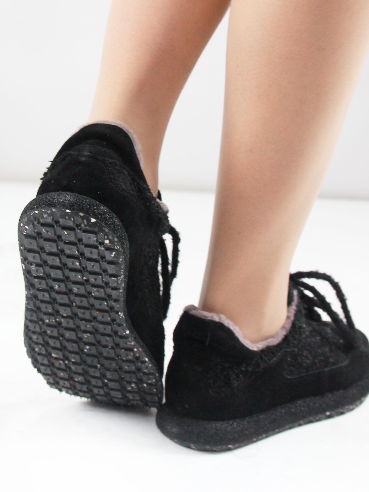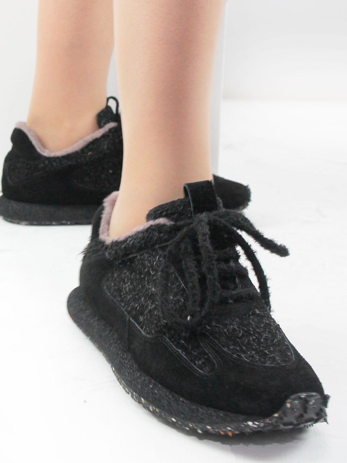 Женские зимние кроссовки больших размеров из натуральной замши с интересным, нестандартным дизайном. Модель выглядит оригинально за счёт формы и аккуратных деталей, при этом остаётся удобной и универсальной для повседневной носки.