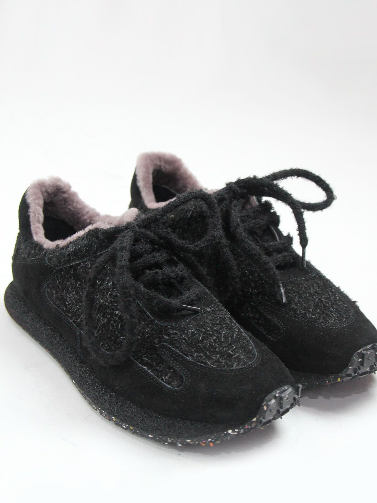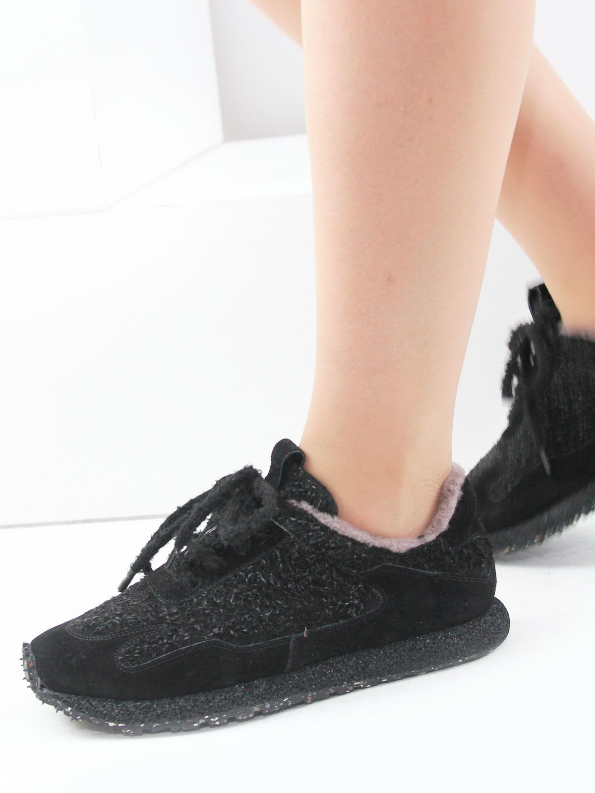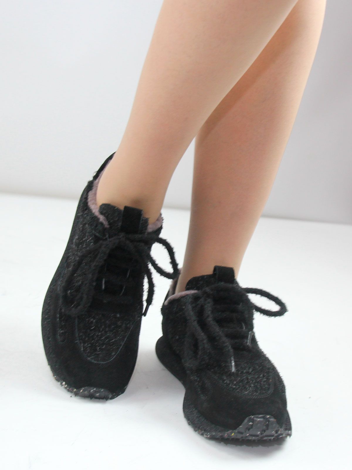 Женские зимние кроссовки больших размеров из натуральной замши с интересным, нестандартным дизайном. Модель выглядит оригинально за счёт формы и аккуратных деталей, при этом остаётся удобной и универсальной для повседневной носки.