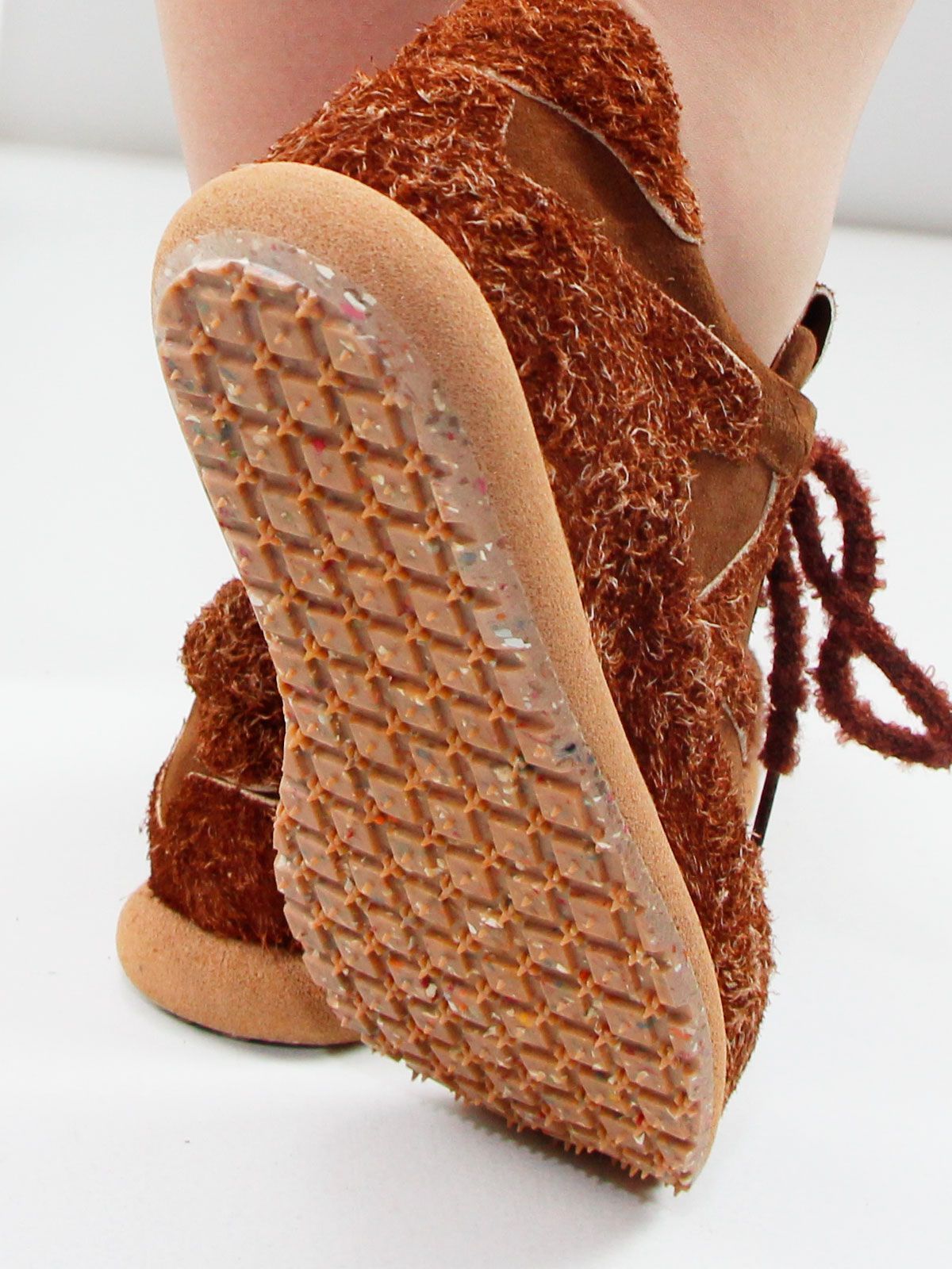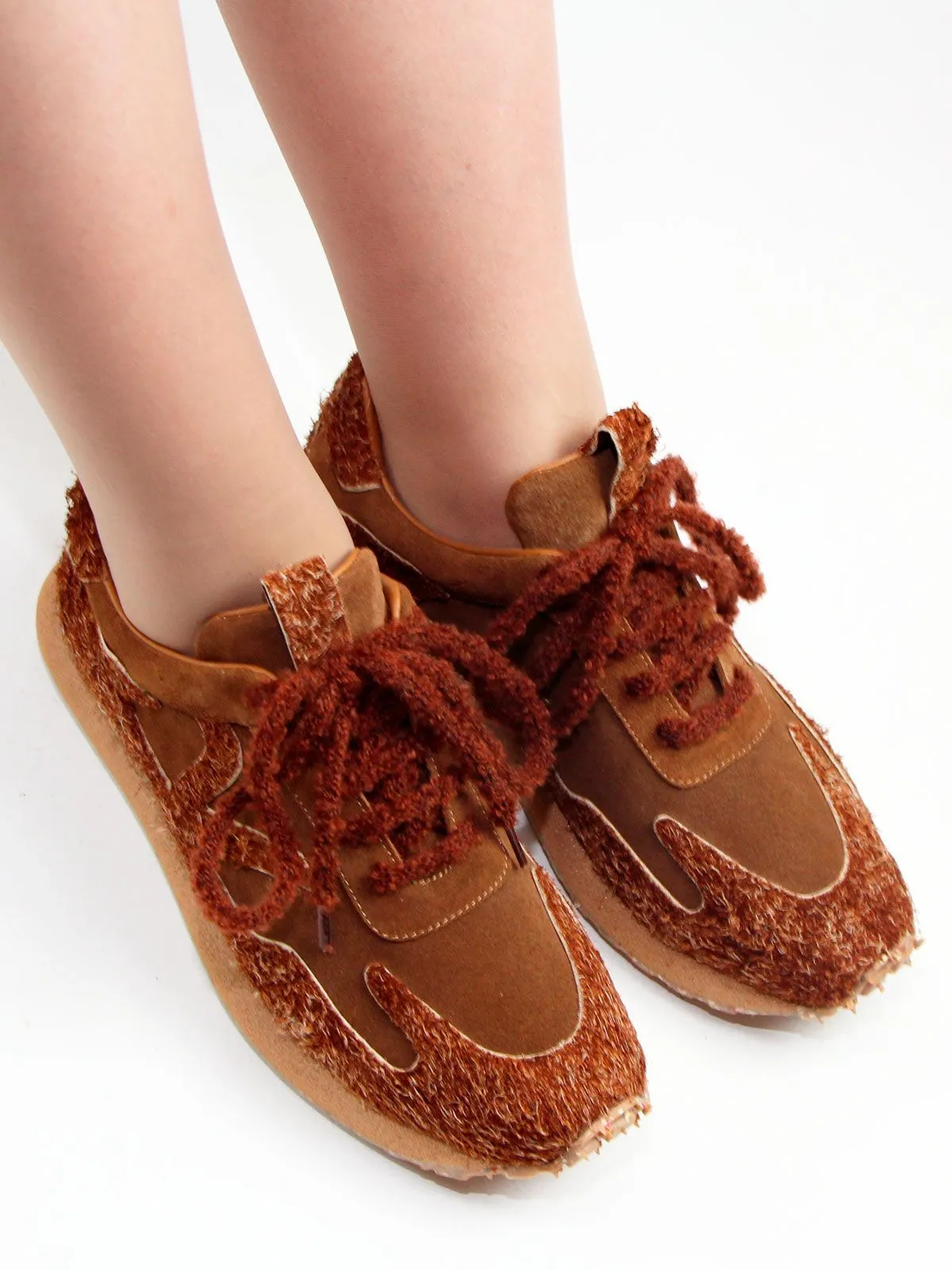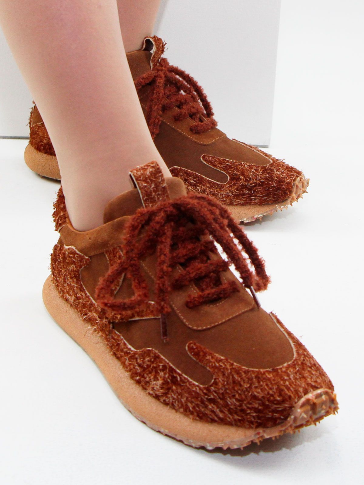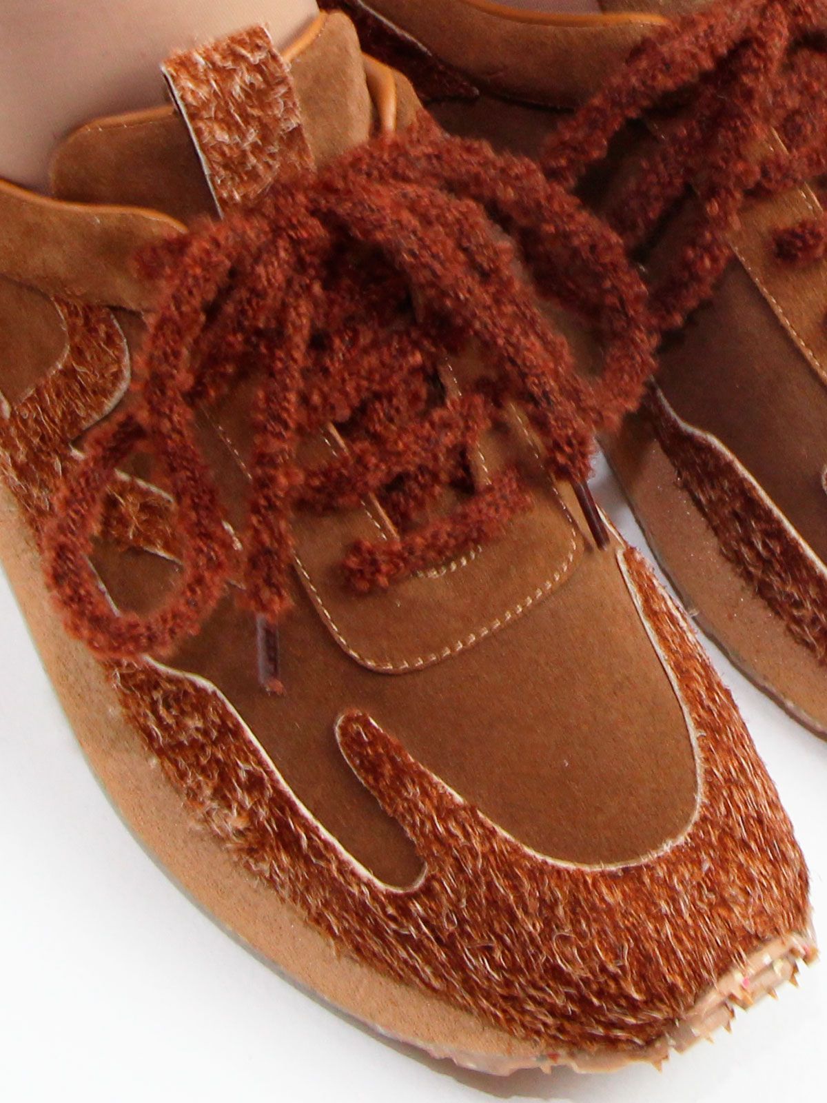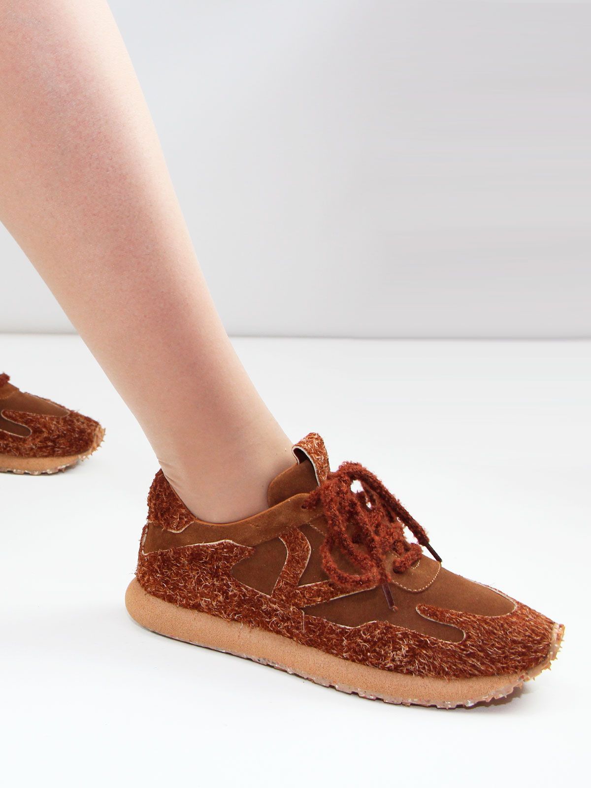 Женские коричневые демисезонные кроссовки больших размеров из натуральной замши с интересным, нестандартным дизайном. Модель выглядит оригинально за счёт формы и аккуратных деталей, при этом остаётся удобной и универсальной для повседневной носки.
