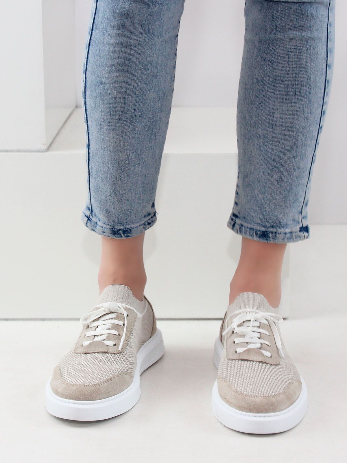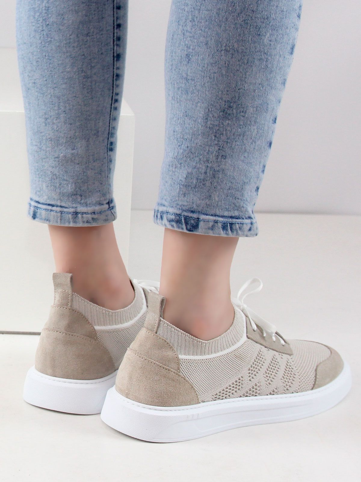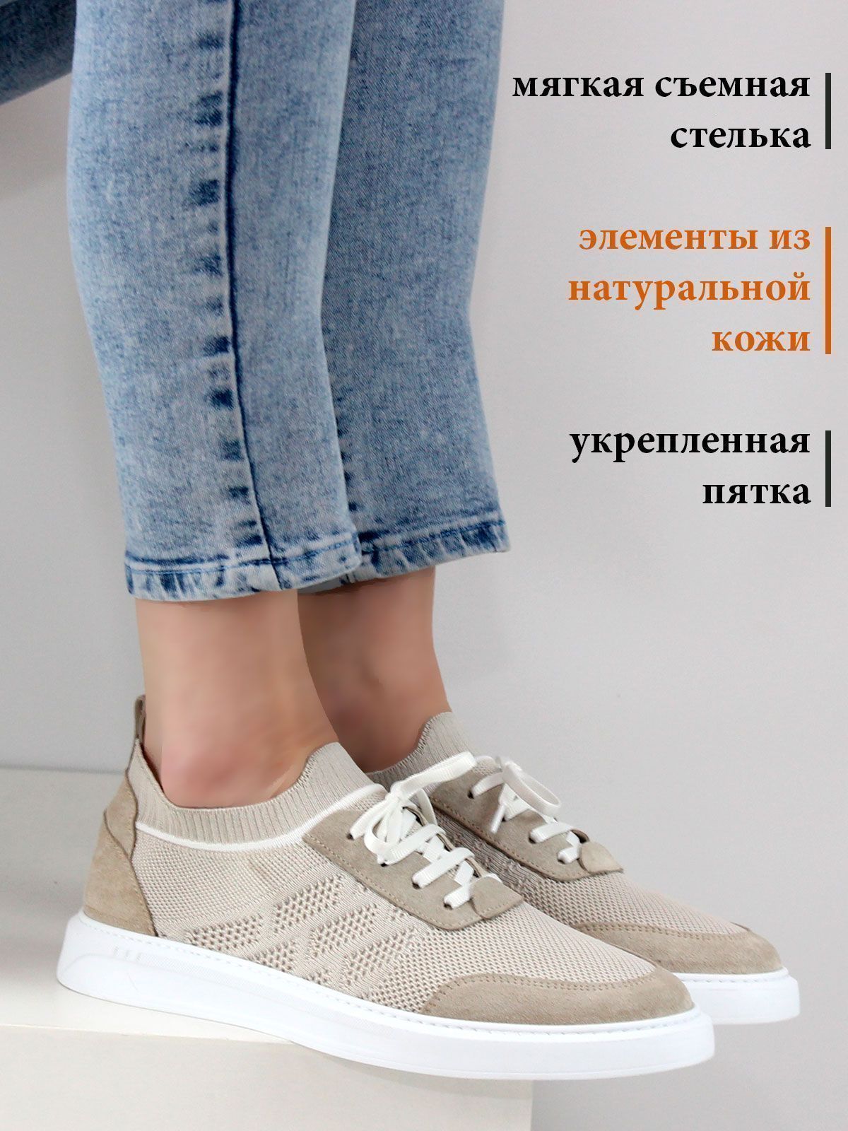 Кроссовки из текстиля со вставками из натуральной замши на широкую ногу, большемерят на размер.