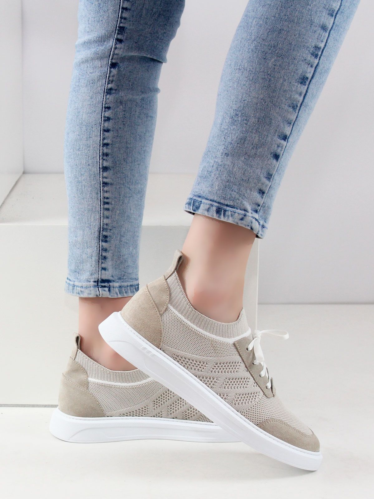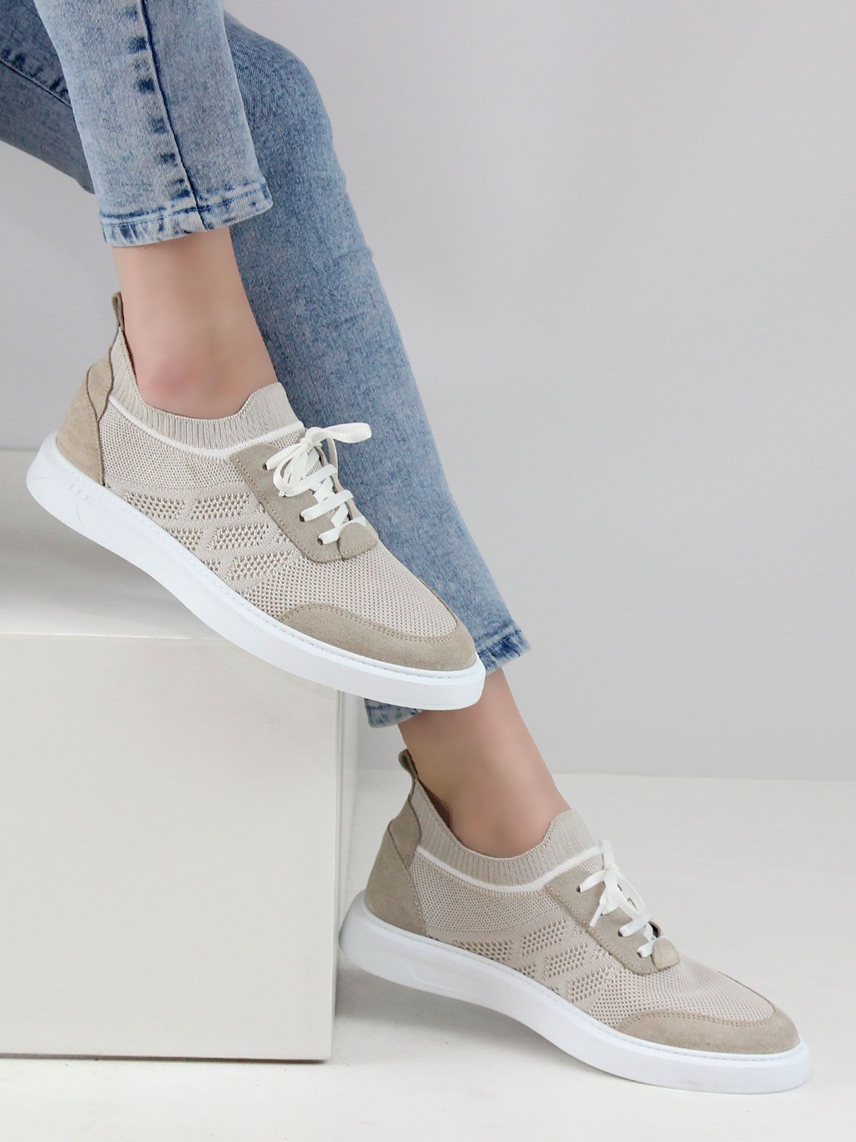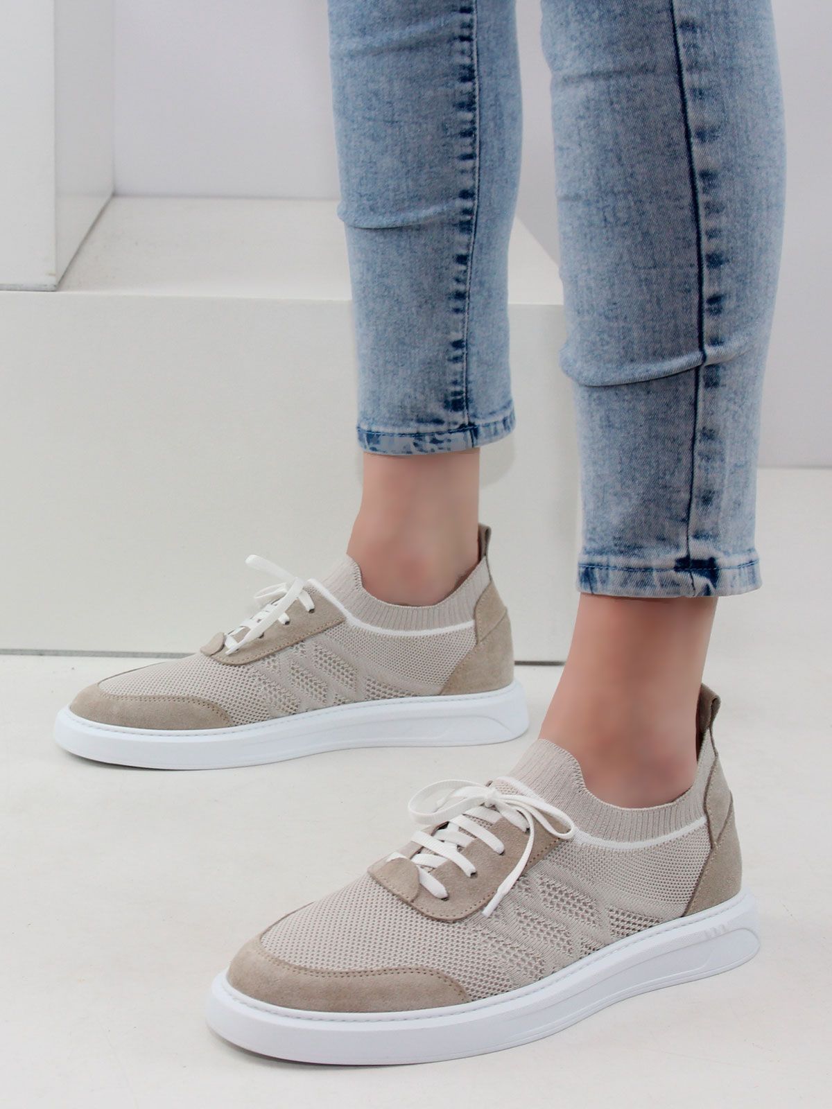 Кроссовки из текстиля со вставками из натуральной замши на широкую ногу, большемерят на размер.