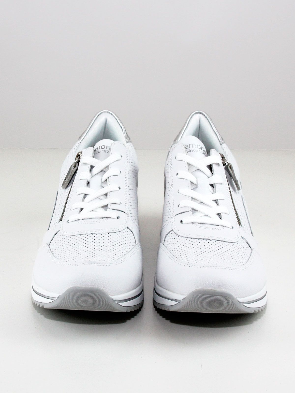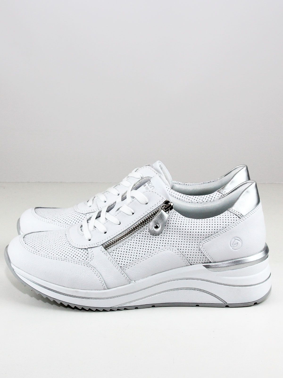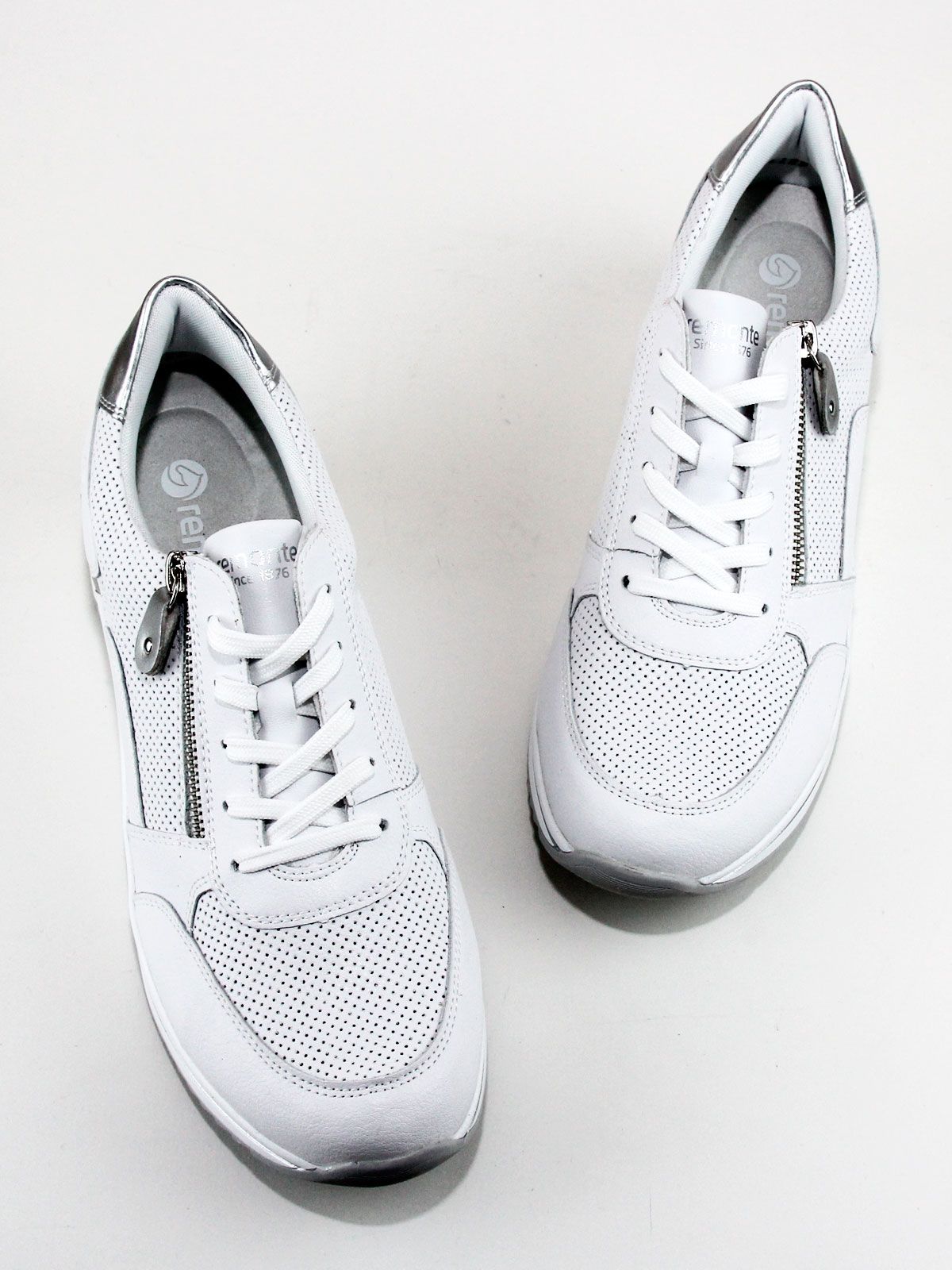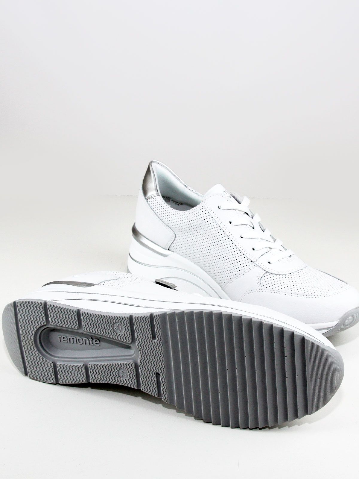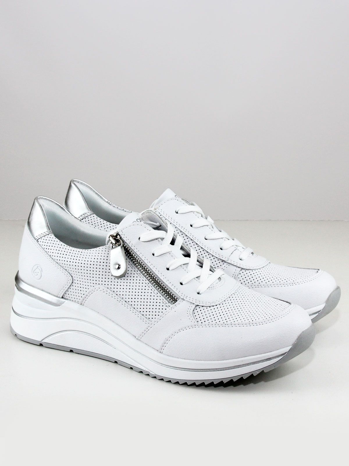 Кроссовки выполнены в белом цвете, что делает их универсальными и подходящими к любому образу. Белая подошва придаёт обуви элегантный вид и обеспечивает хорошее сцепление с поверхностью. Лёгкая серебристая отделка добавляет кроссовкам изысканности и шарма.