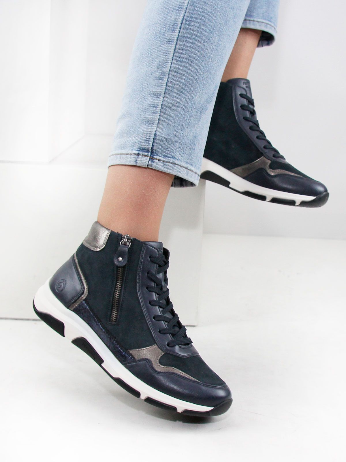 Демисезонные кроссовки на нескользкой подошве разработаны с учетом последних модных трендов. Модель адаптирована к интенсивной носке каждый день. Обувь Remonte отлично сидит, благодаря продуманной конструкции, и снижает тем самым нагрузку на ноги, что особенно заметно, если вы весь день активно двигаетесь. Съемная мягкая стелька.
