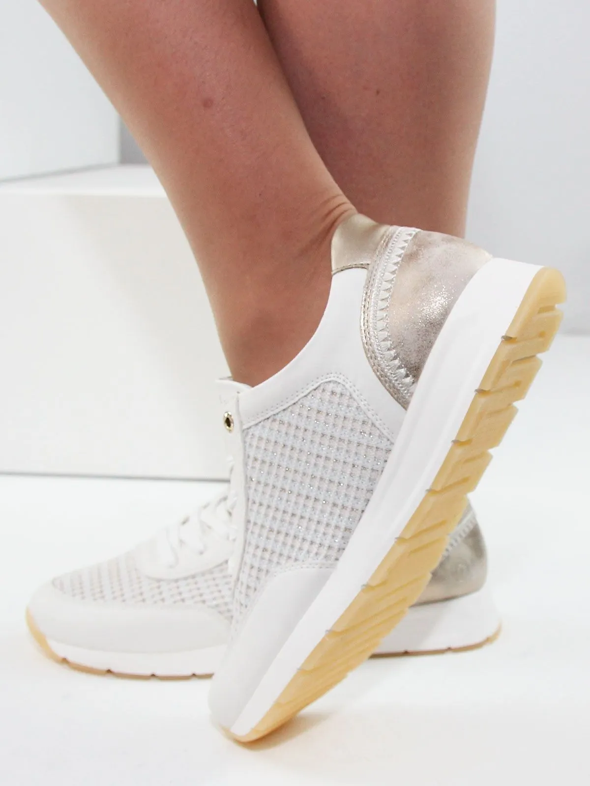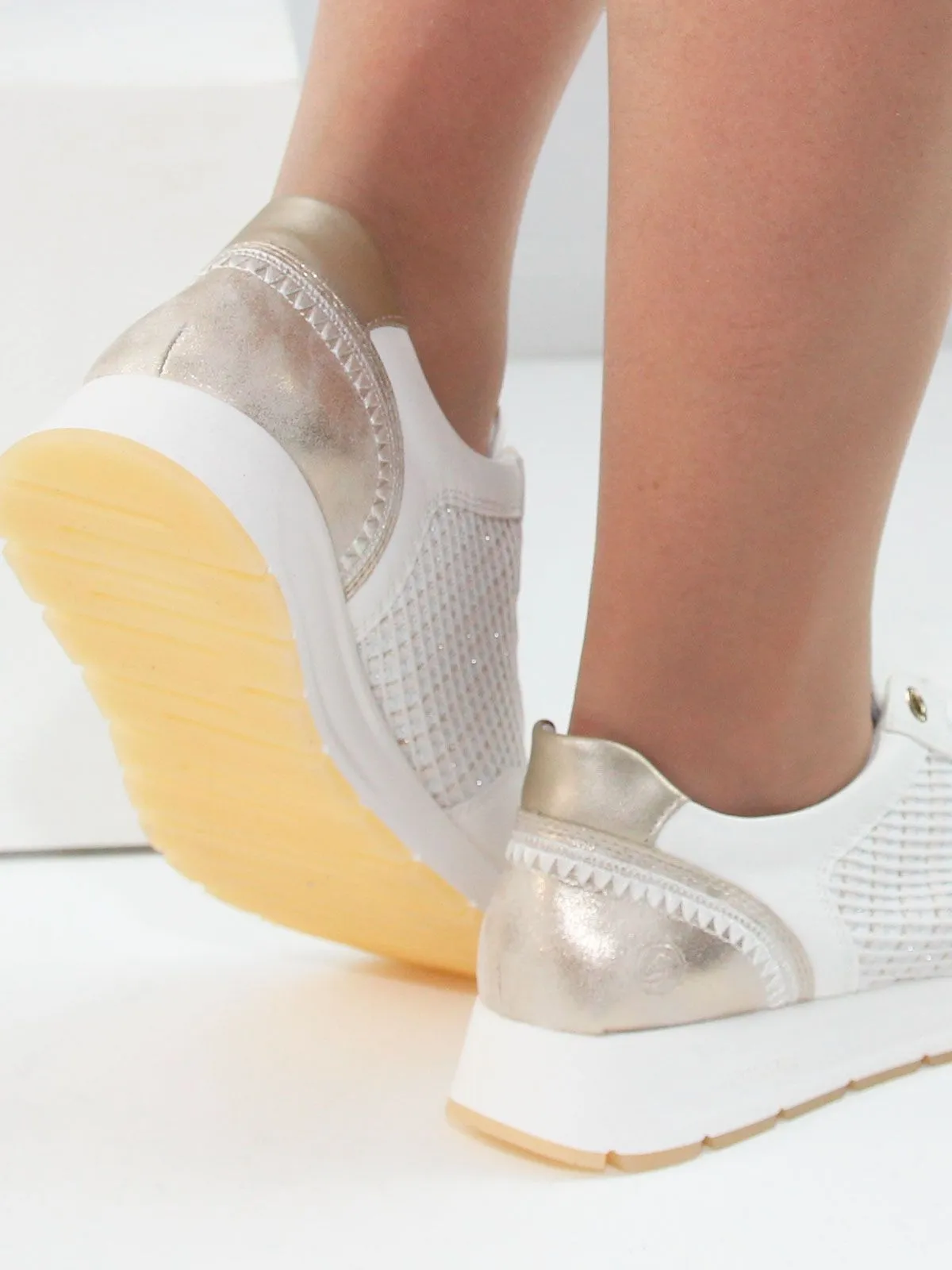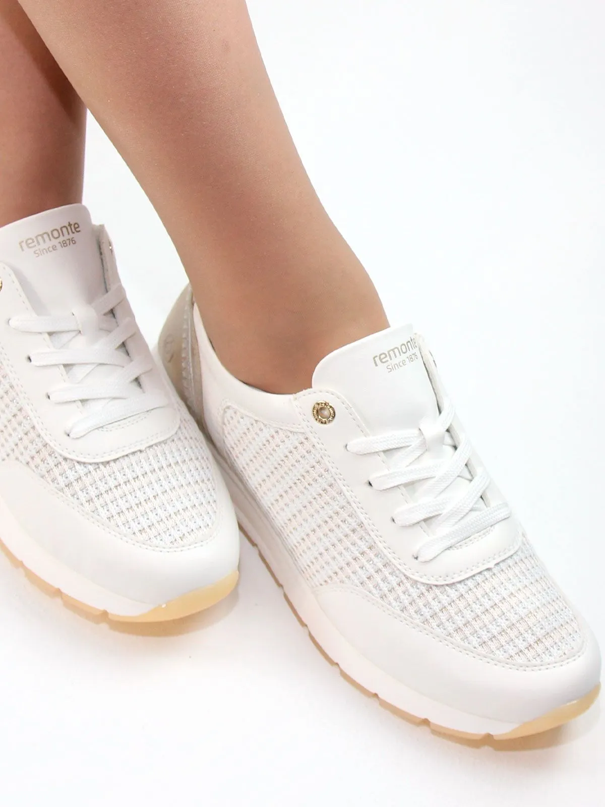Стильные женские кроссовки большого размера в светлом оттенке — универсальная модель на каждый день. Верх выполнен с текстильными вставками, которые обеспечивают хорошую вентиляцию и комфорт при носке, а также придают обуви лёгкость и современный внешний вид.