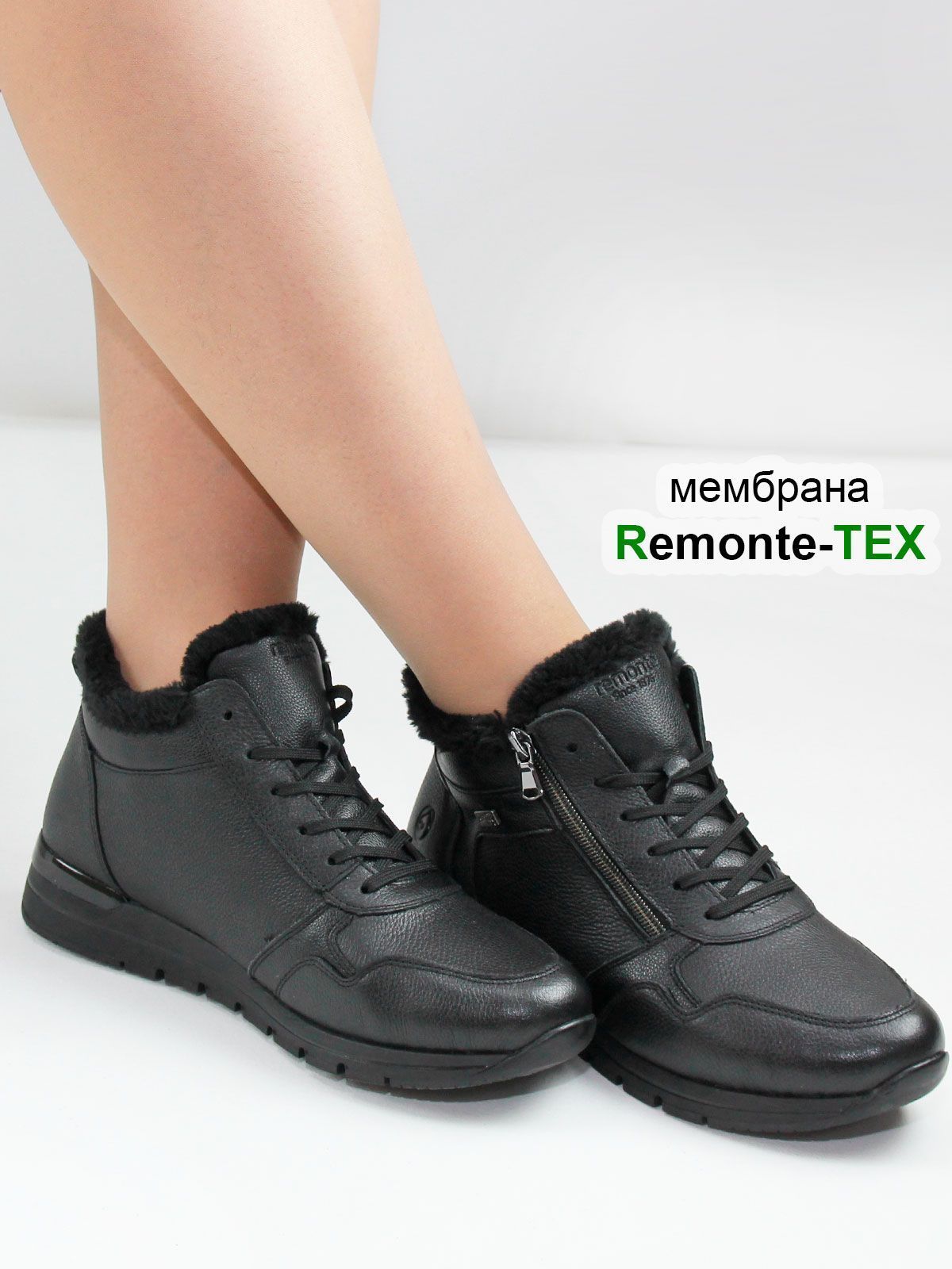 Мембрана Remonte-Tex представляет собой ультратонкий слой, расположенный между внешней и внутренней подкладкой обуви. Она обеспечивает обуви влагостойкость, защиту от ветра и воздухопроницаемость, поддерживая комфортный микроклимат для стоп в сырую и холодную погоду. Не является полностью водонепроницаемой, как, например, резиновые сапоги. Влага может проникнуть через молнии, пряжки и текстильные элементы.