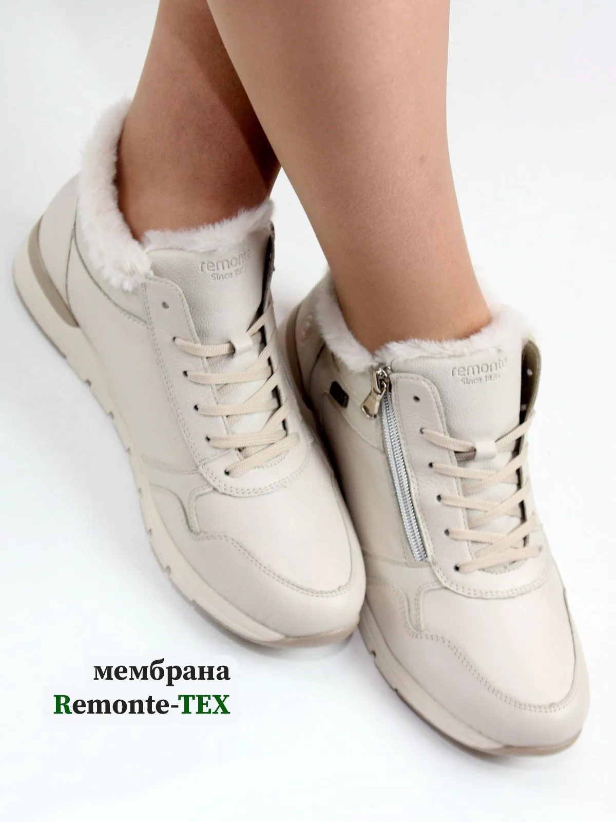 Мембрана Remonte-Tex представляет собой ультратонкий слой, расположенный между внешней и внутренней подкладкой обуви. Она обеспечивает обуви влагостойкость, защиту от ветра и воздухопроницаемость, поддерживая комфортный микроклимат для стоп в сырую и холодную погоду. Не является полностью водонепроницаемой, как, например, резиновые сапоги. Влага может проникнуть через молнии, пряжки и текстильные элементы.