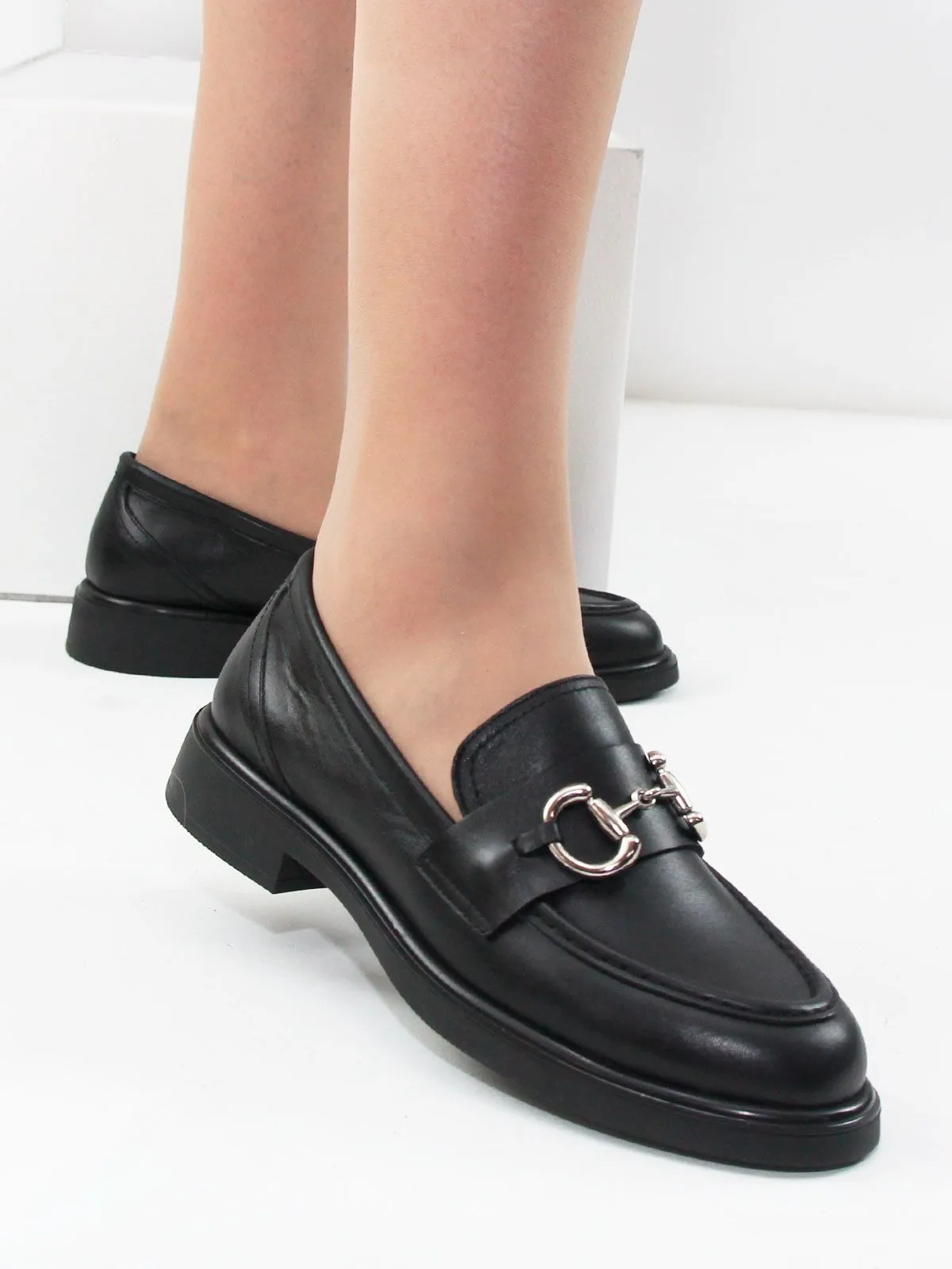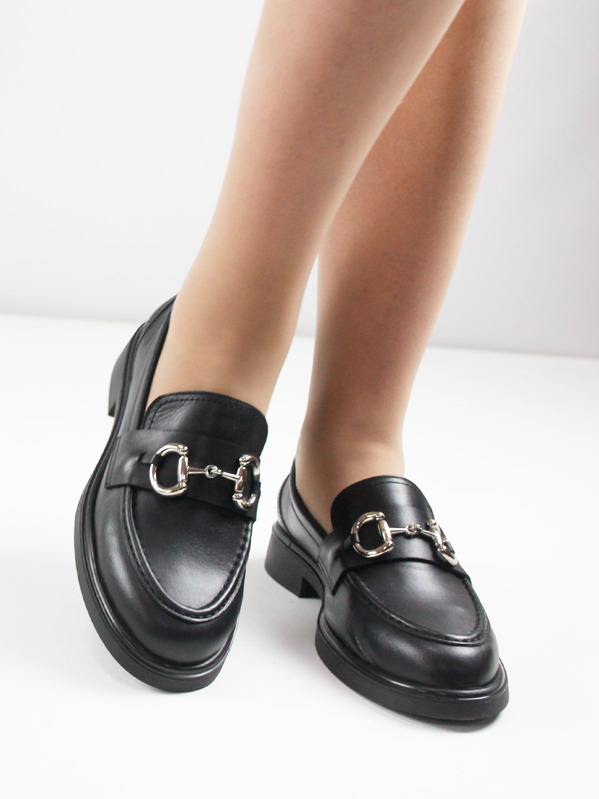 Стильные и очень удобные женские лоферы большого размера из натуральной кожи — универсальная модель для повседневного гардероба. Лоферы выполнены из мягкой натуральной кожи чёрного цвета, которая выглядит аккуратно, элегантно и легко сочетается с разными образами.