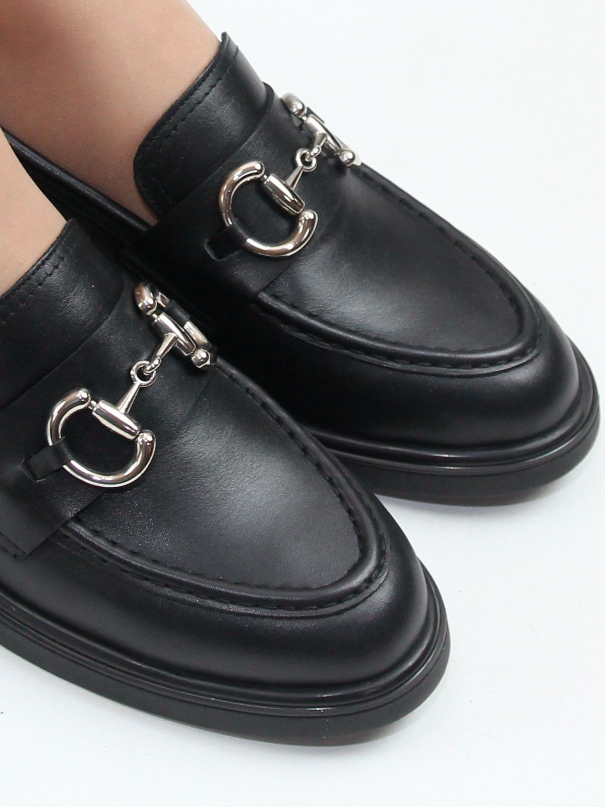 Классический силуэт дополнен аккуратной металлической пряжкой, придающей модели современный и выразительный вид. Лёгкая и удобная подошва обеспечивает комфорт при ходьбе и делает эту модель отличным вариантом для ежедневной носки.