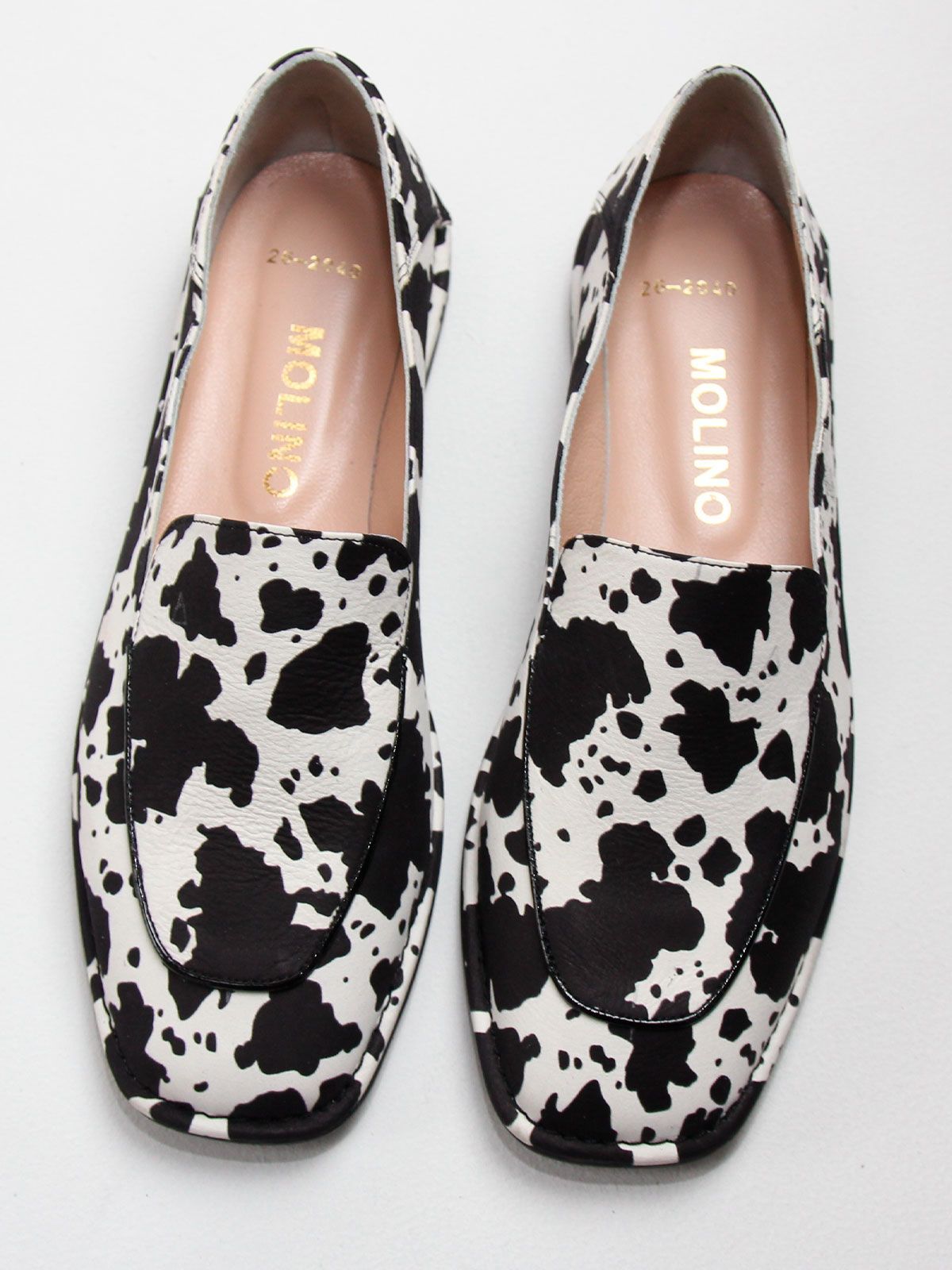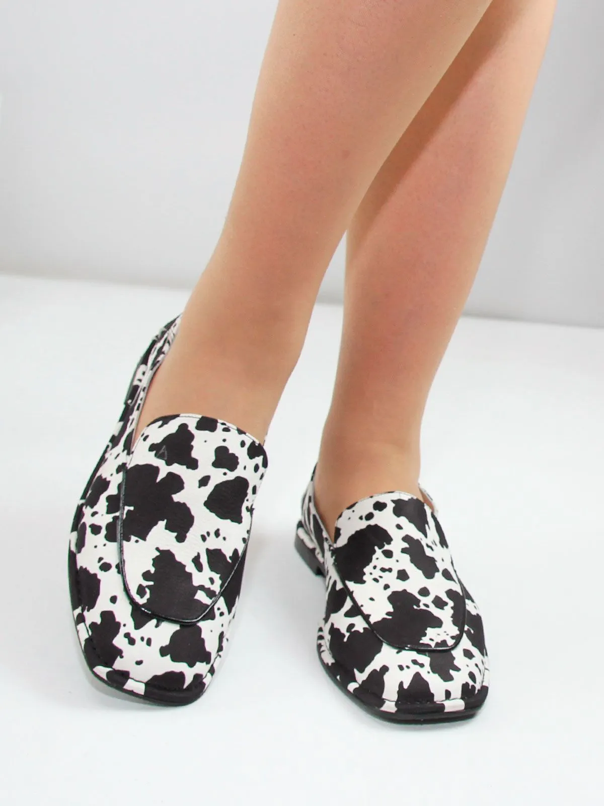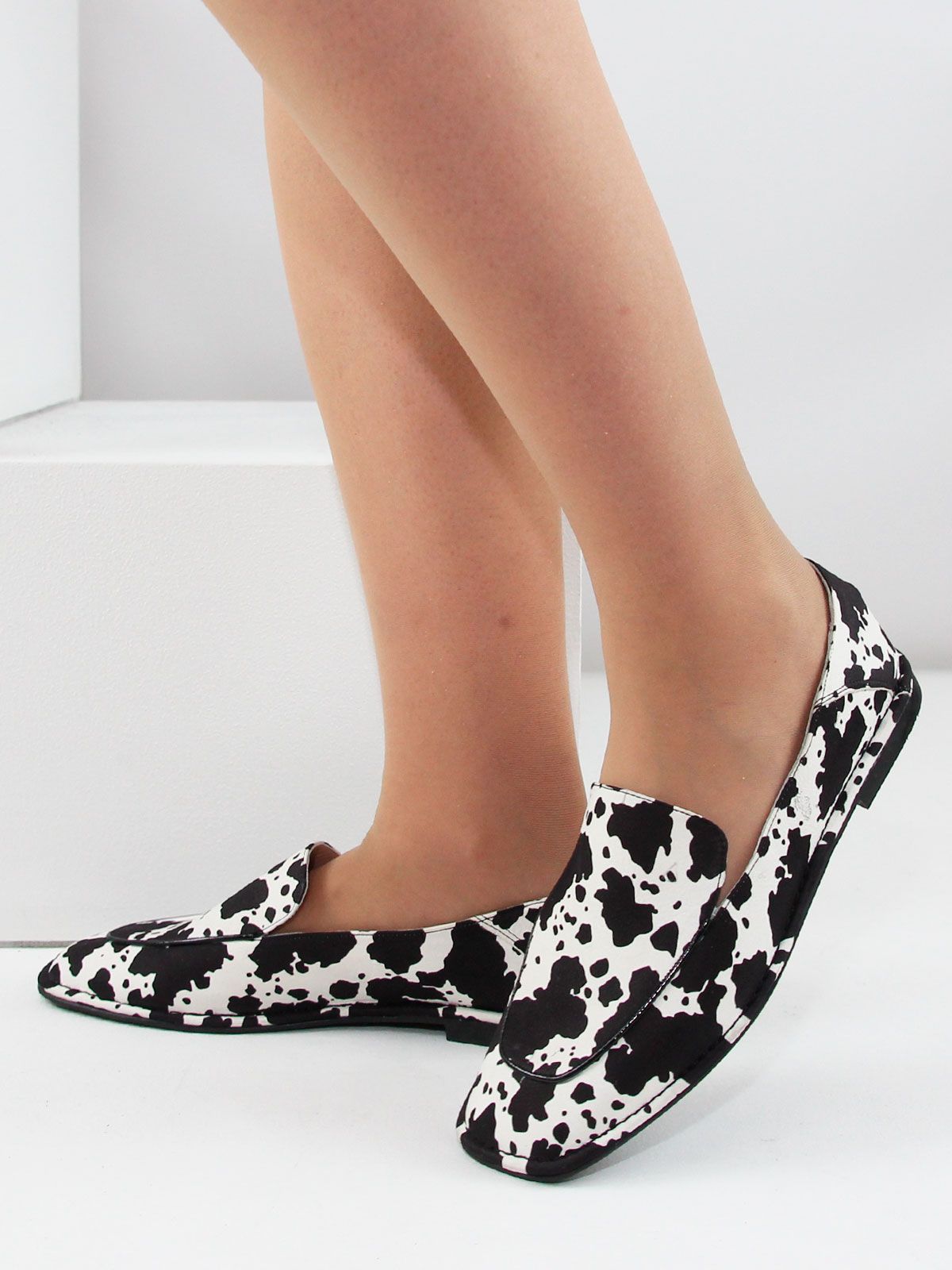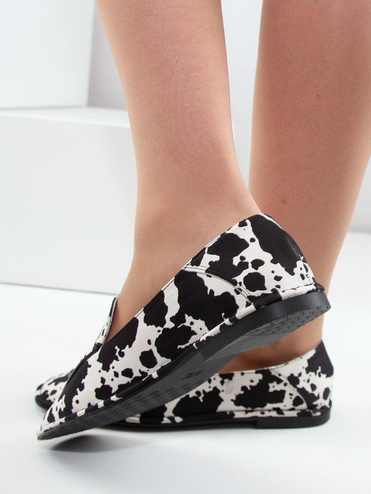 Стильные женские лоферы большого размера из натуральной кожи с эффектным коровьим принтом — яркая и модная модель для современного гардероба. Контрастный чёрно-белый принт выглядит очень актуально и является одним из заметных трендов последних сезонов, позволяя легко создать стильный и выразительный образ.