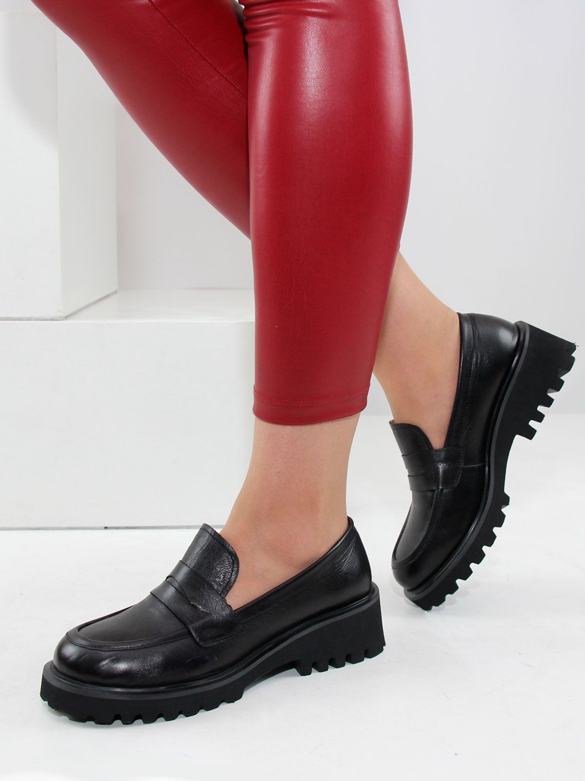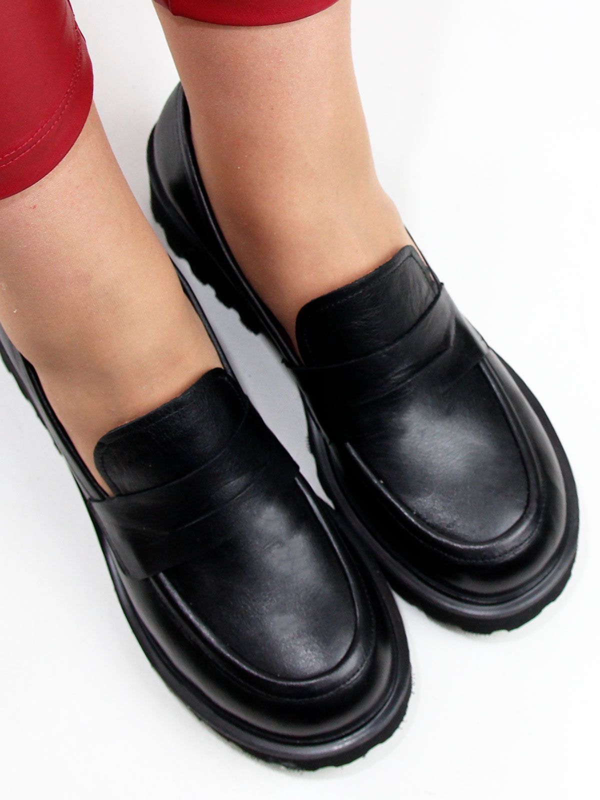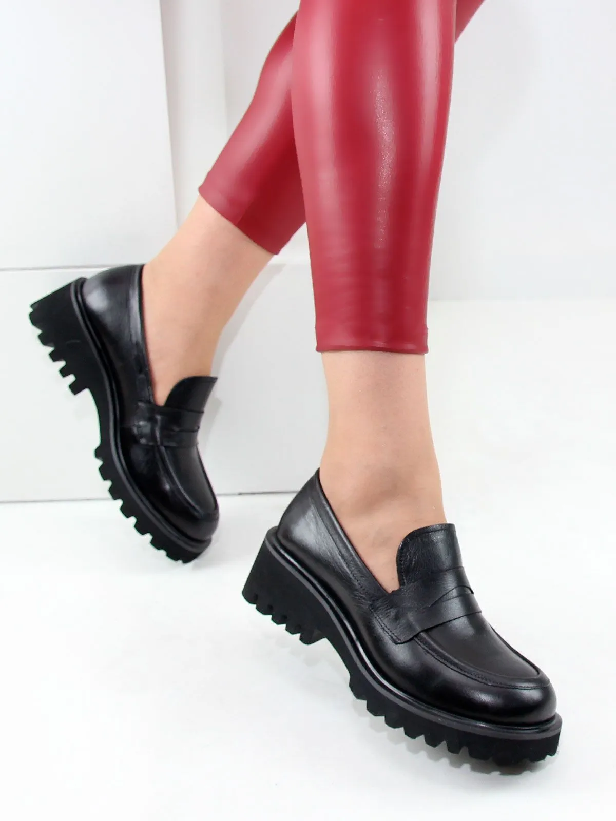 Лоферы женские большого размера, на платформе. Модель выполнена из натуральной черной матовой кожи без декоративных элементов. Подкладка - натуральная кожа, мягкая и комфортная стелька. Производство - Турция.