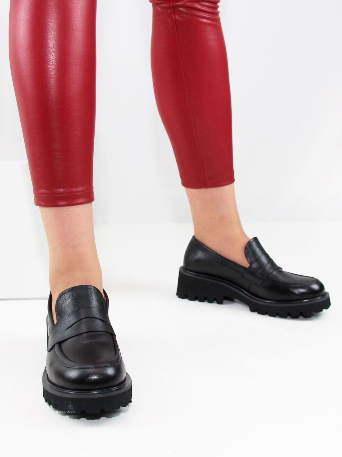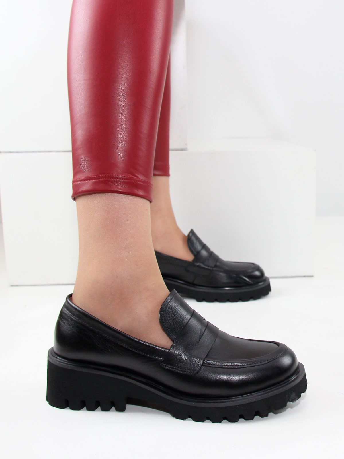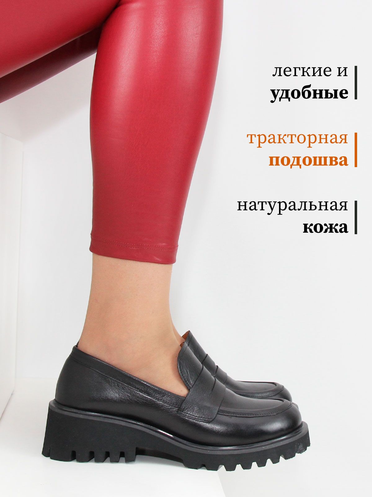 Лоферы женские большого размера, на платформе. Модель выполнена из натуральной черной матовой кожи без декоративных элементов. Подкладка - натуральная кожа, мягкая и комфортная стелька. Производство - Турция.