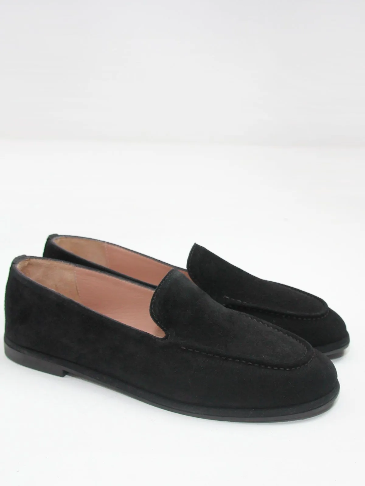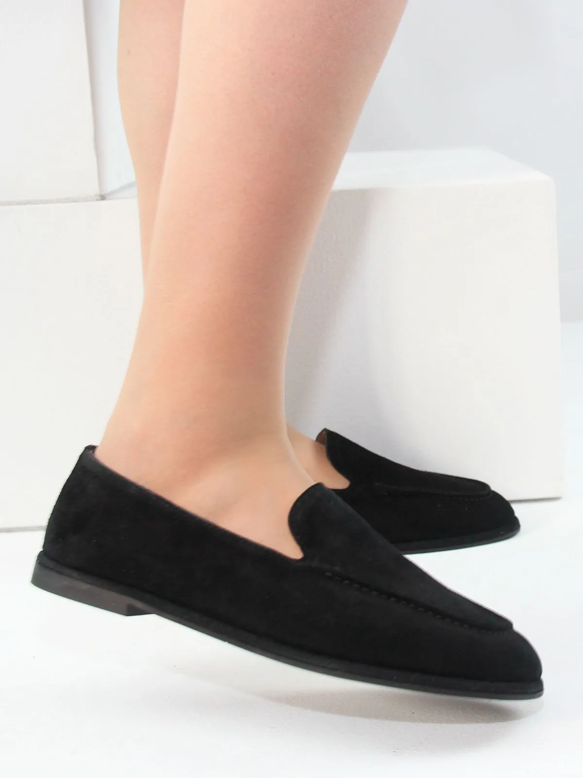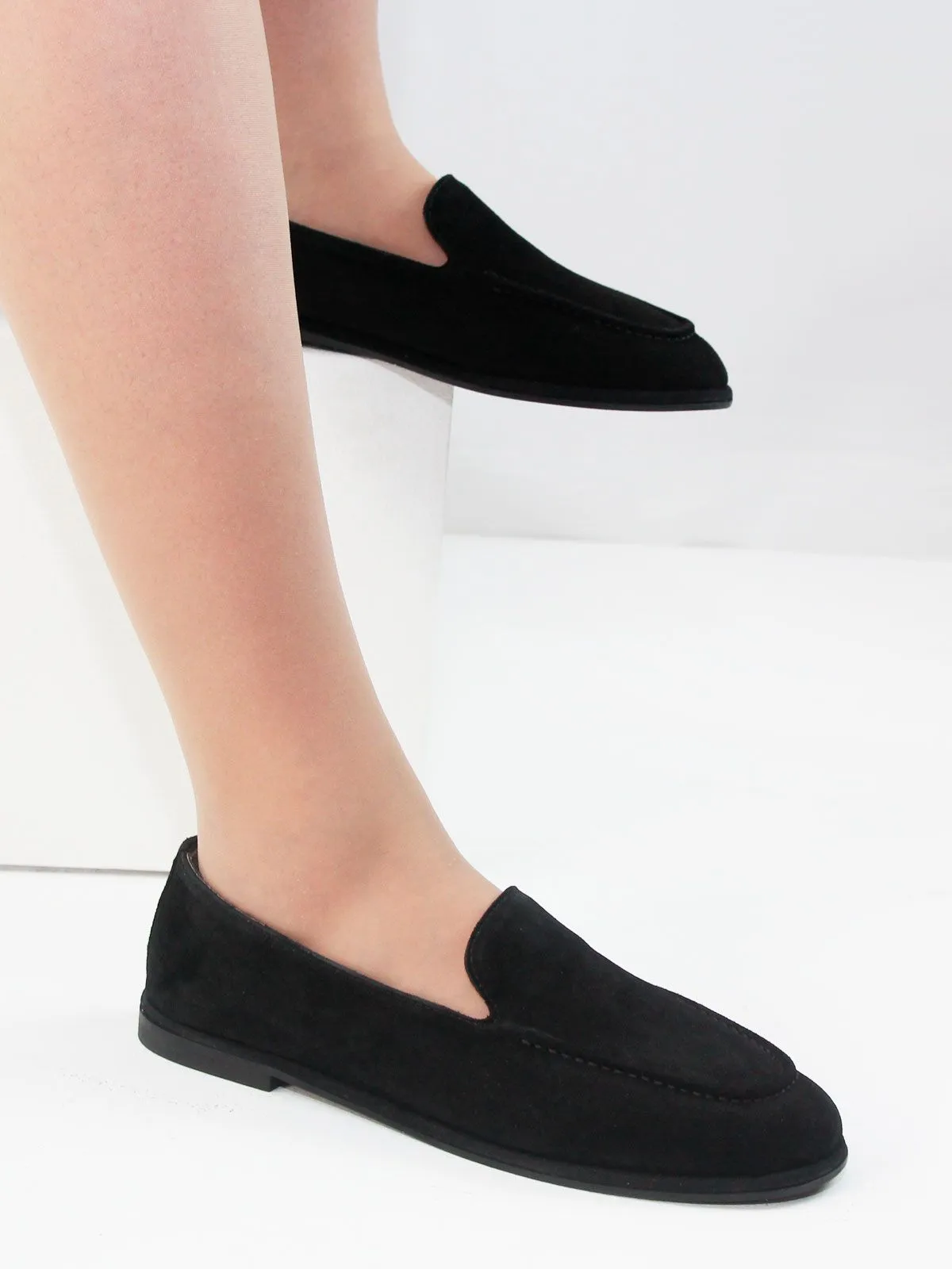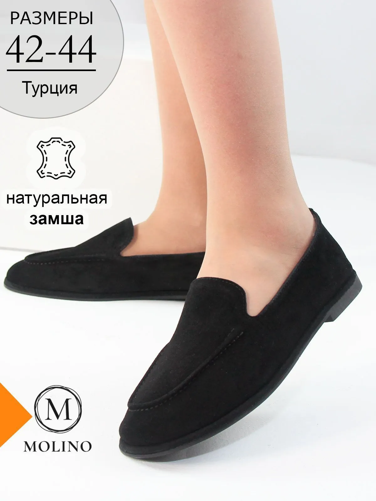 Стильные и очень удобные женские лоферы большого размера из натуральной замши черного цвета. Этот классический оттенок выглядит современно и легко сочетается с разными элементами гардероба — от классических до повседневных образов. Модель выполнена из мягкой натуральной замши, благодаря чему обувь комфортно садится по стопе и обеспечивает удобство при носке. Лоферы имеют аккуратный лаконичный дизайн без лишнего декора, что делает модель универсальной и элегантной. Низкий каблук и невысокая подошва делают обувь лёгкой, аккуратной и очень комфортной для повседневной носки. Такая модель отлично подойдёт для работы, прогулок и городского ритма. Лоферы относятся к категории женской обуви больших размеров и представлены в размерах 42–44.