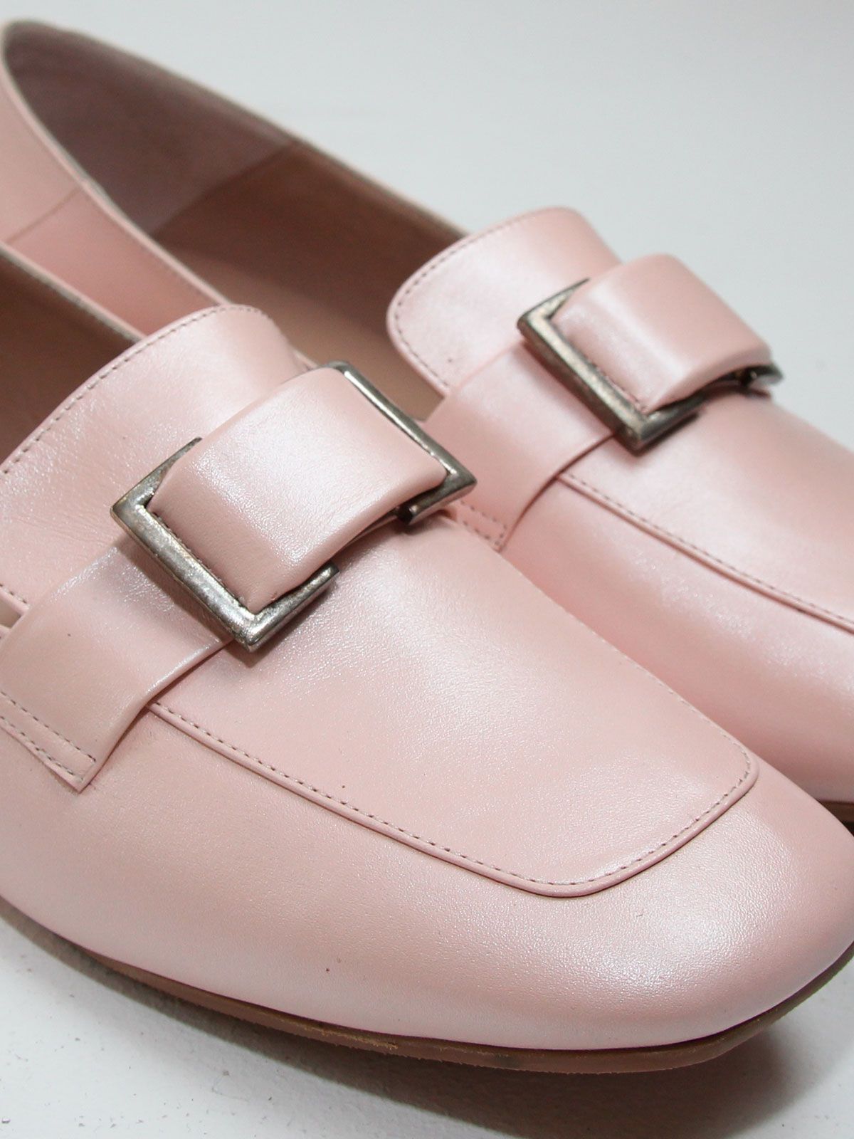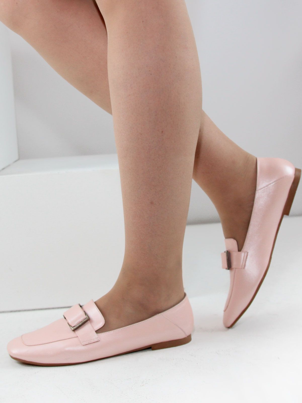 Женские лоферы больших размеров из натуральной кожи розово-пудрового цвета. Подойдут на стандартную стопу.