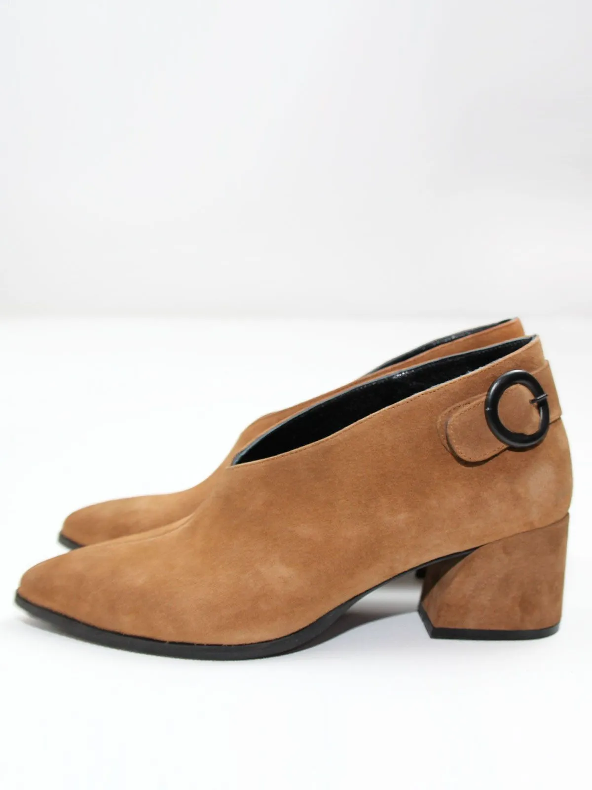 Анатомичный V-образный вырез визуально вытягивает ногу и делает посадку особенно изящной. Аккуратная боковая пряжка служит лёгким стилевым акцентом, не утяжеляя дизайн.