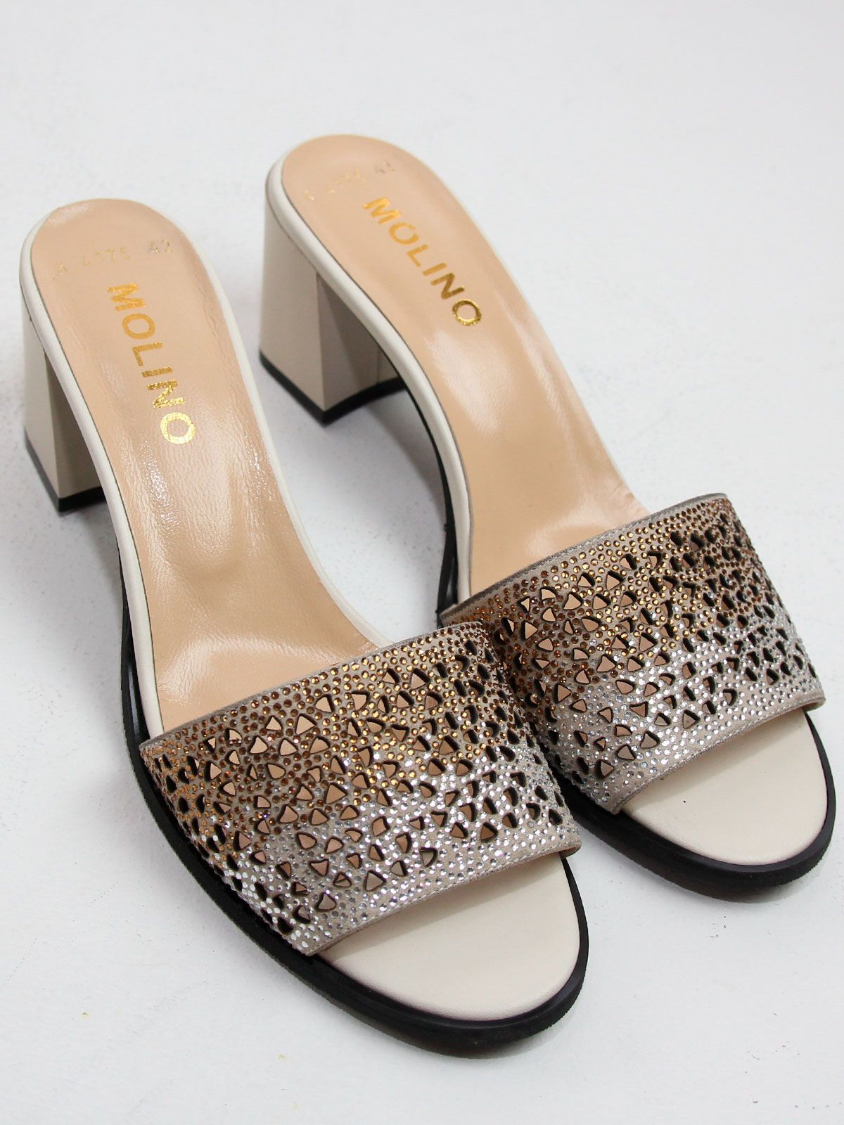 Модель доступна в размерах 42, 43 и 44 — отличное решение для тех, кто ищет качественную и стильную женскую обувь больших размеров. Сабо женские замшевые со стразами Molino из натуральных материалов – это практичность, комфорт и эффектный внешний вид.