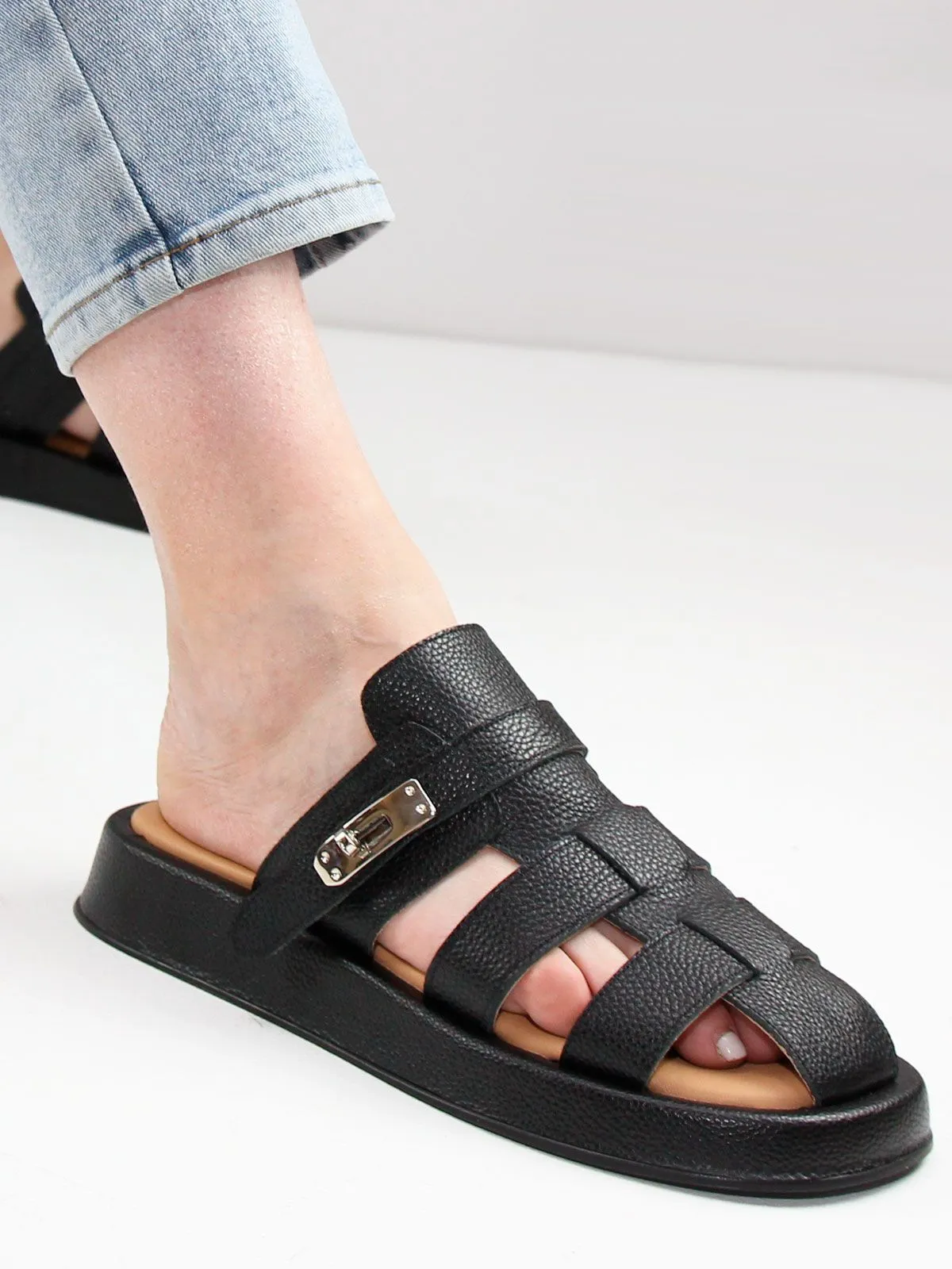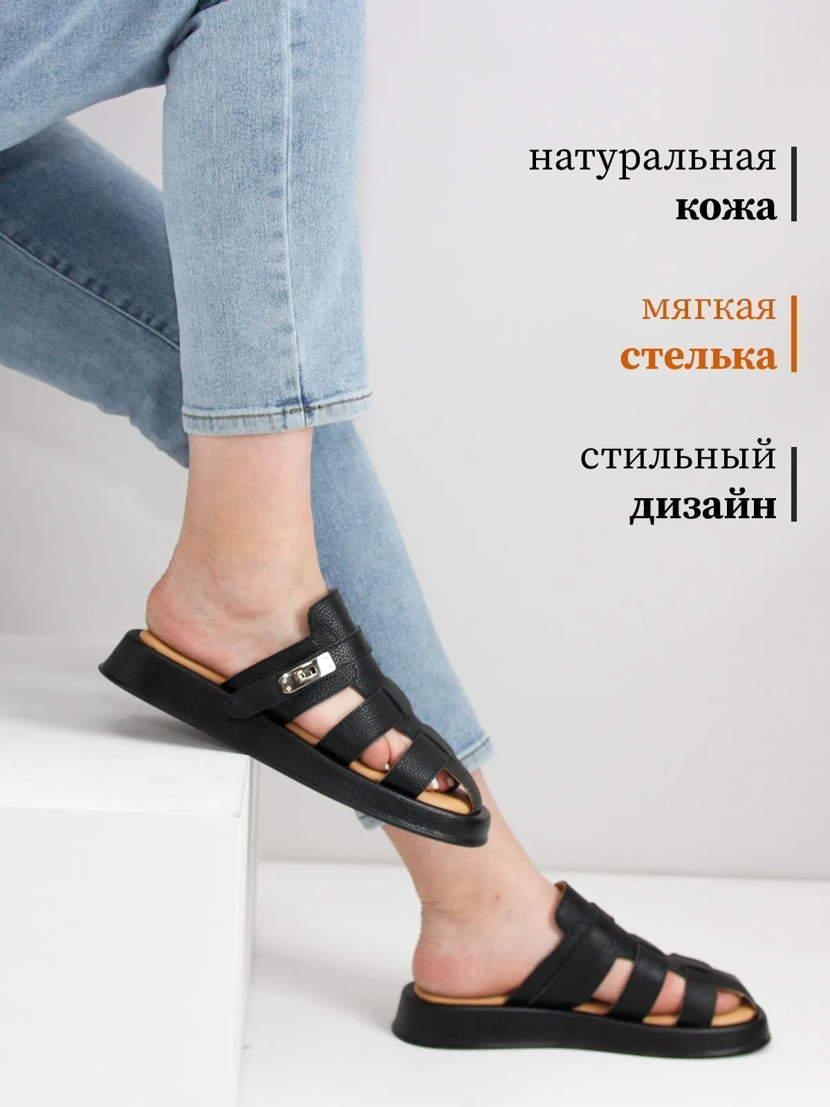 Стильные черные женские сабо из натуральной кожи в греческом стиле — комфорт и актуальный дизайн для летнего сезона. Верх обуви выполнен из мягкой, фактурной натуральной кожи, которая дарит приятные тактильные ощущения и долговечность. Удобная мягкая стелька обеспечивает комфорт при каждом шаге, а открытая конструкция позволяет ногам дышать даже в самую жаркую погоду.
